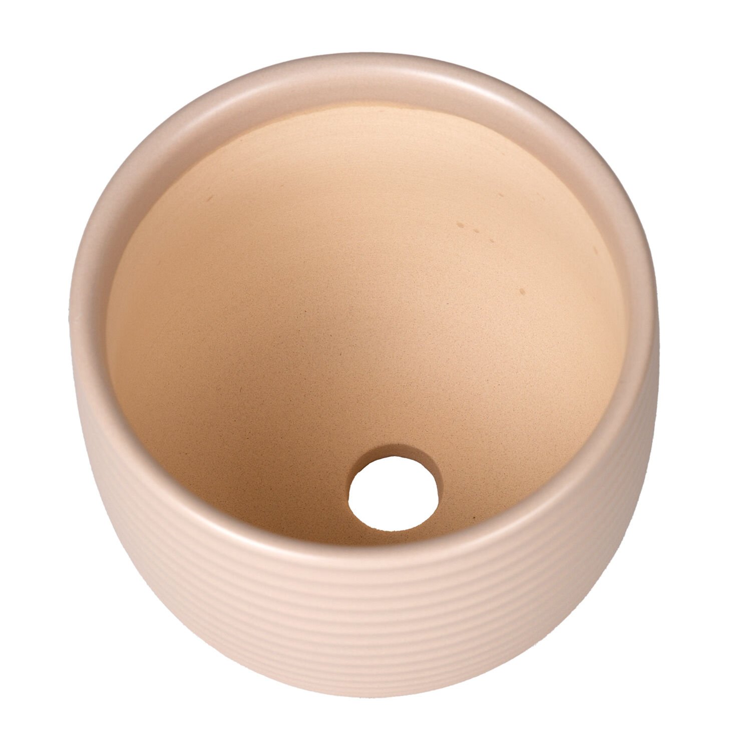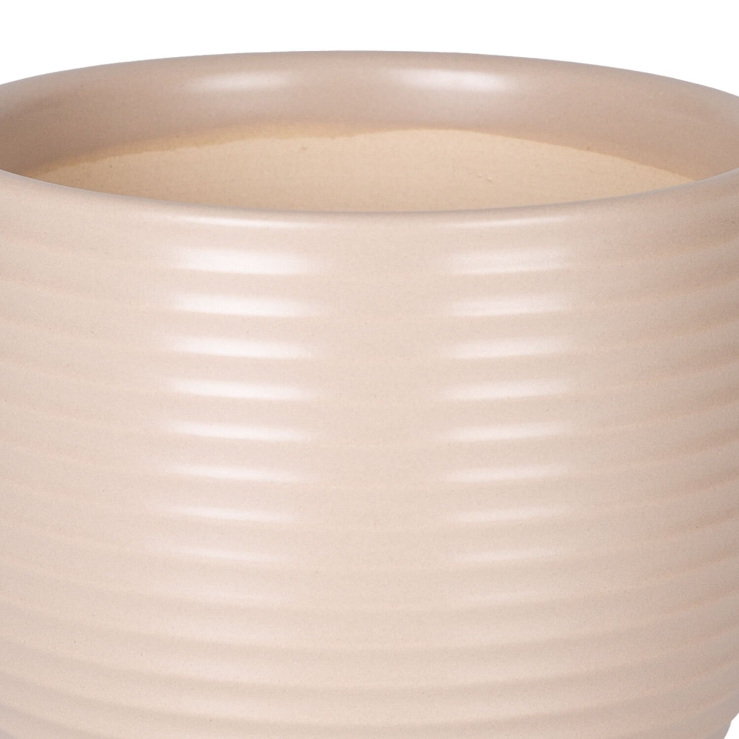 Seramik Saksı, Ayaklı, Yatay Kabartma Çizgili, Krem - 13x11,5 cm