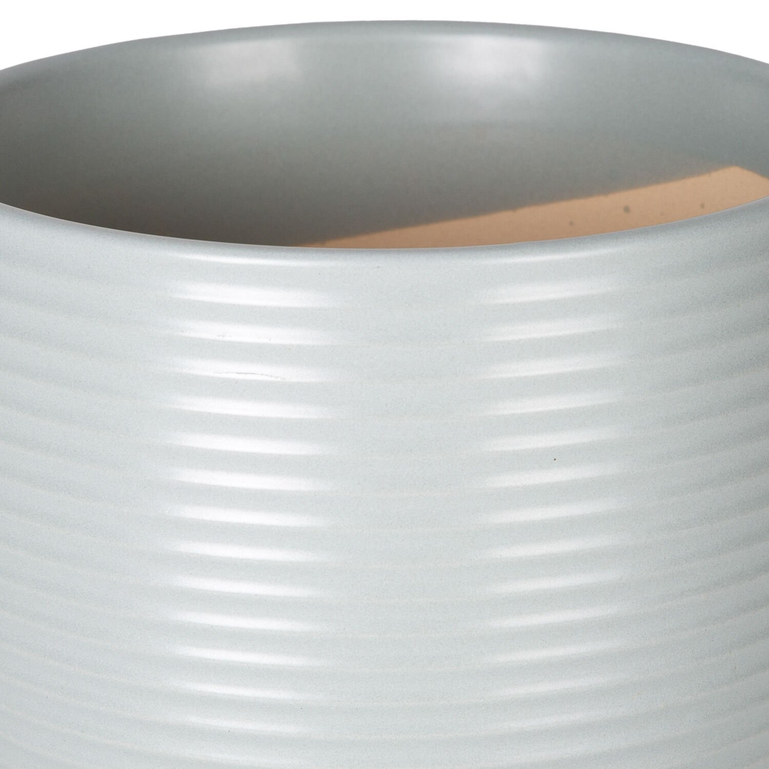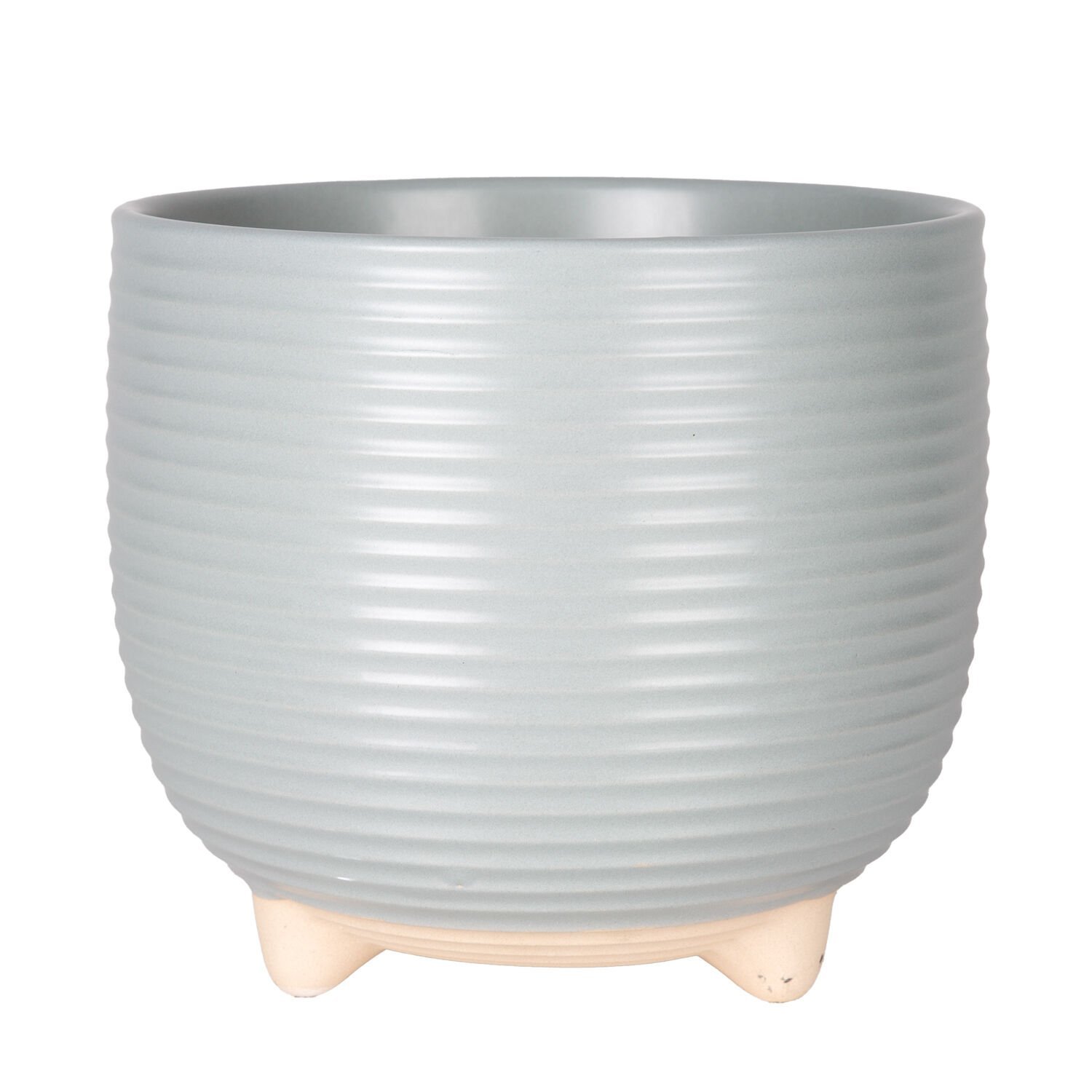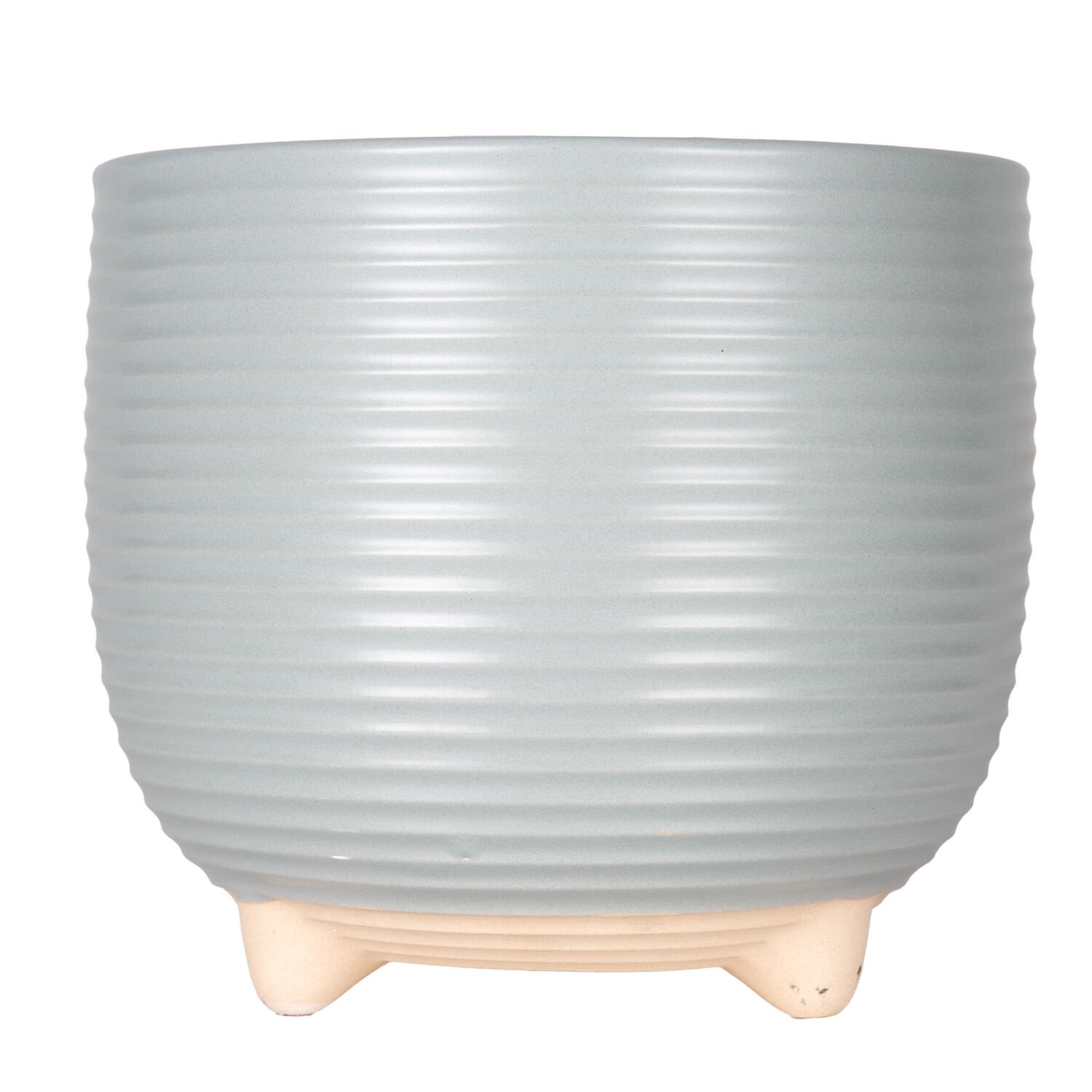 Seramik Saksı, Ayaklı, Yatay Kabartma Çizgili, Pudra Mavi - 21x18,5 cm