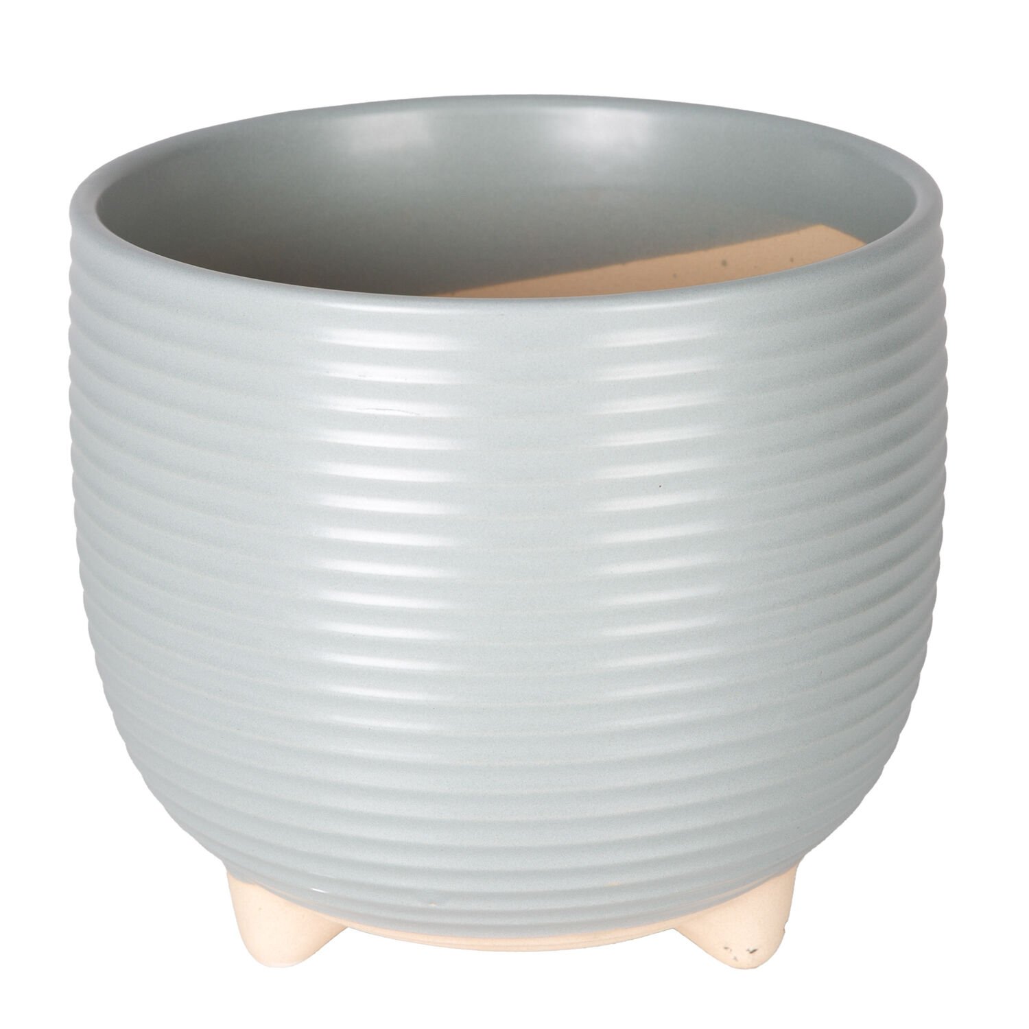 Seramik Saksı Ayaklı Yatay Kabartma Çizgili Pudra Mavi 21x18,5 Cm.