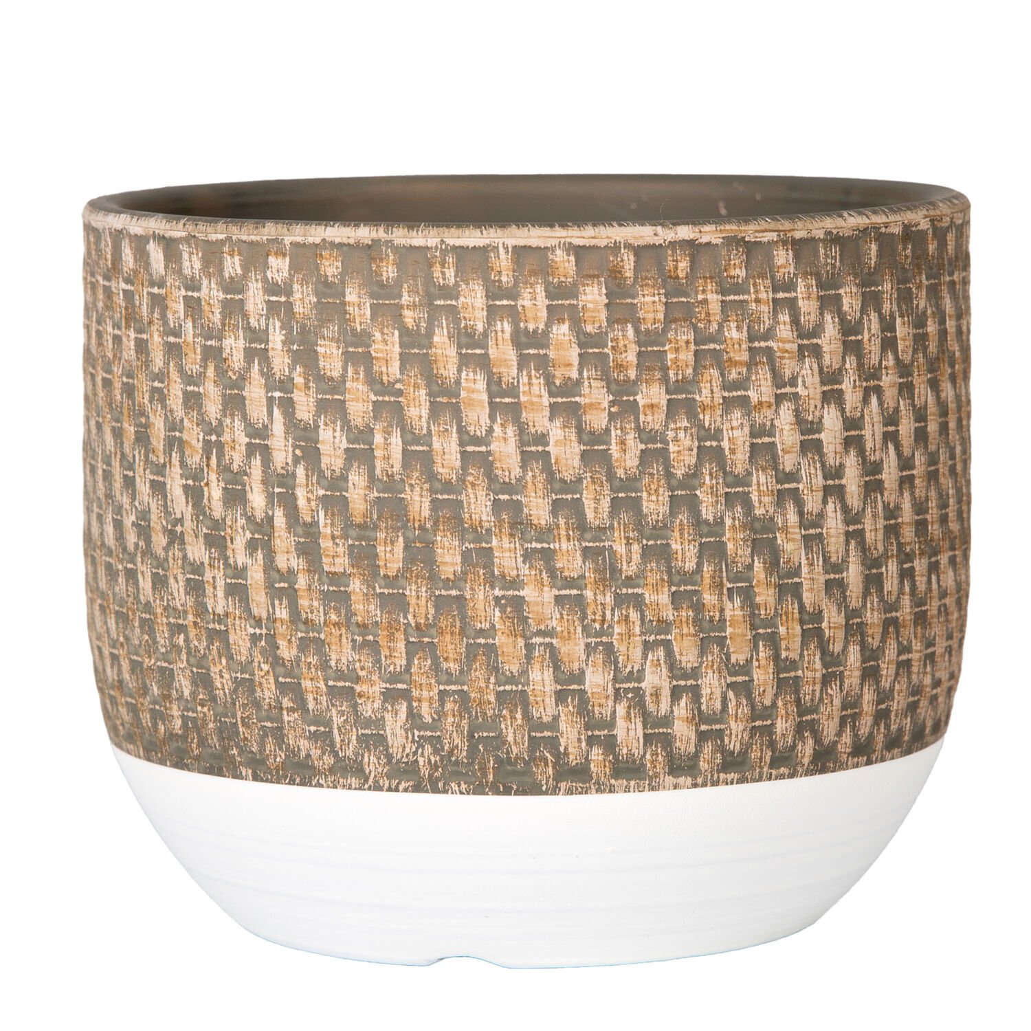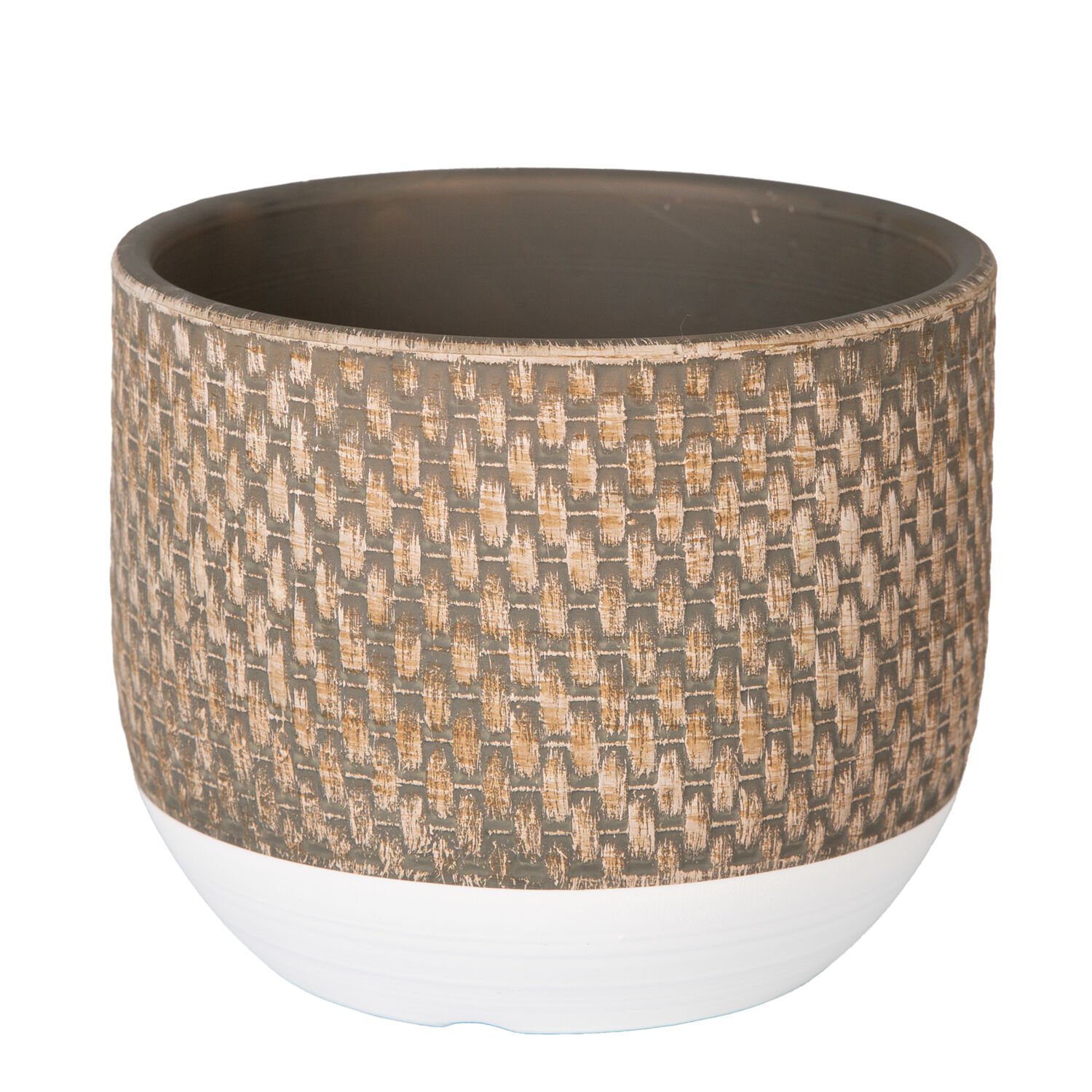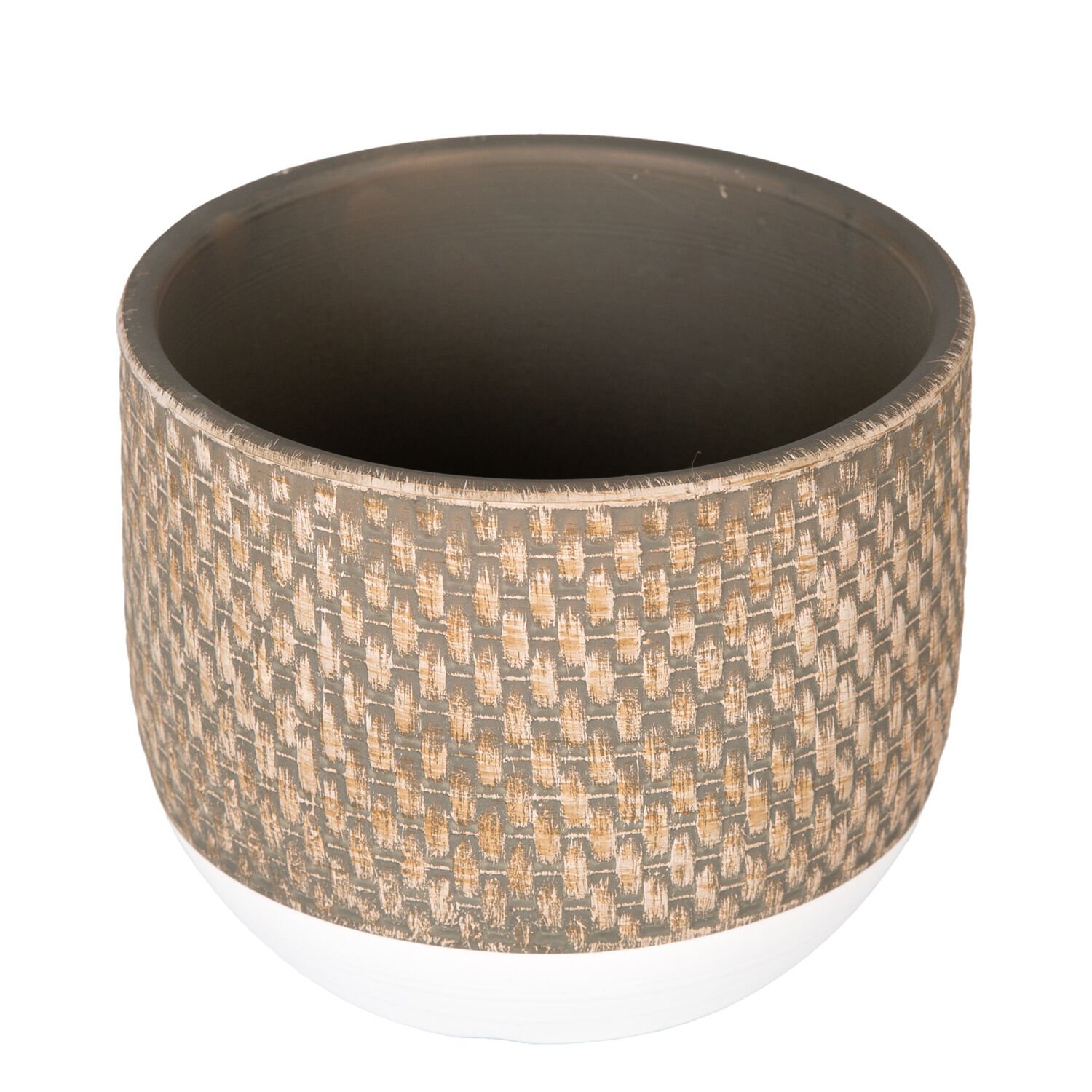 Seramik Saksı, Desenli, Gri-Beyaz - 12x10 cm