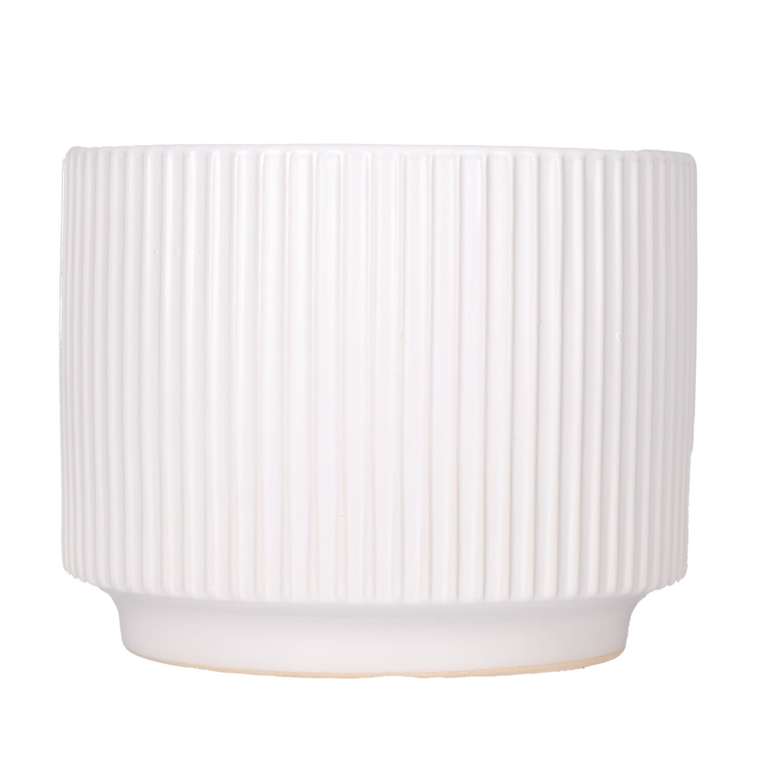 Seramik Saksı, Dikey Kabartma Çizgili, Beyaz - 16x13 cm