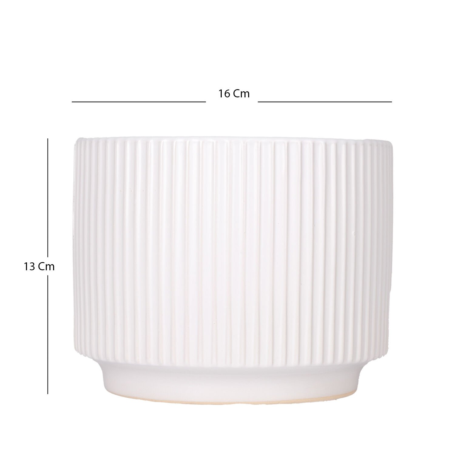 Seramik Saksı Dikey Kabartma Çizgili Beyaz 16x13 Cm.