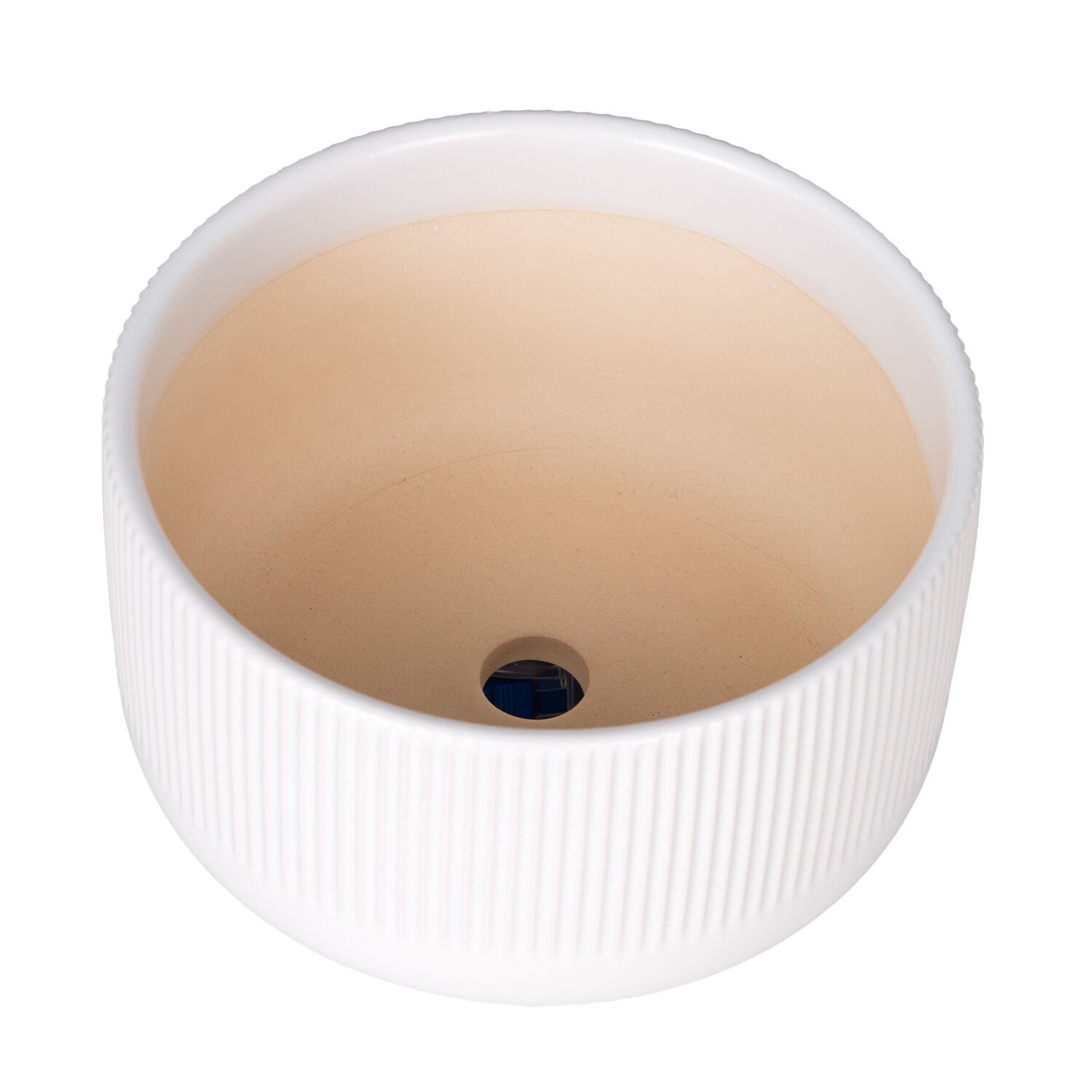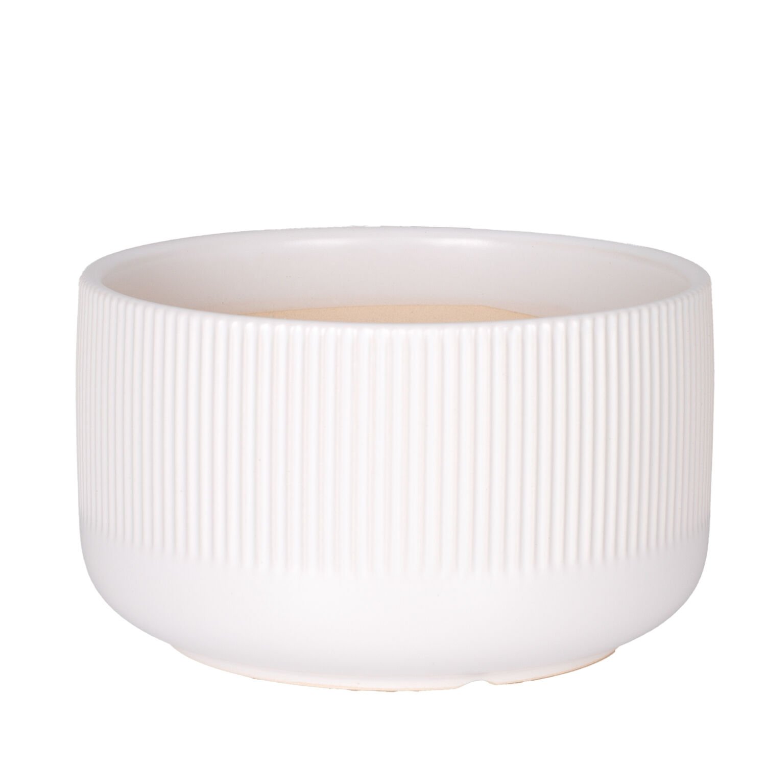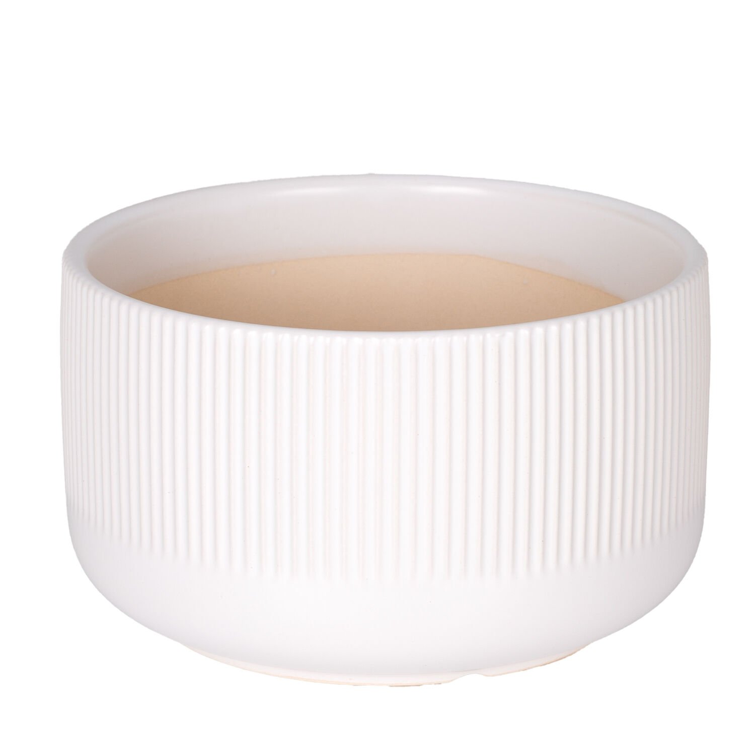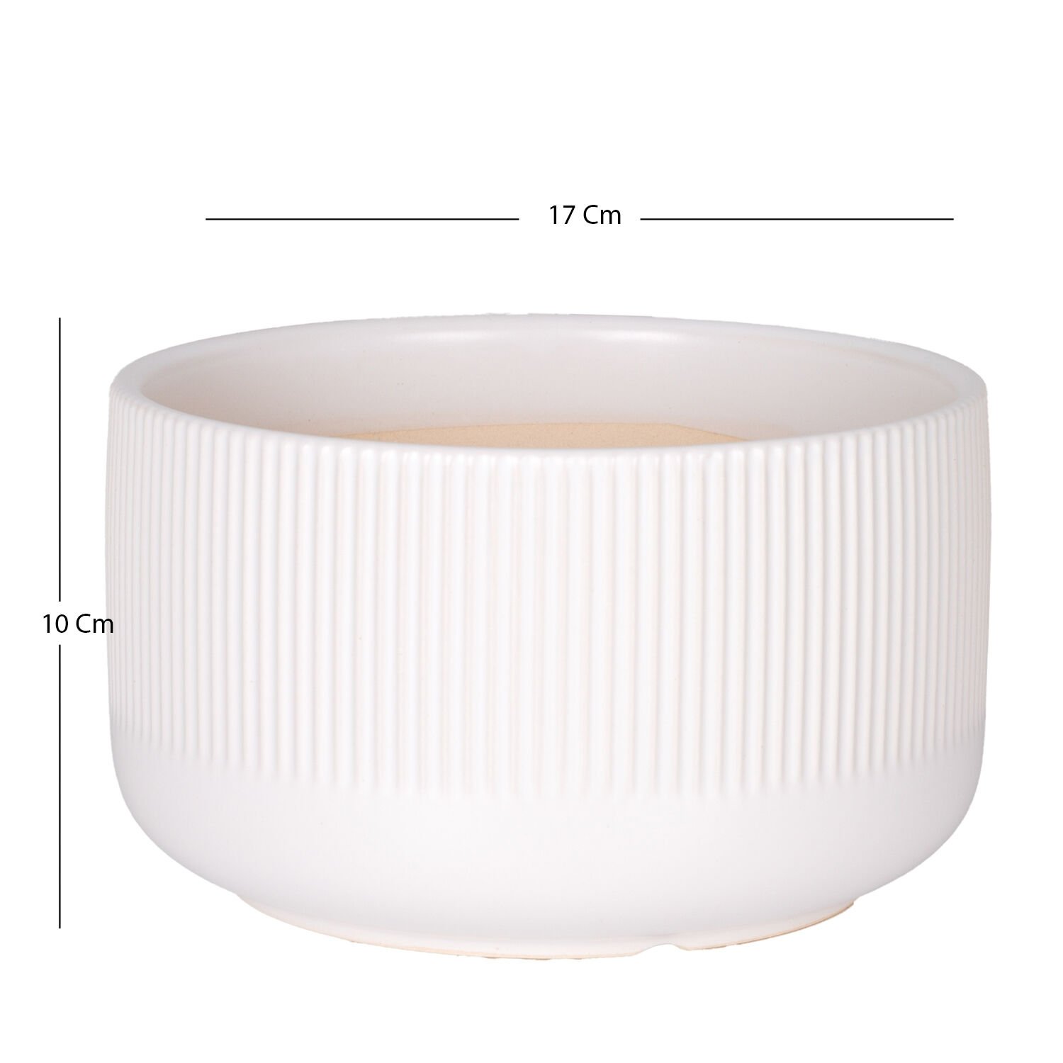 Seramik Saksı, Dikey Kabartma Çizgili, Beyaz - 17x10 cm