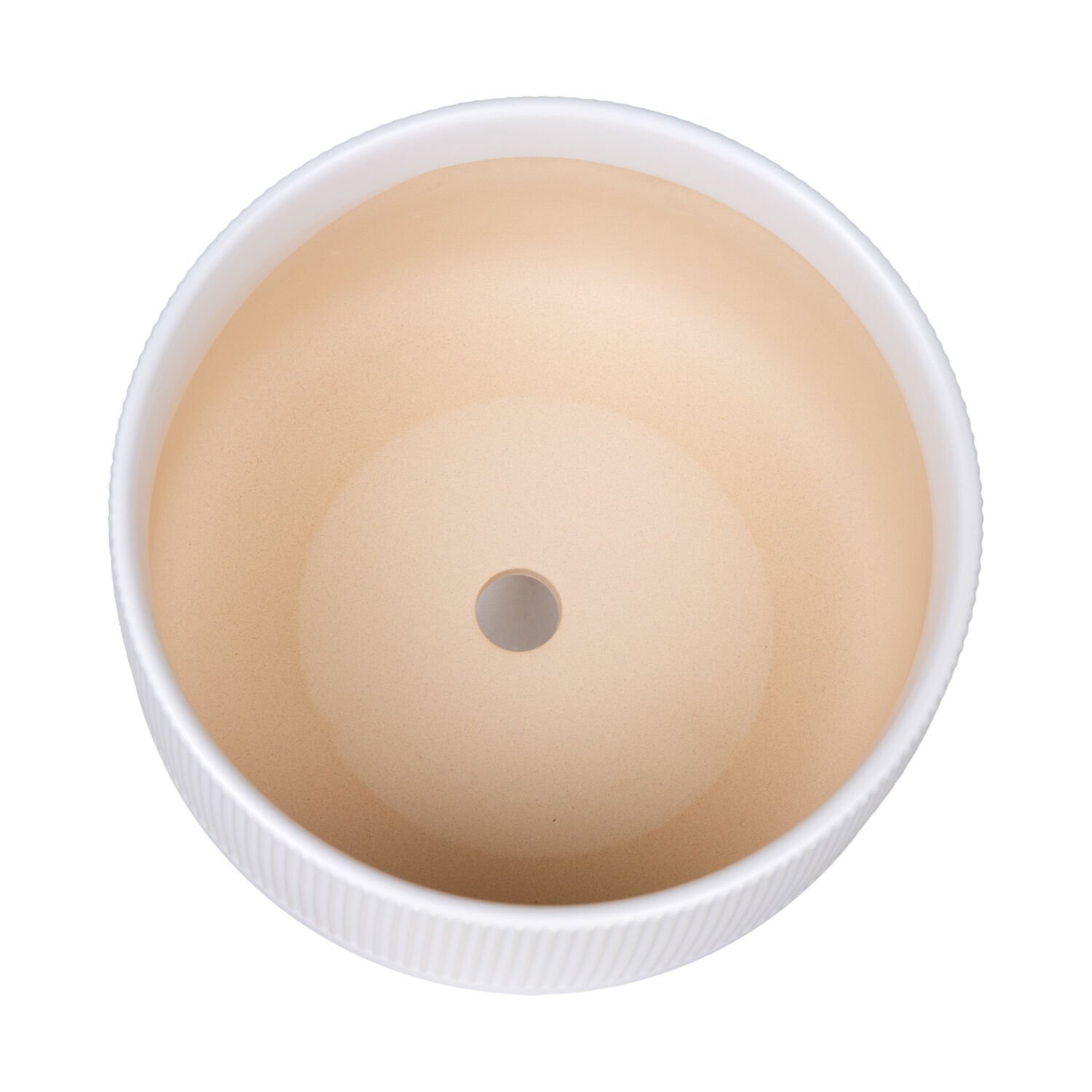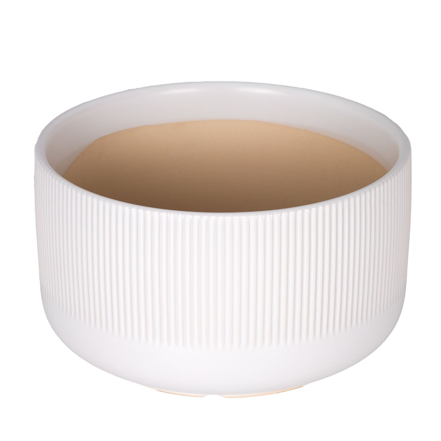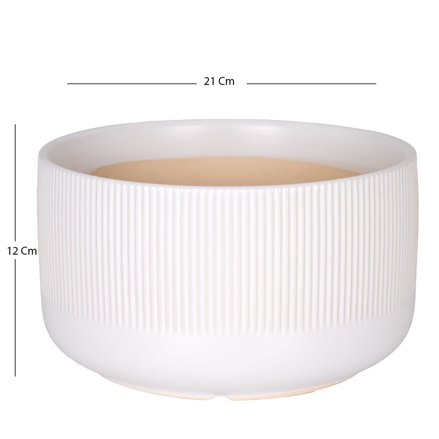 Seramik Saksı, Dikey Kabartma Çizgili, Beyaz - 21x12 cm