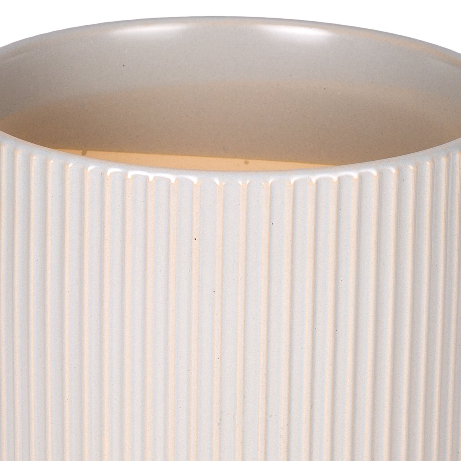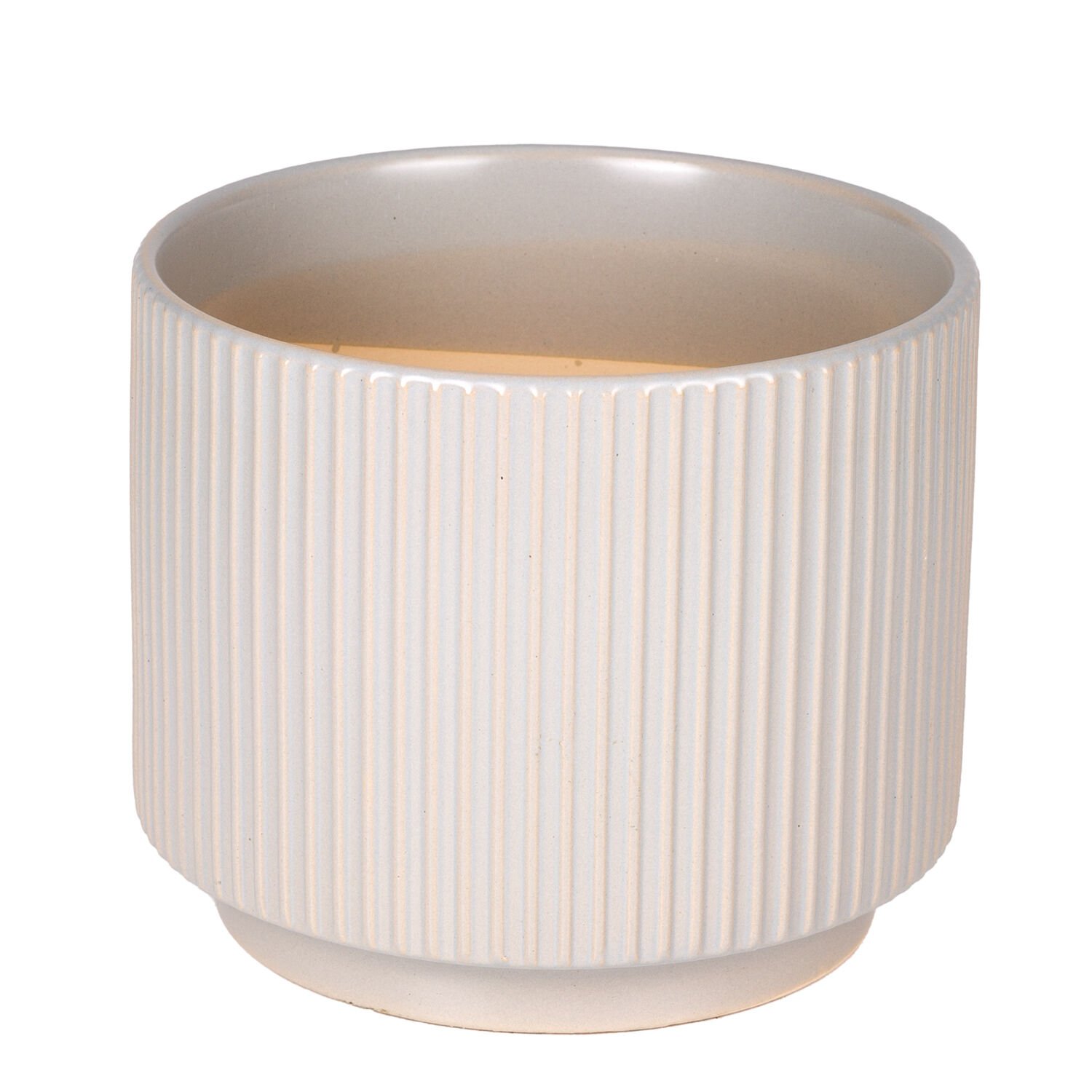 Seramik Saksı, Dikey Kabartma Çizgili, Gri - 23x18,5 cm