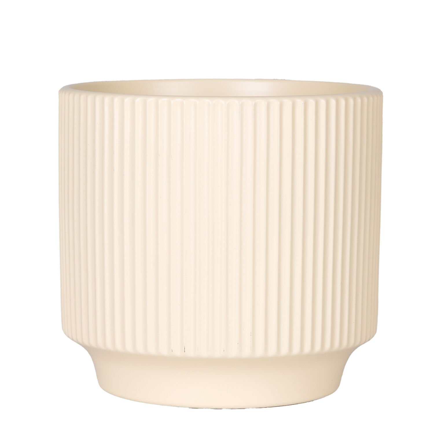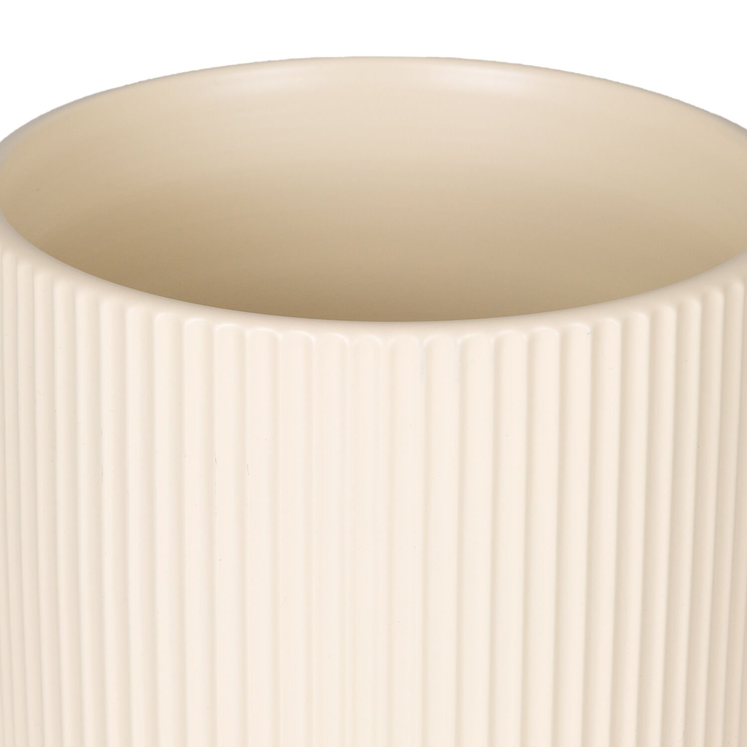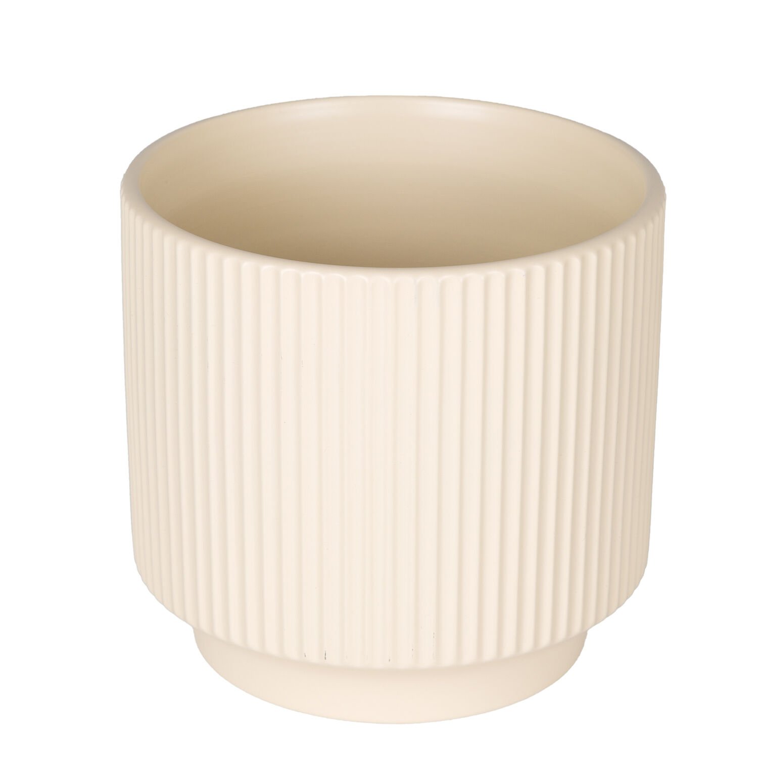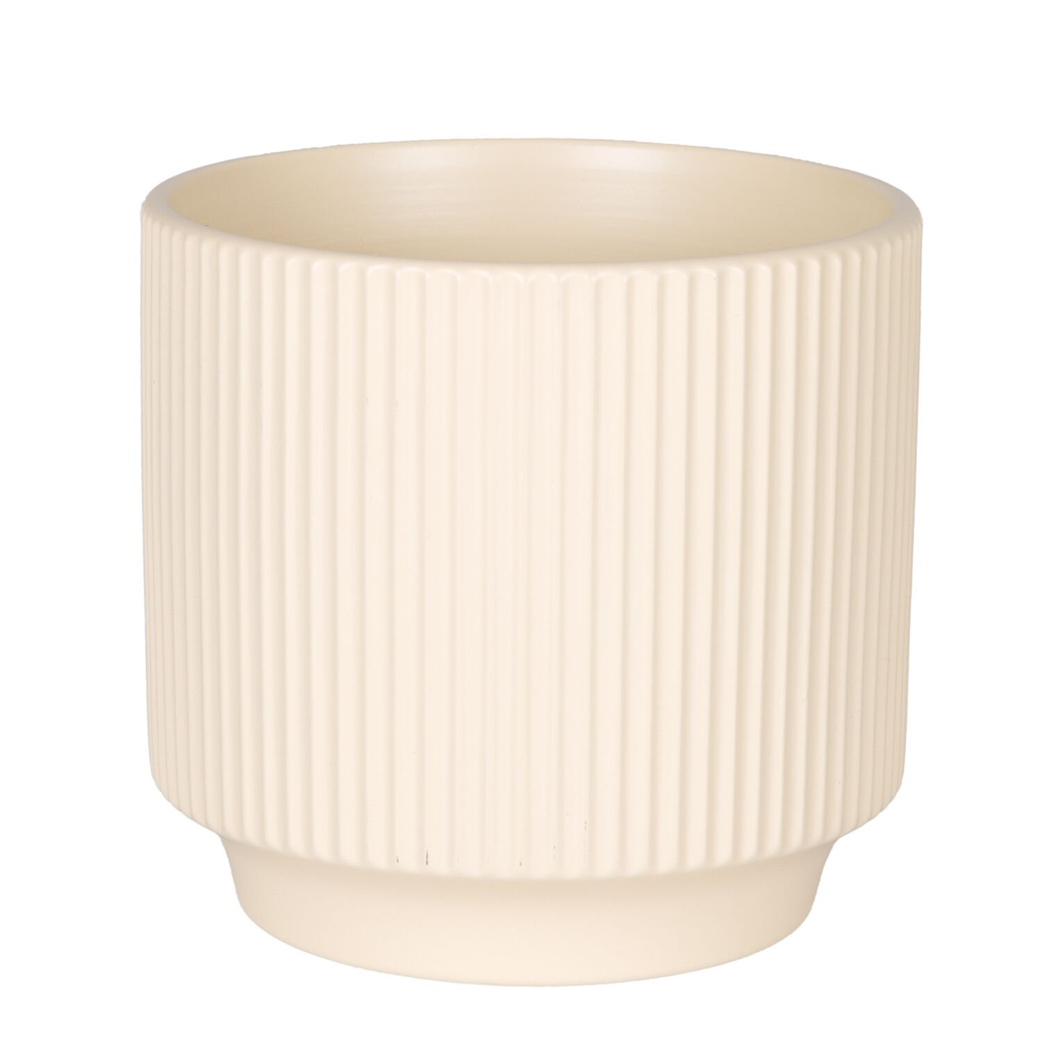 Seramik Saksı, Dikey Kabartma Çizgili, Krem - 12,5x12 cm