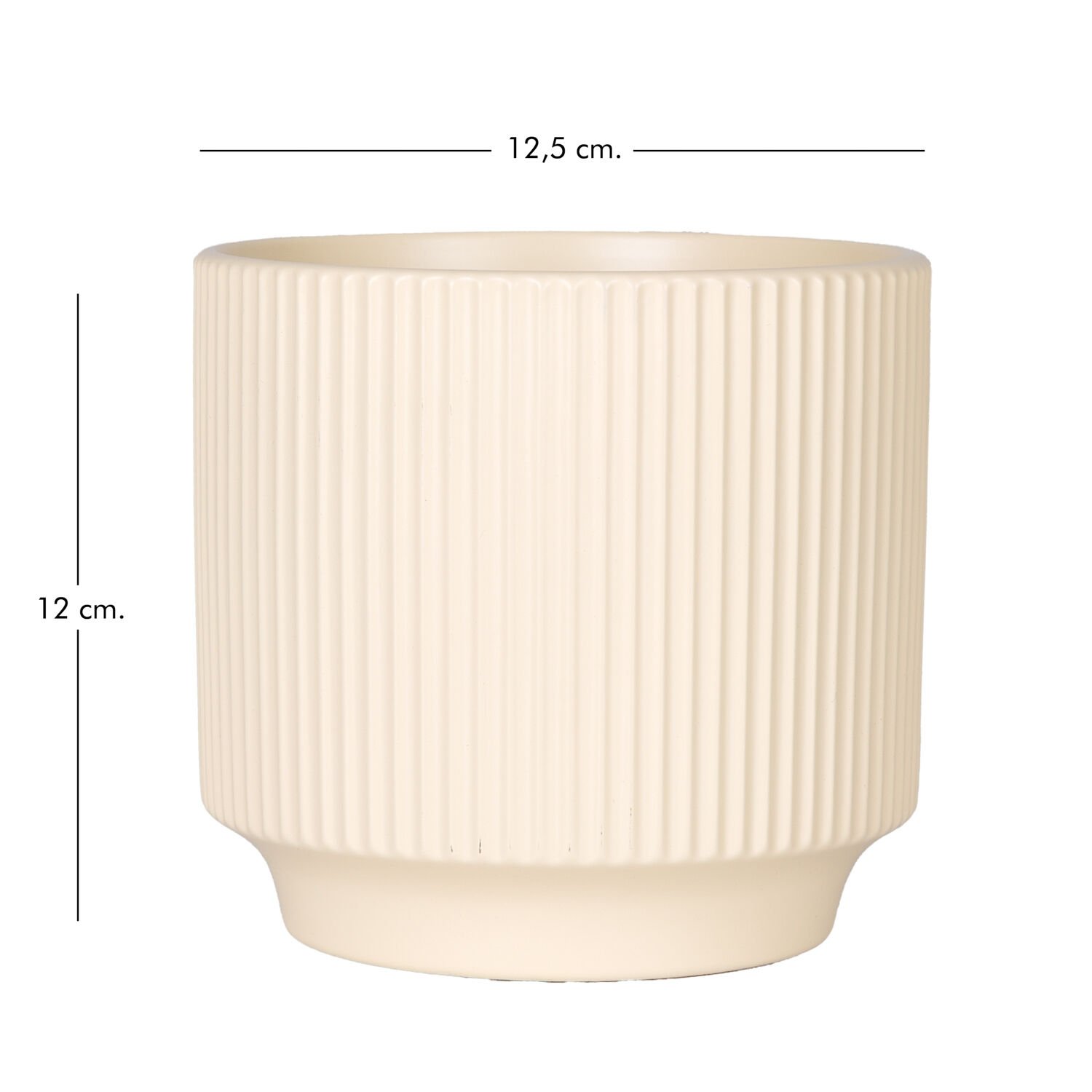 Seramik Saksı Dikey Kabartma Çizgili Krem 12,5x12 Cm.