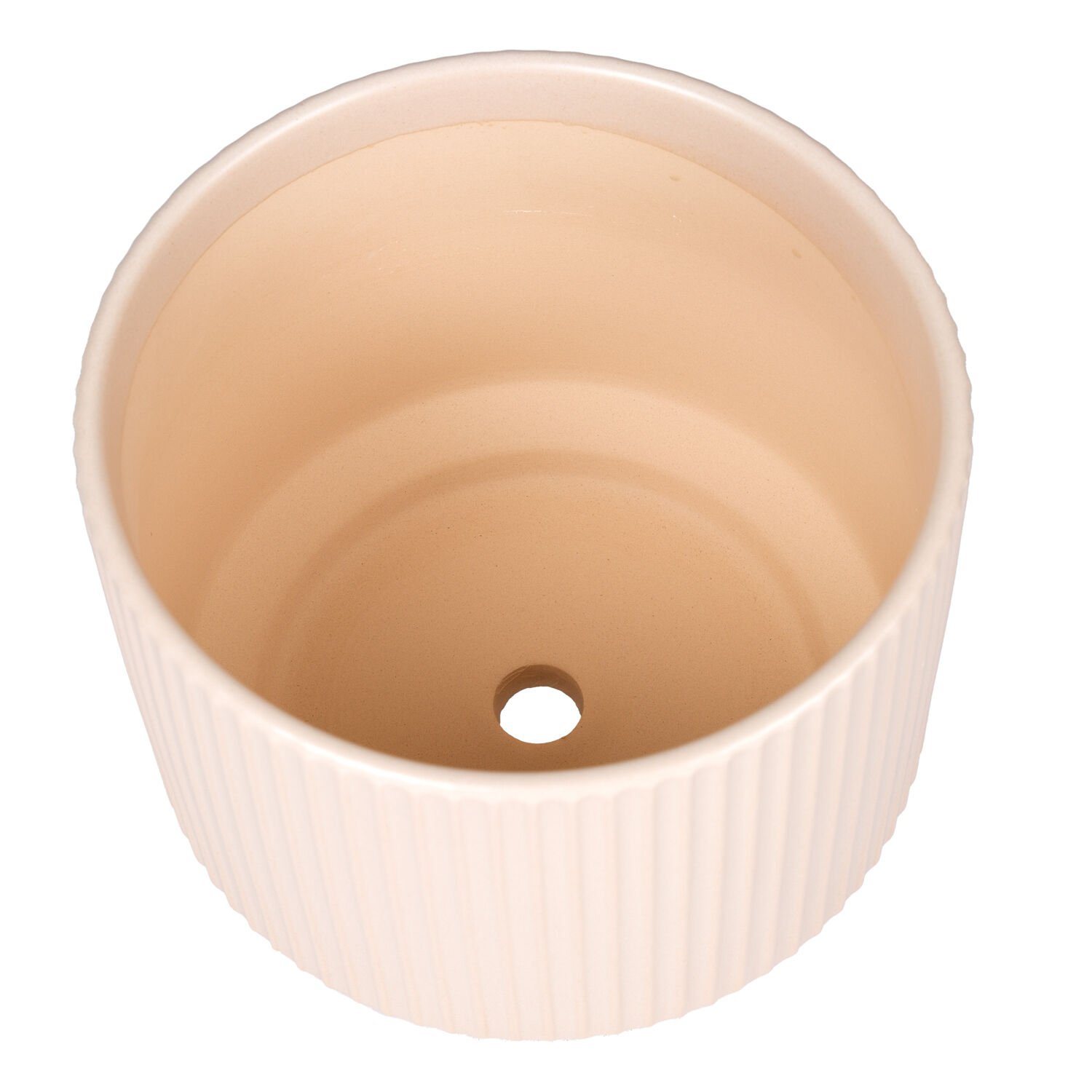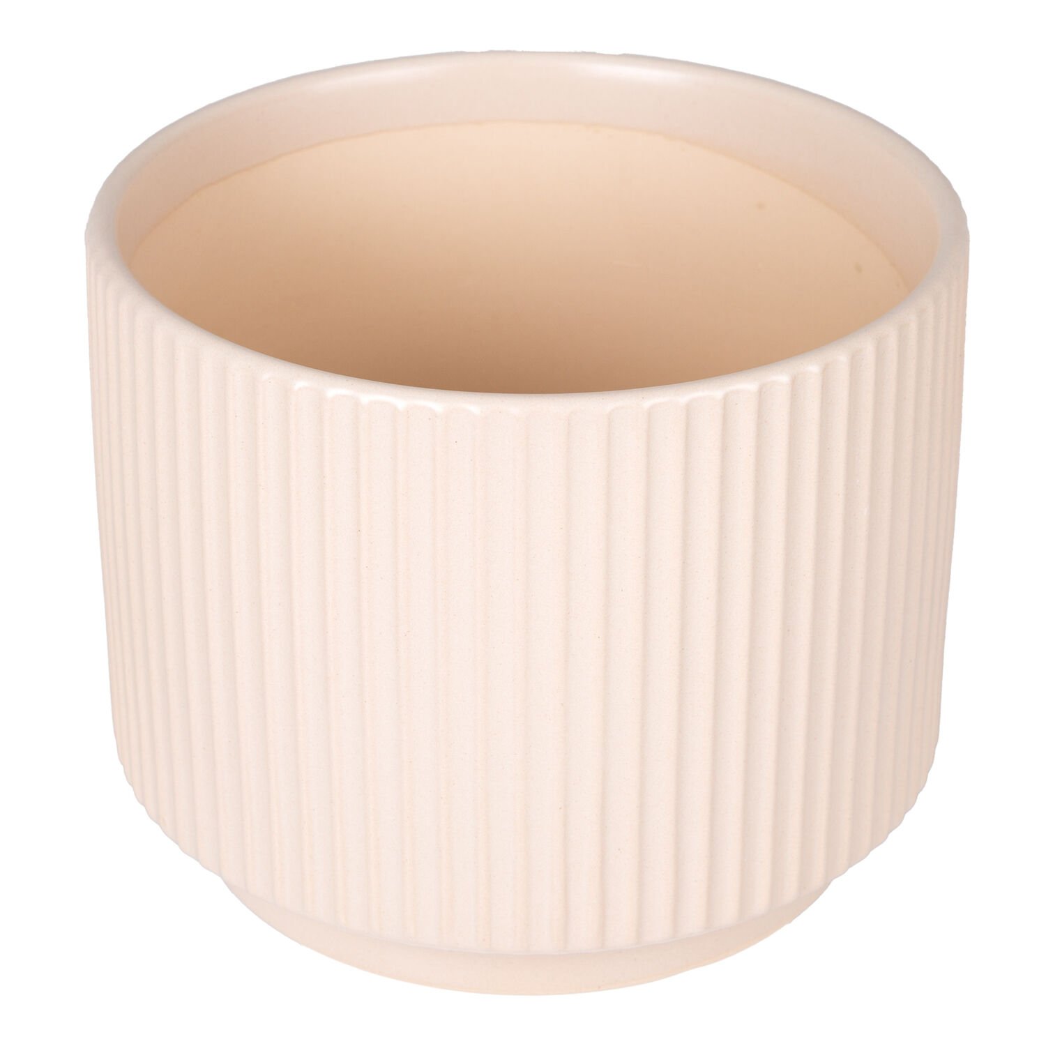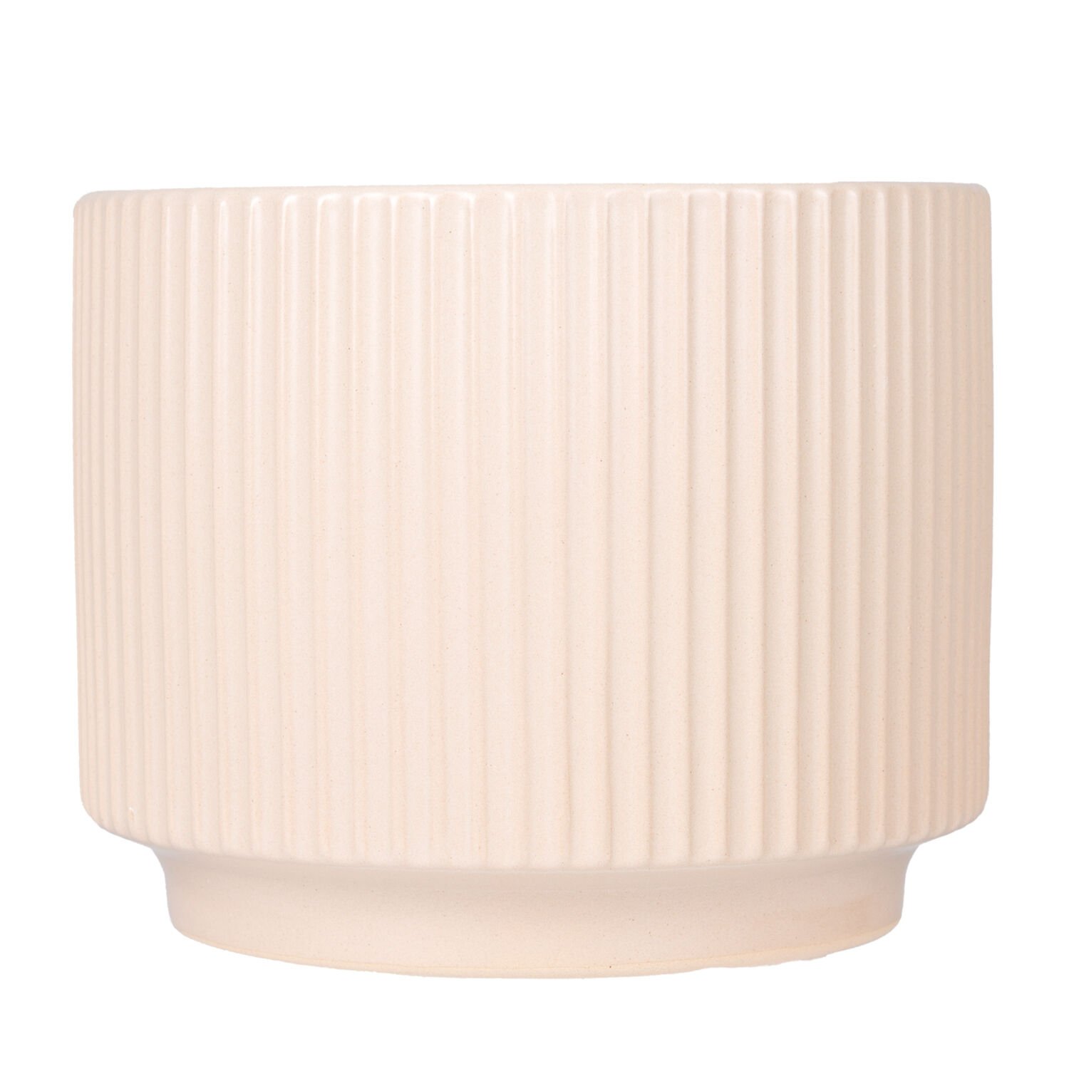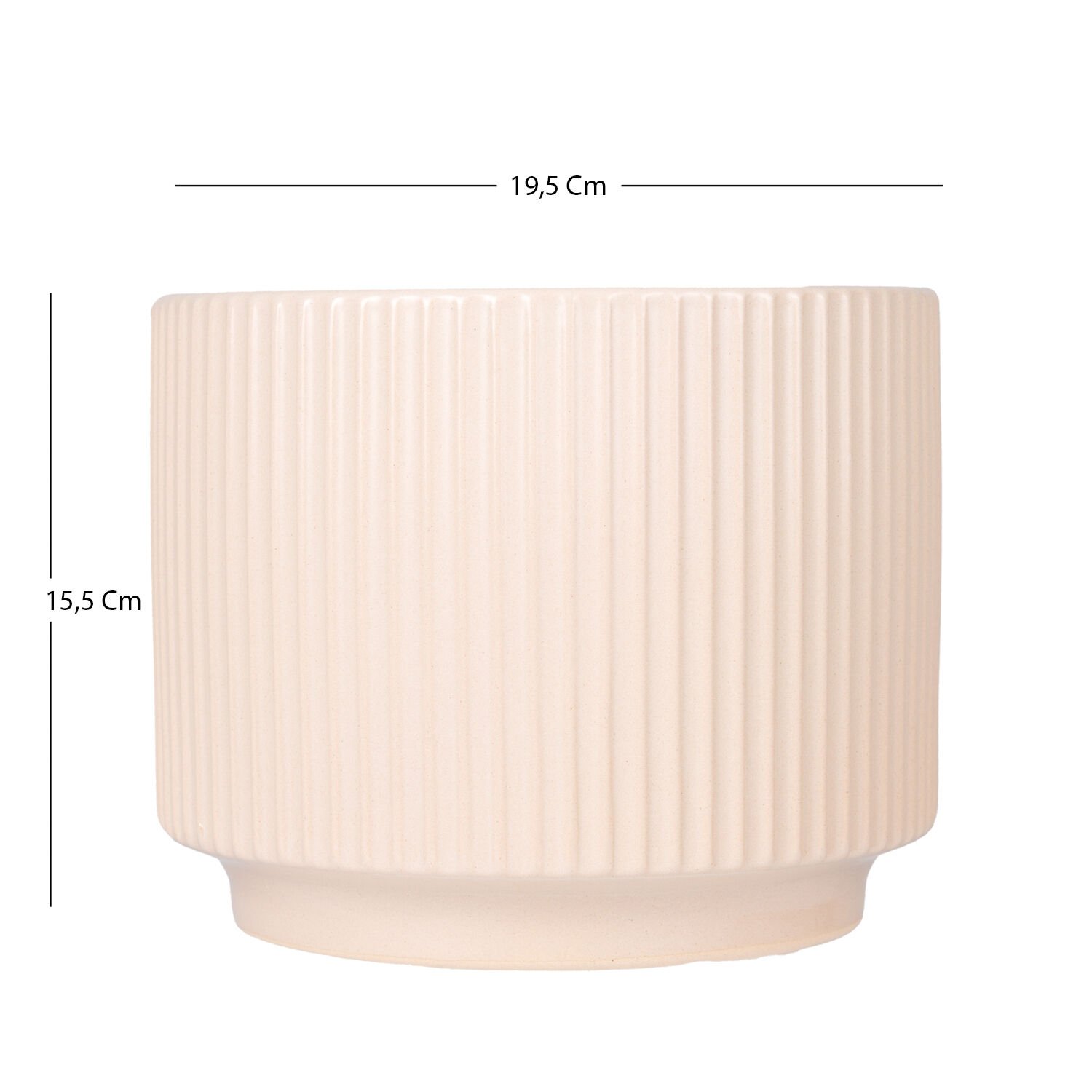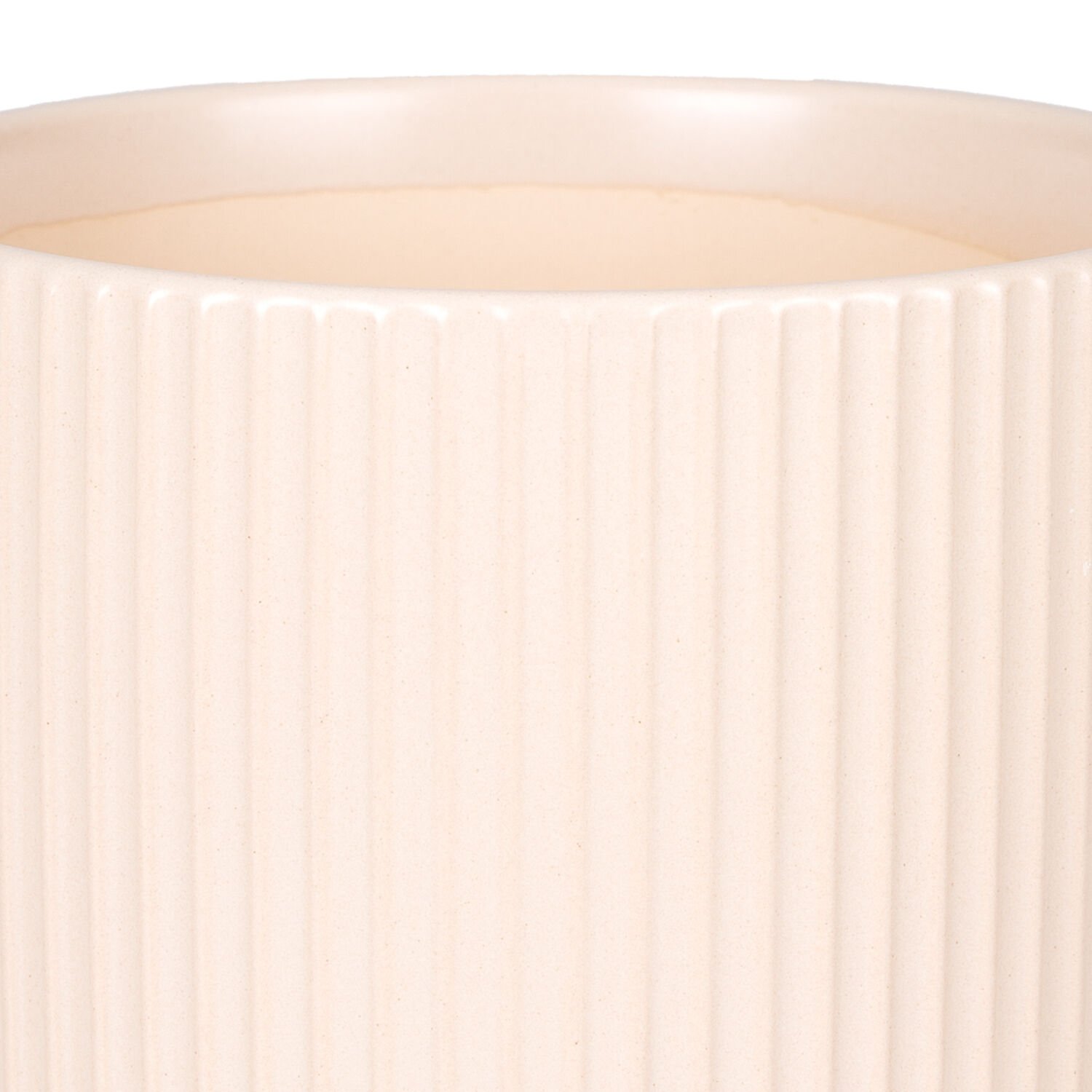 Seramik Saksı, Dikey Kabartma Çizgili, Krem - 19,5x15,5 cm