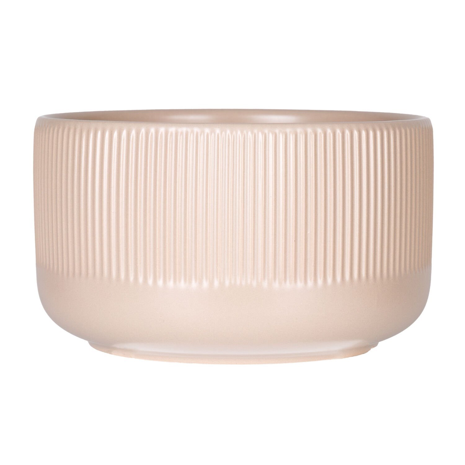 Seramik Saksı, Dikey Kabartma Çizgili, Krem - 21x12 cm