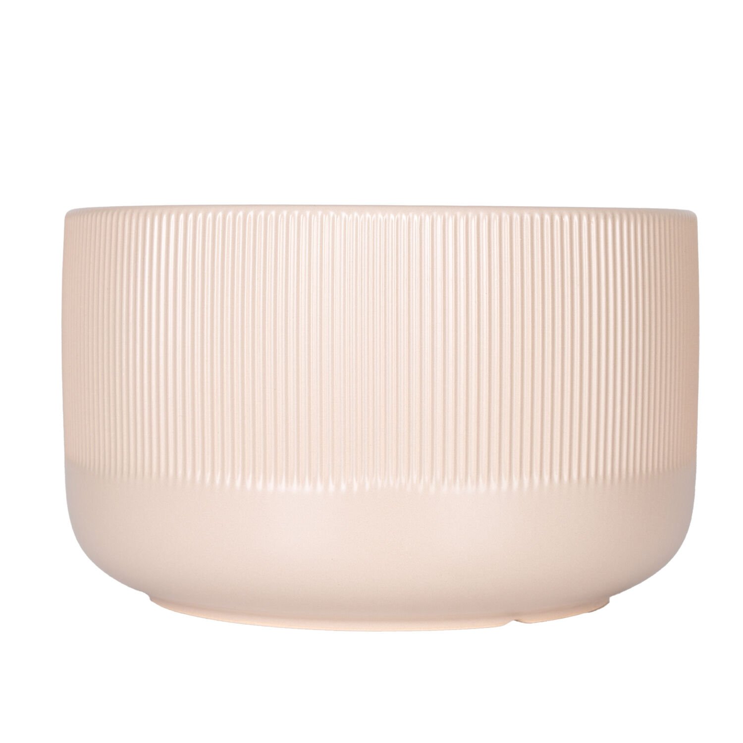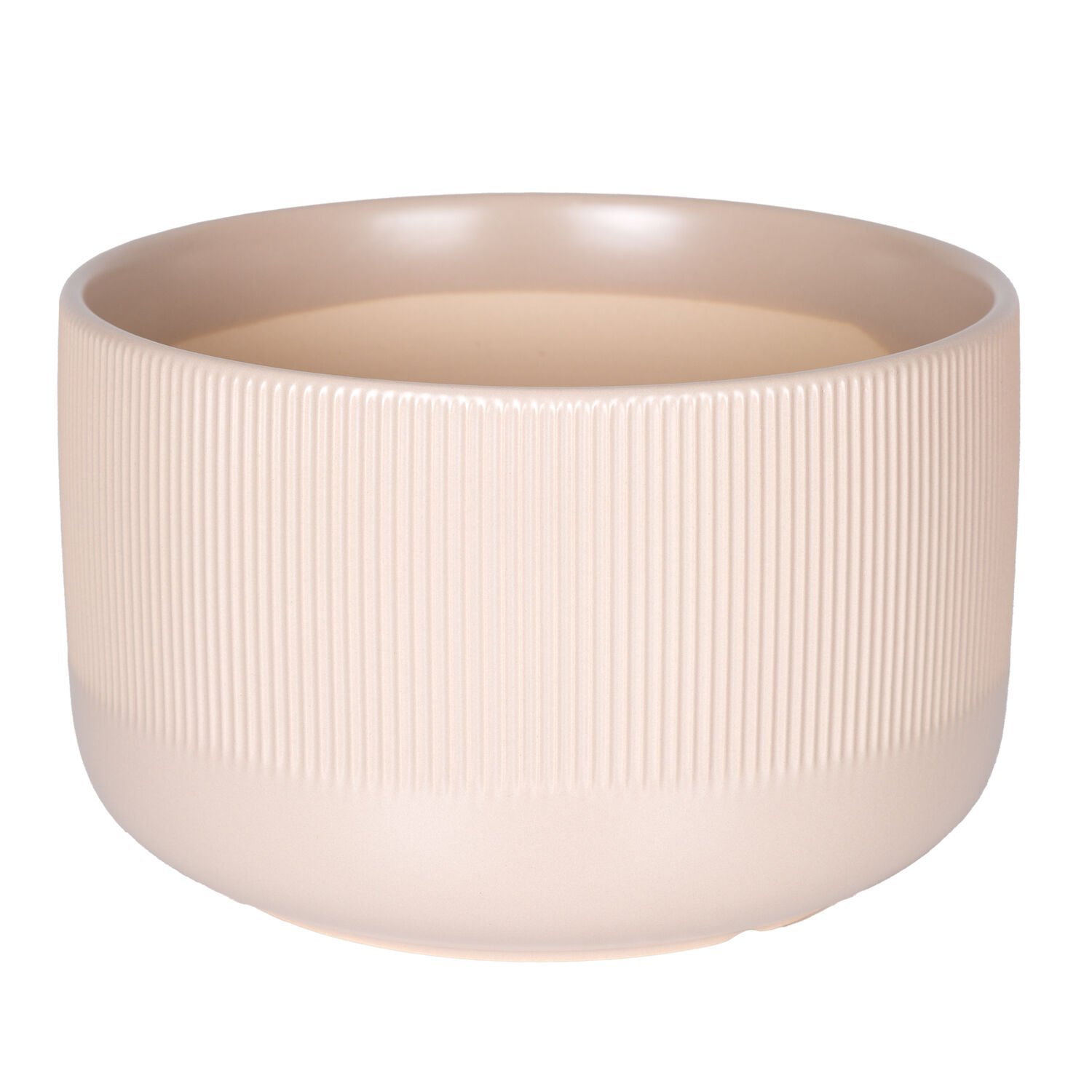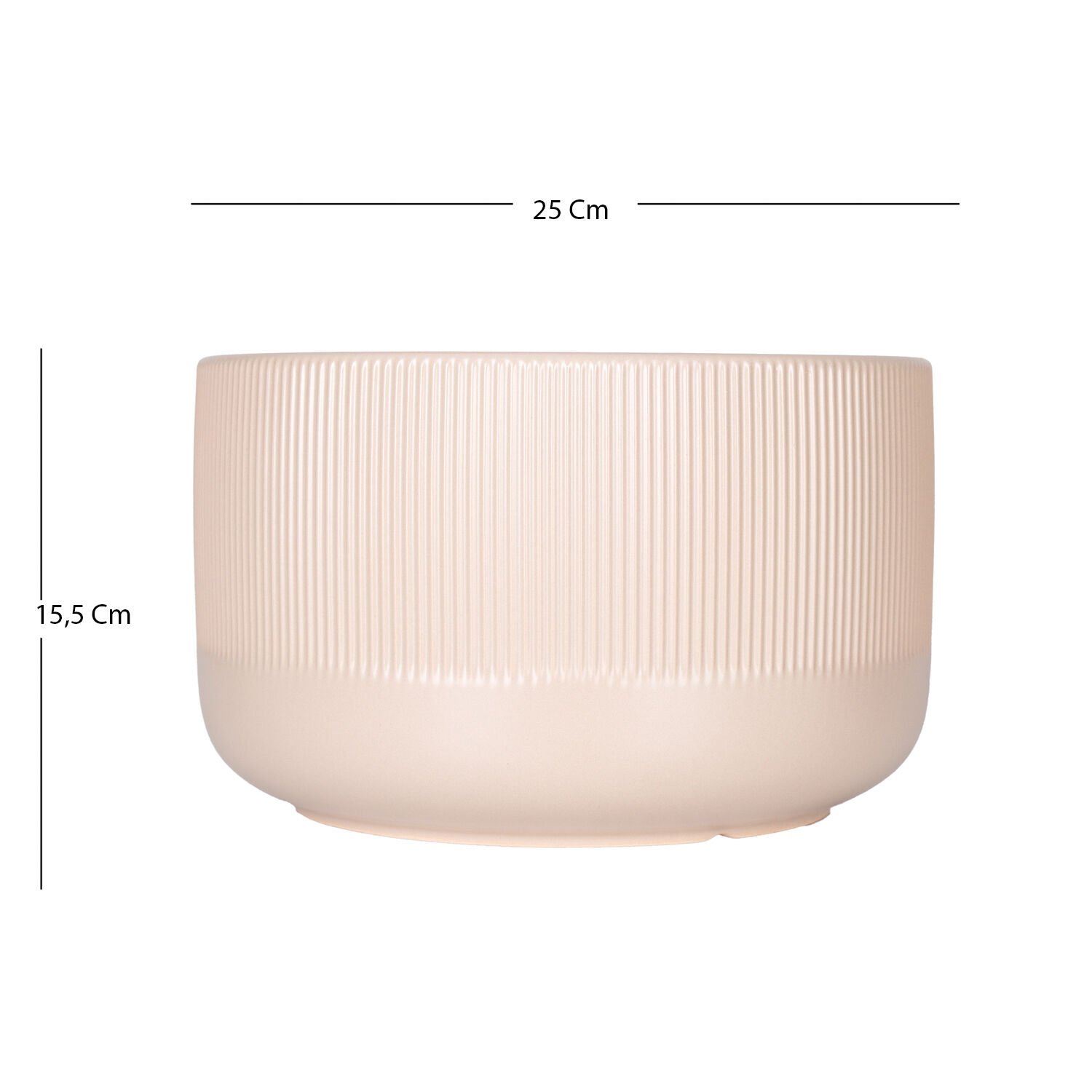 Seramik Saksı Dikey Kabartma Çizgili Krem 25x15,5 Cm.