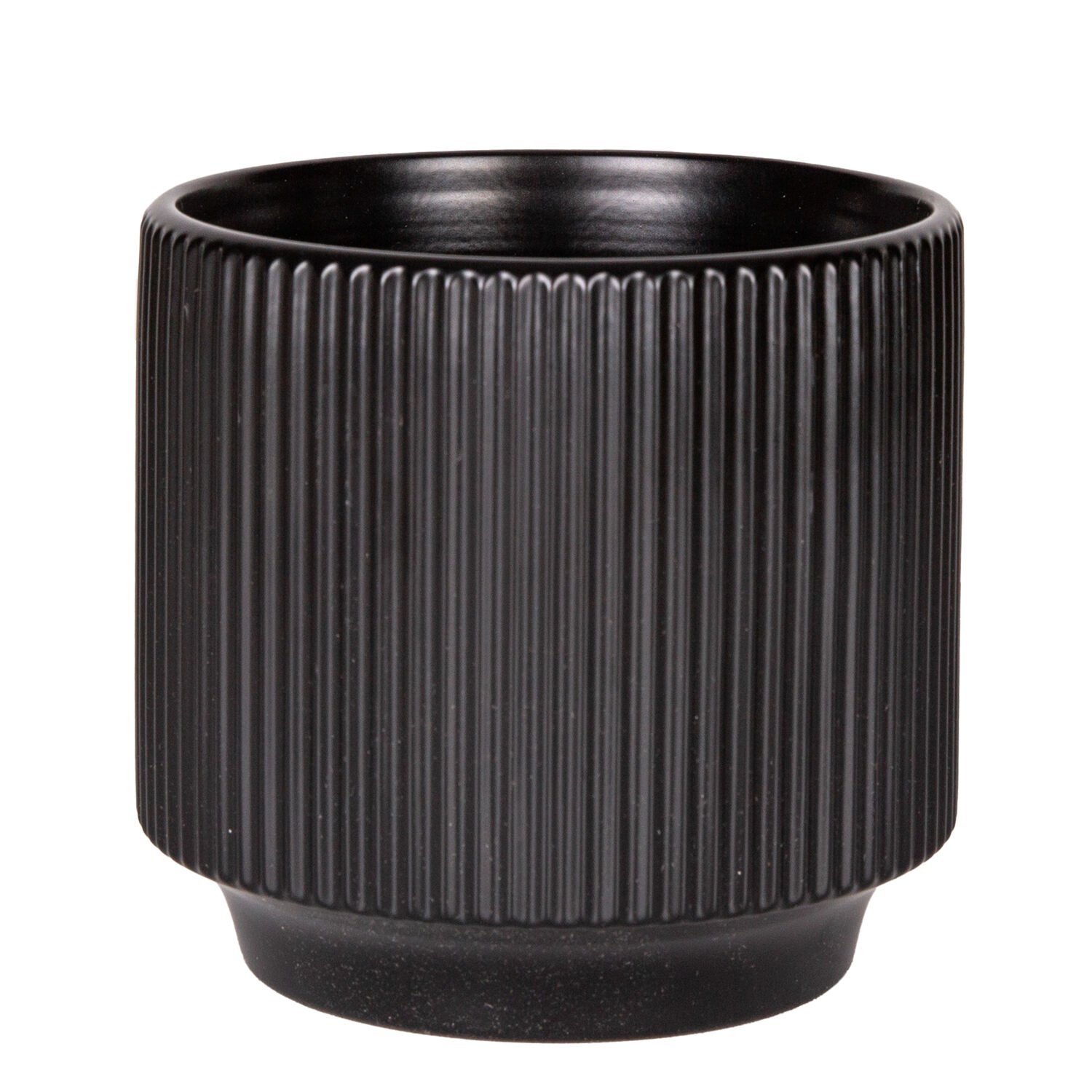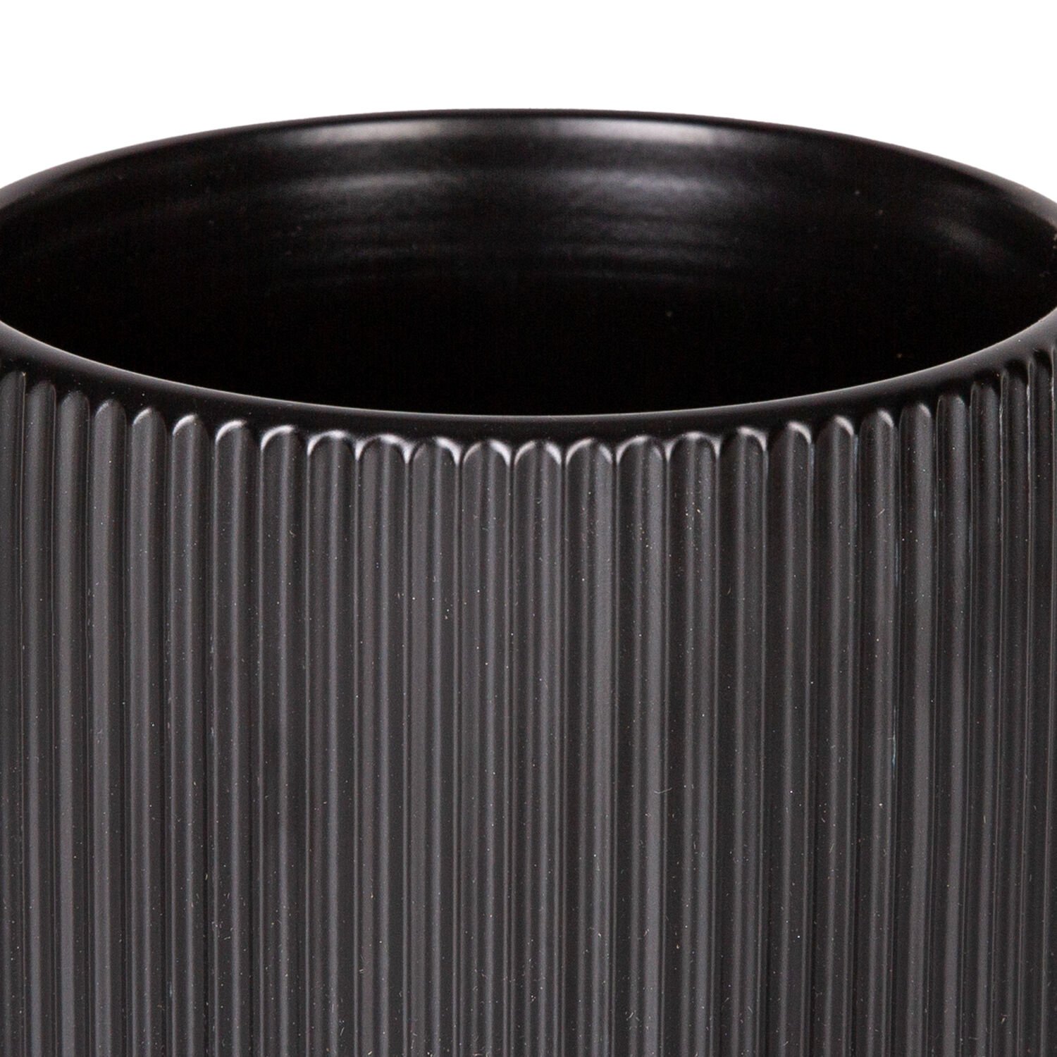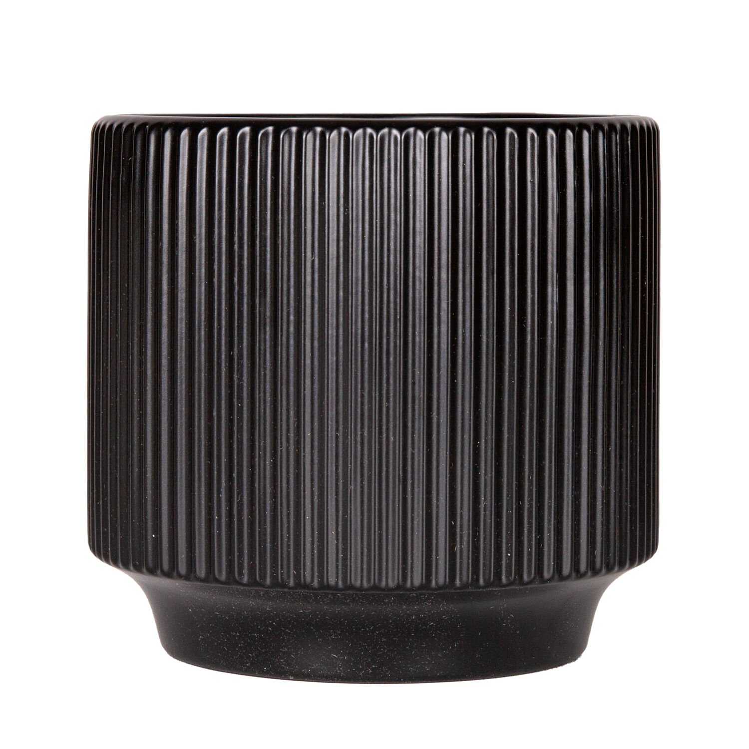 Seramik Saksı, Dikey Kabartma Çizgili, Siyah - 12,5x12 cm