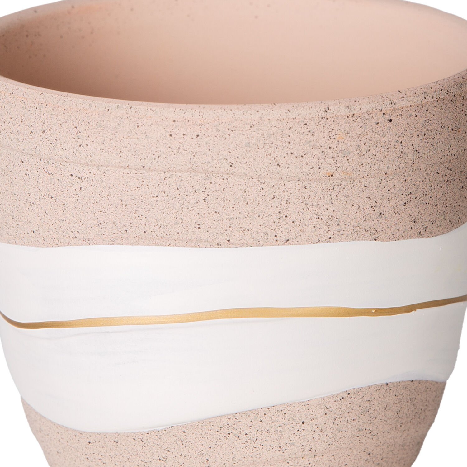 Seramik Saksı Gold Şeritli Desenli Bej-Beyaz 10x8 Cm.