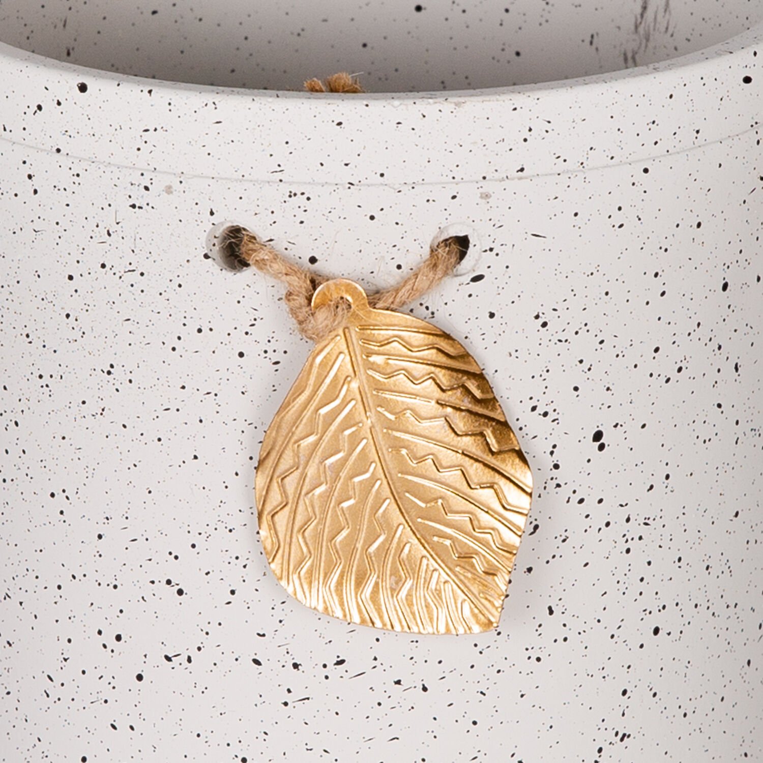Seramik Saksı, Gold Yaprak Aksesuarlı, Beyaz - 13,5x13 cm