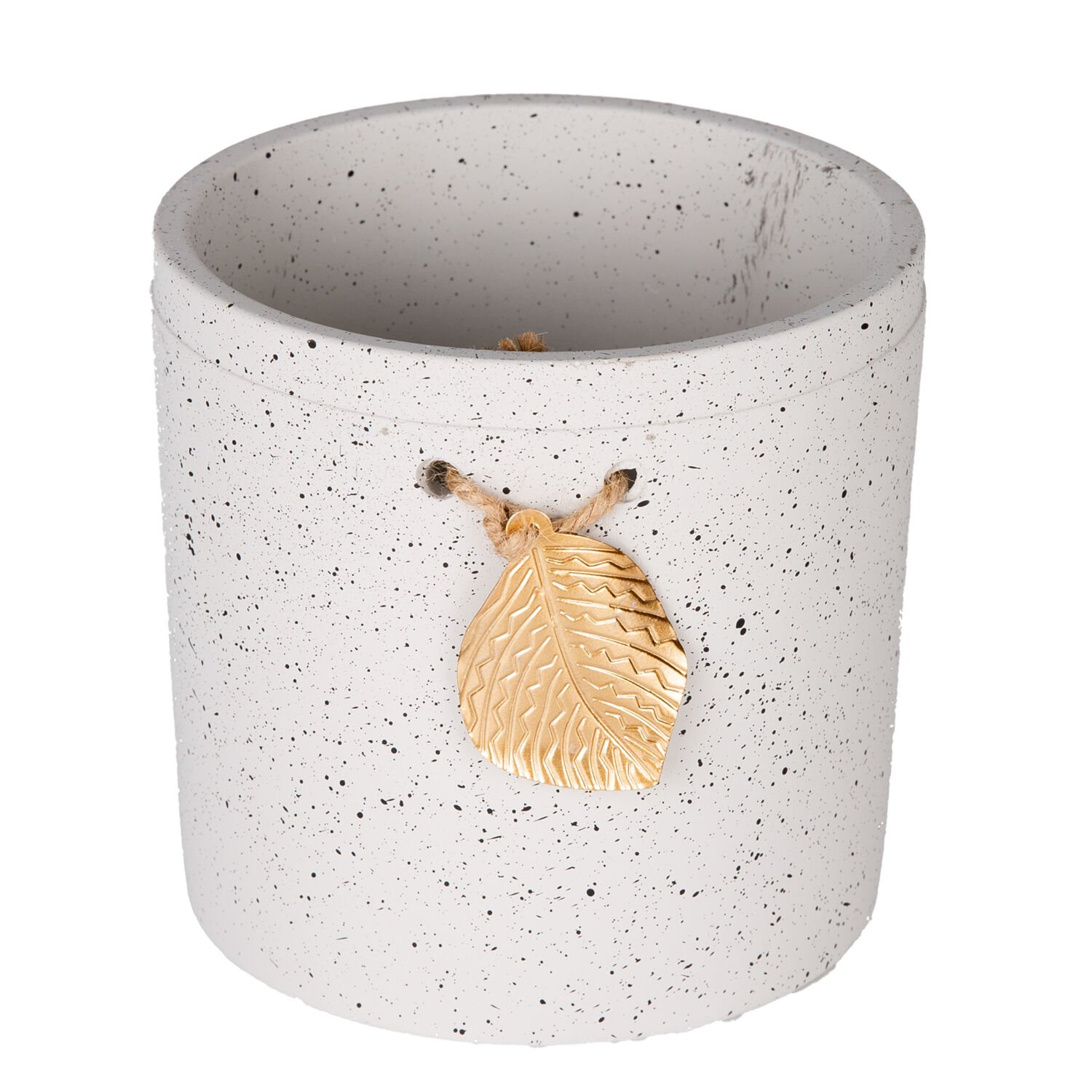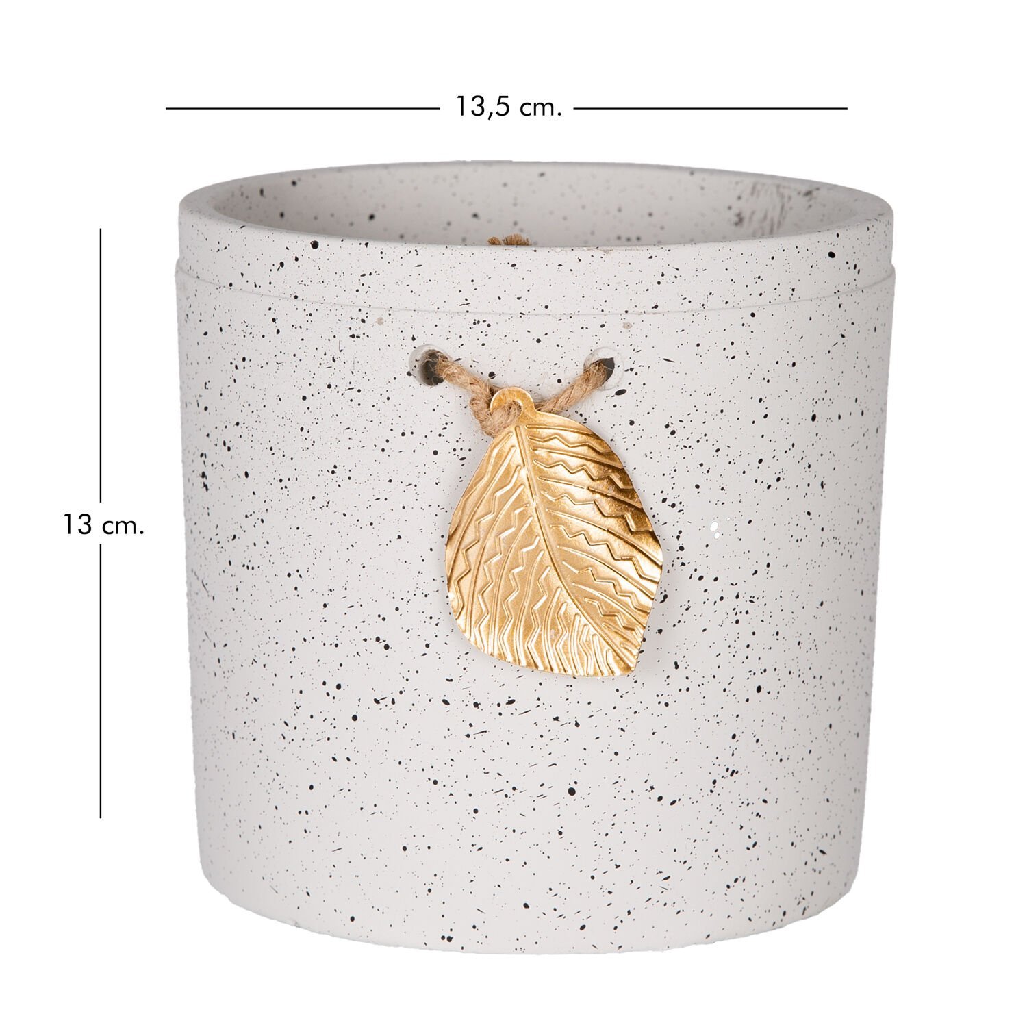 Seramik Saksı Gold Yaprak Aksesuarlı Beyaz 13,5x13 Cm.