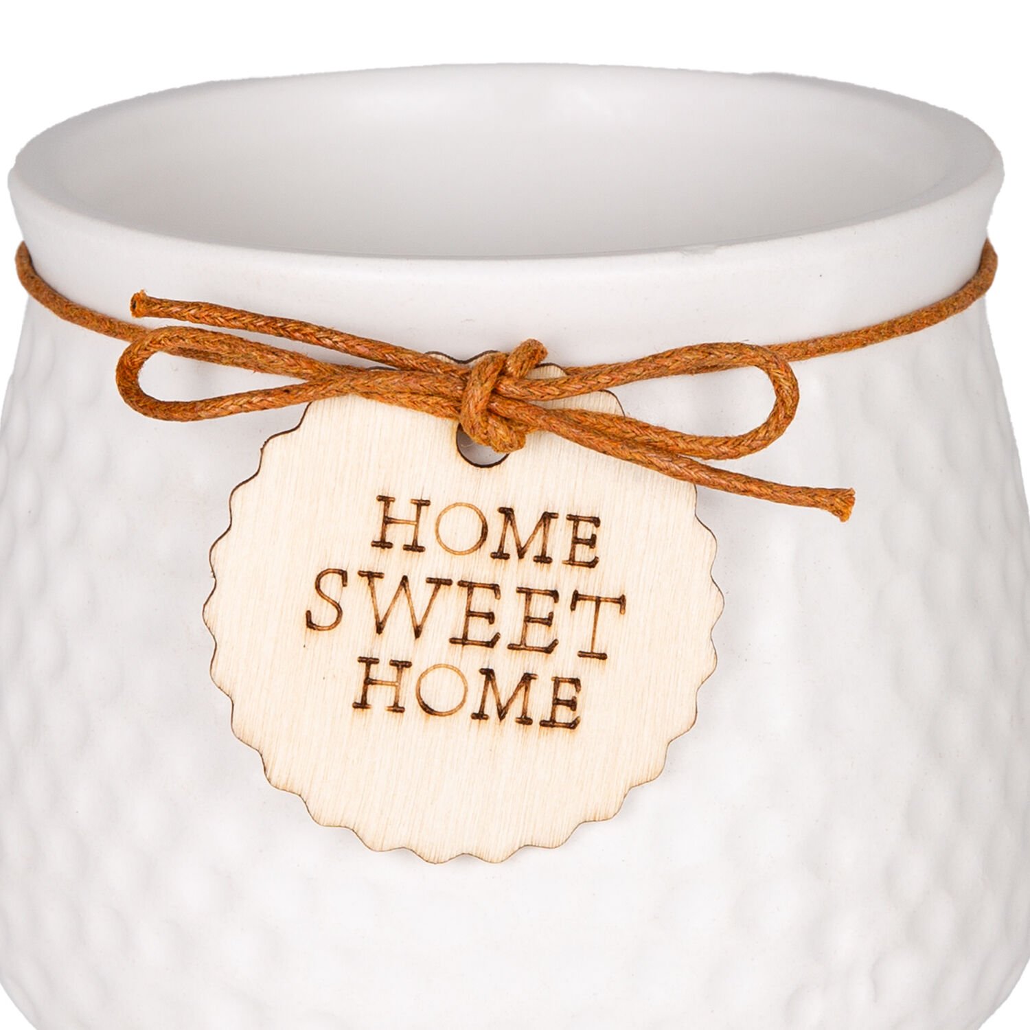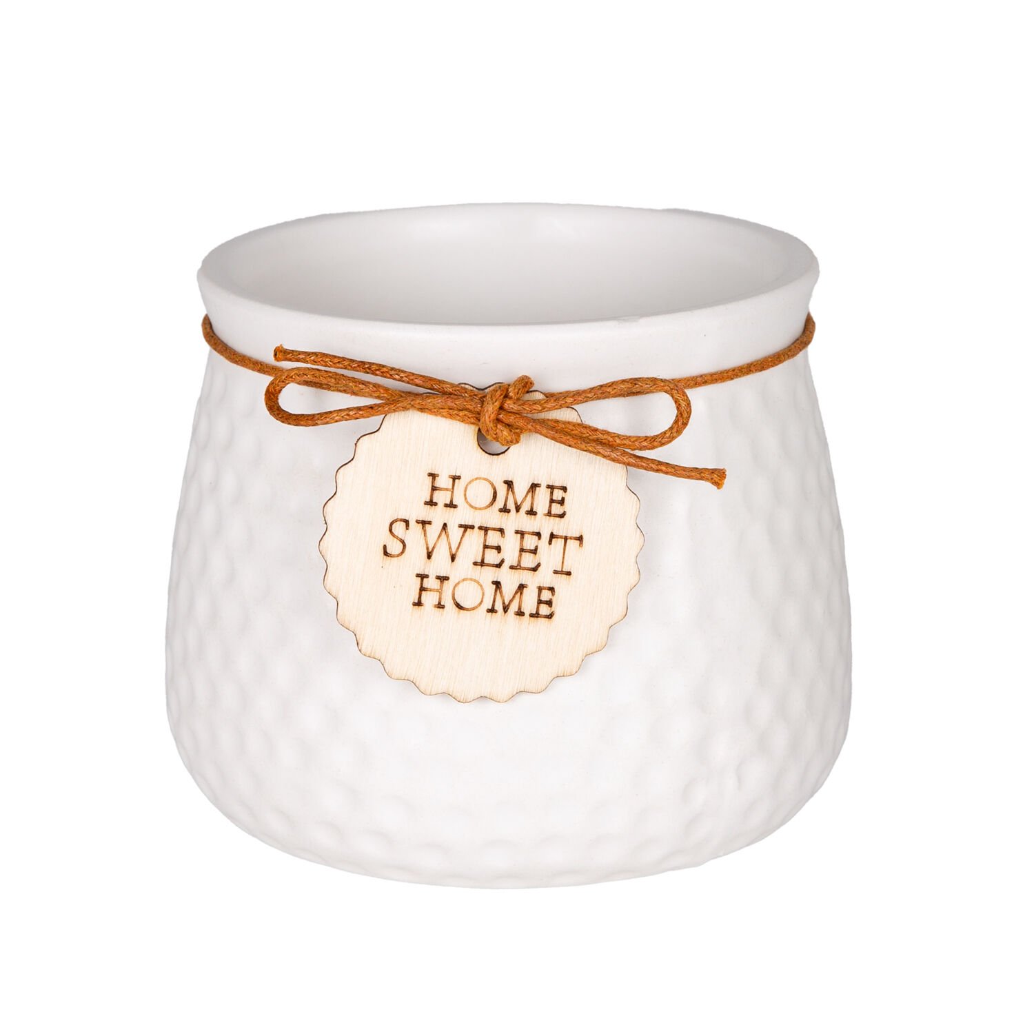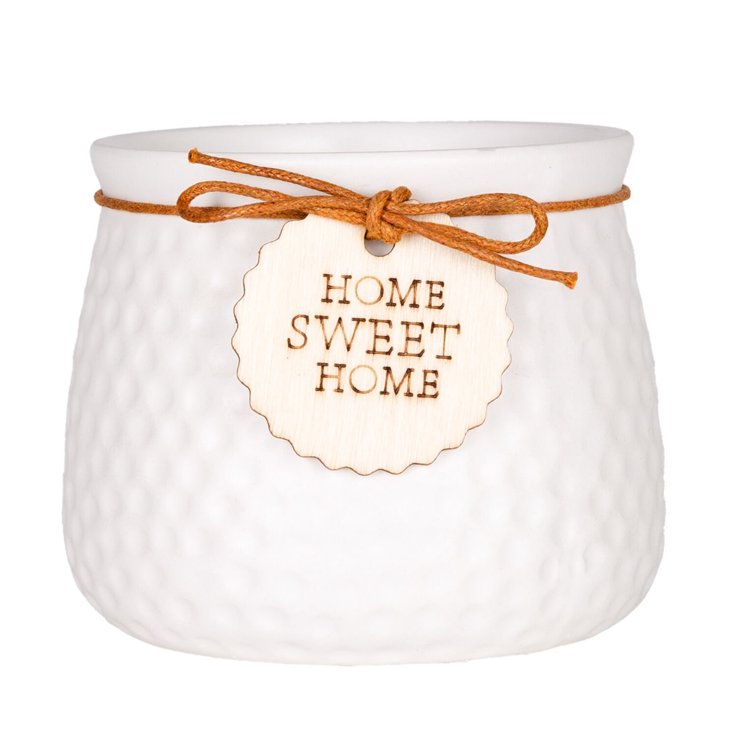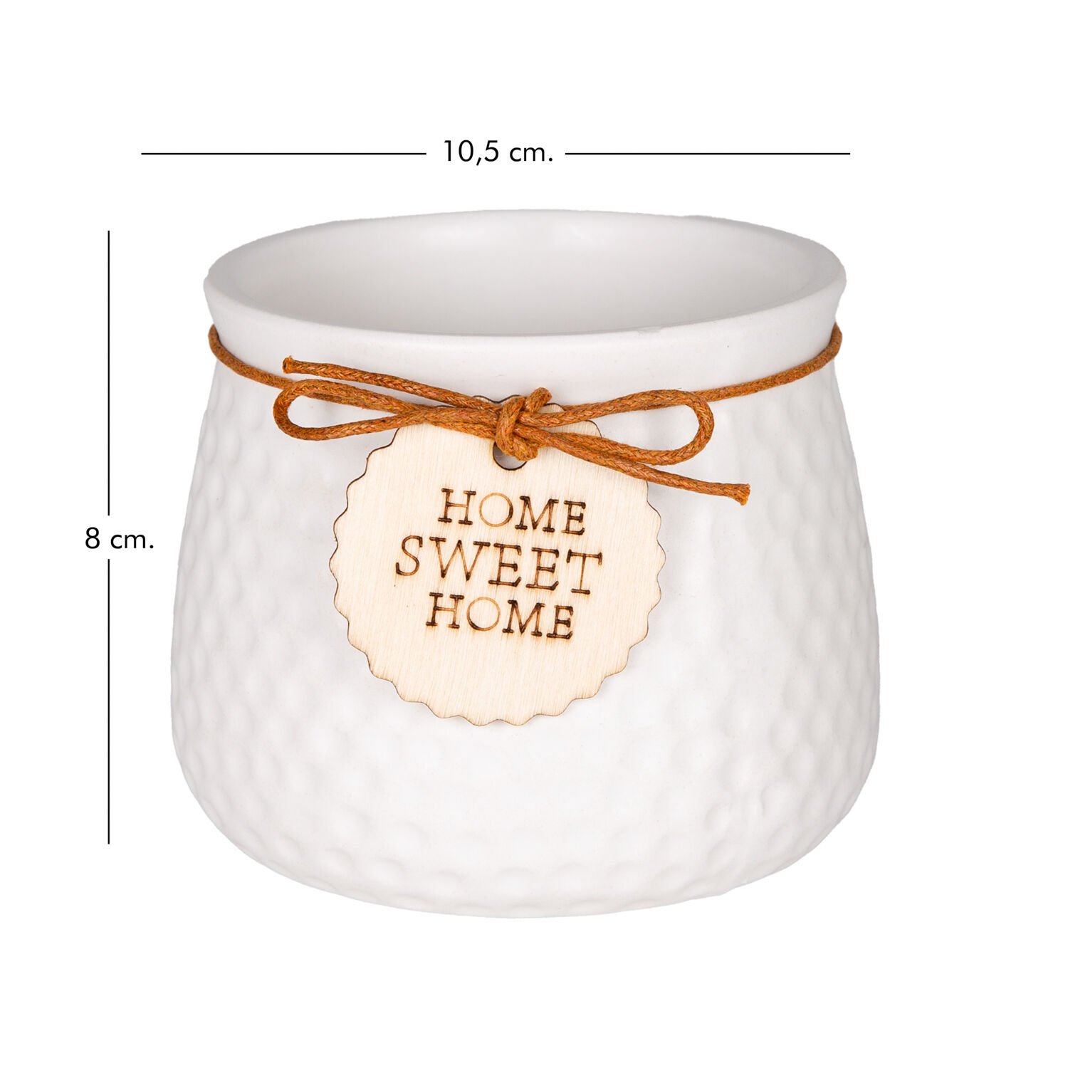 Seramik Saksı Home Sweet Home Aksesuarlı Beyaz 10,5x8 Cm.