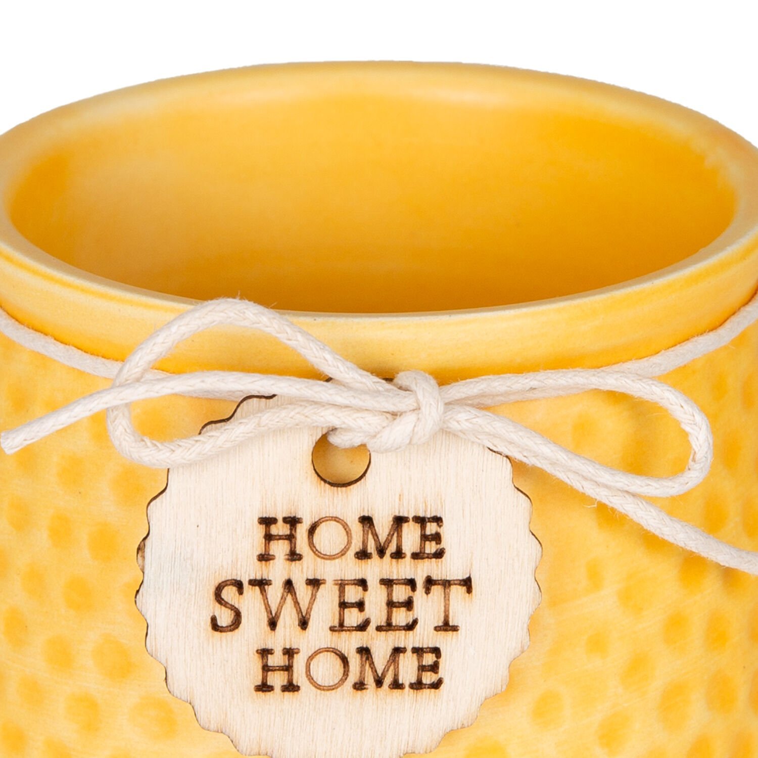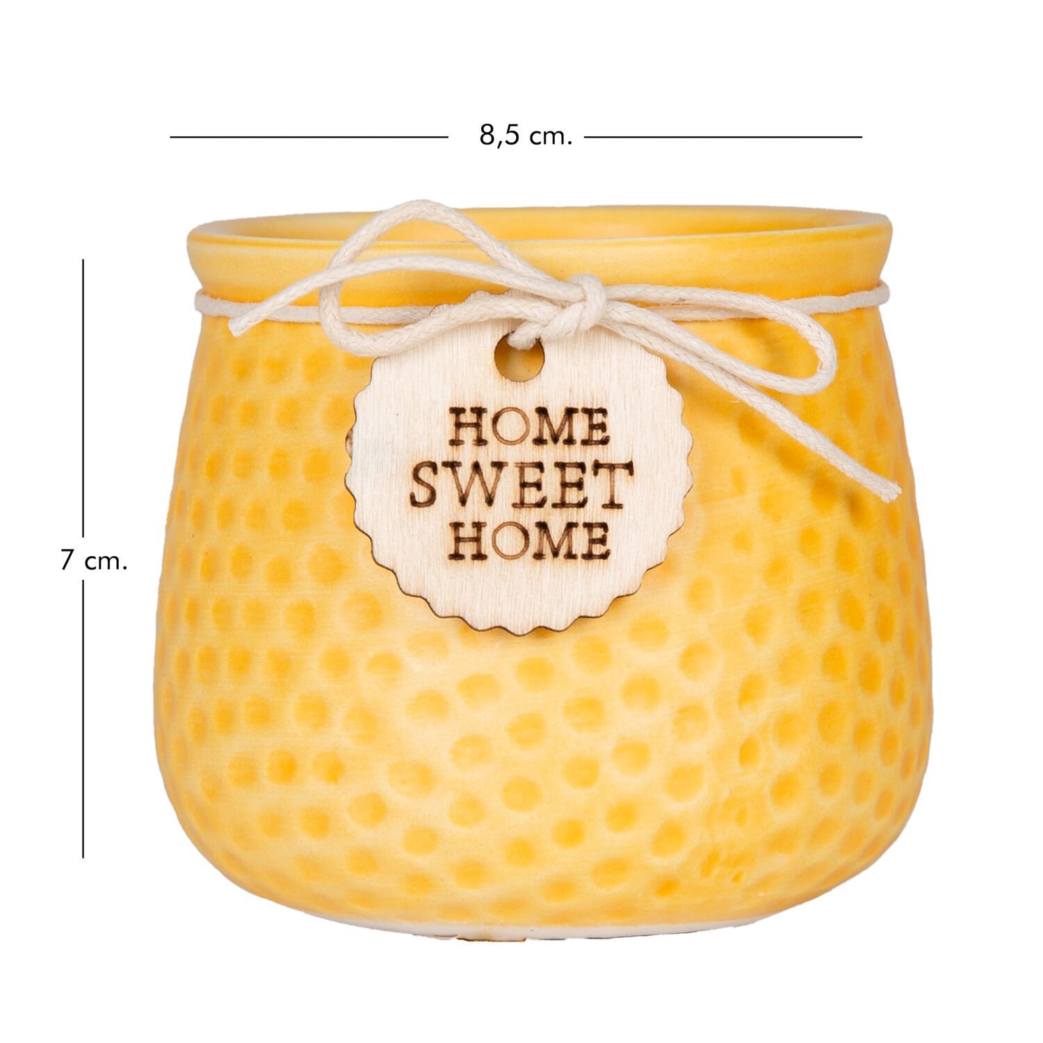 Seramik Saksı Home Sweet Home Aksesuarlı Sarı 8,5x7 Cm.