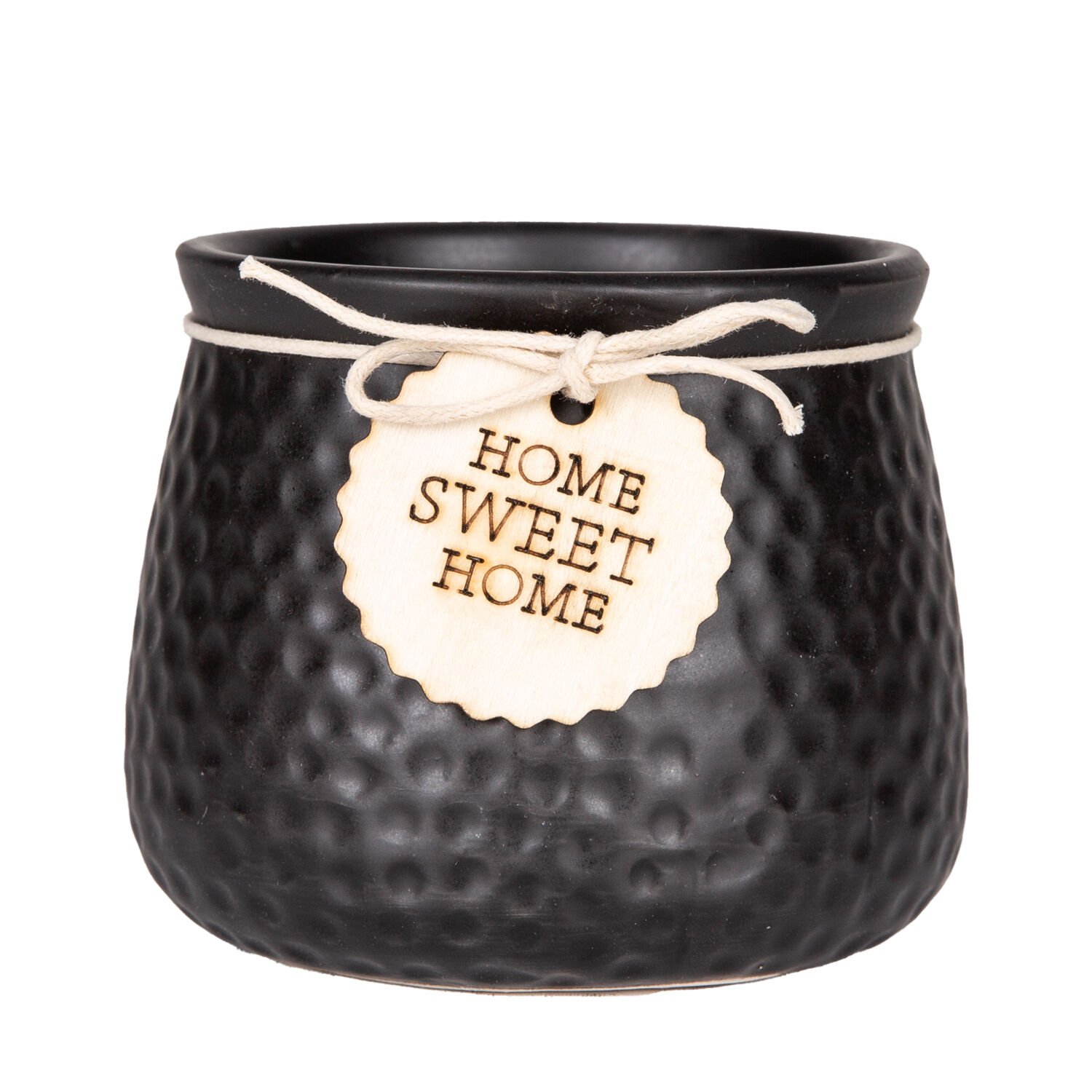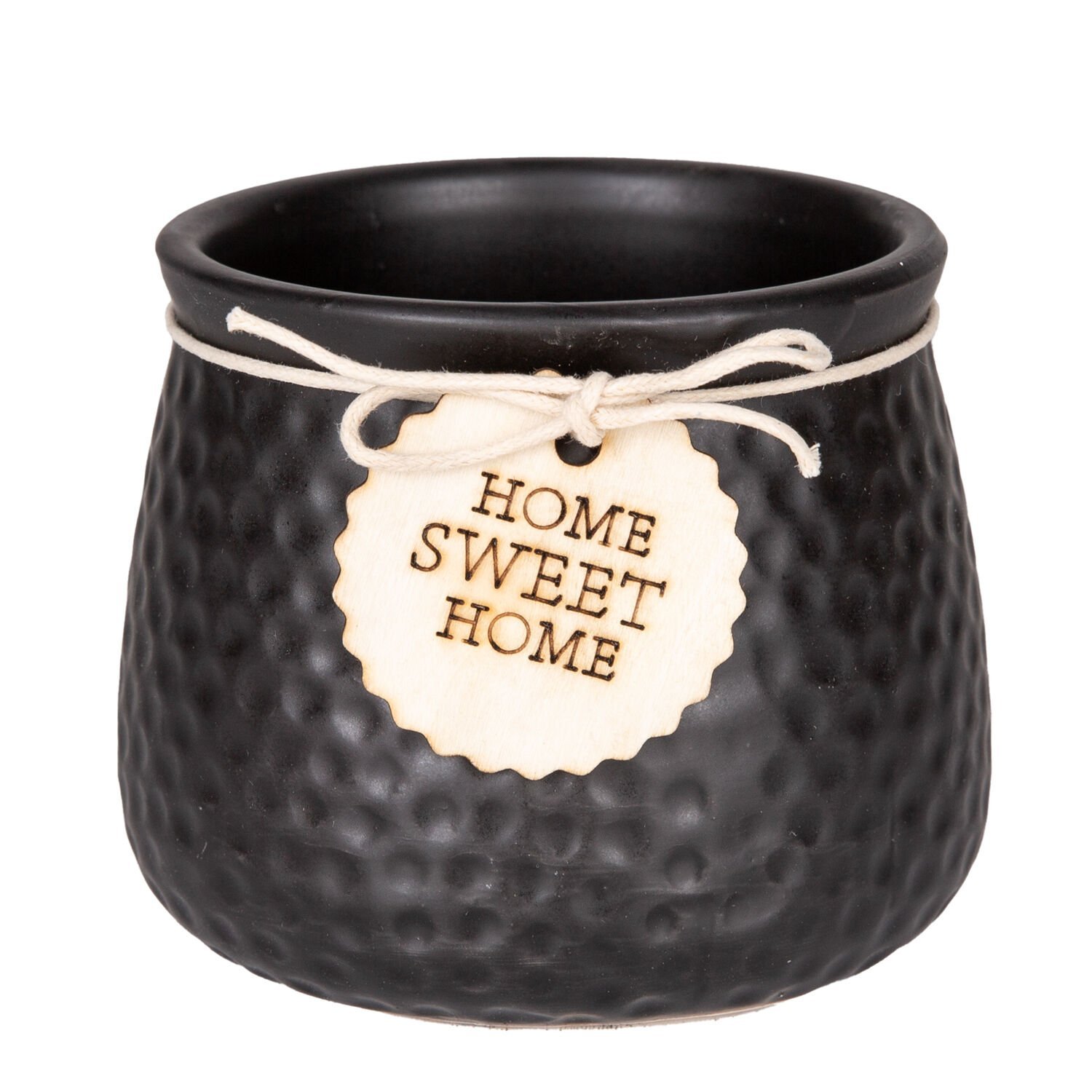 Seramik Saksı Home Sweet Home Aksesuarlı Siyah 10,5x8 Cm.