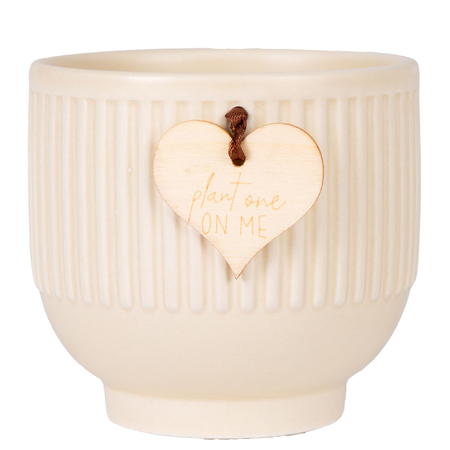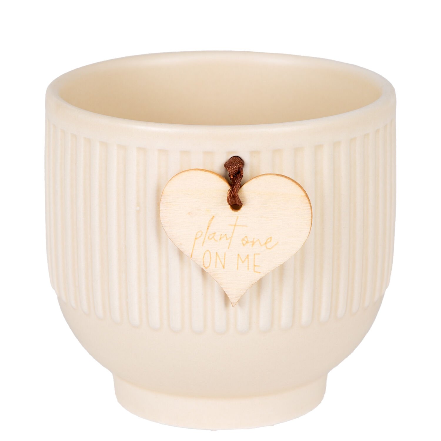 Seramik Saksı Ahşap Figürlü Krem 10x10.5 Cm.