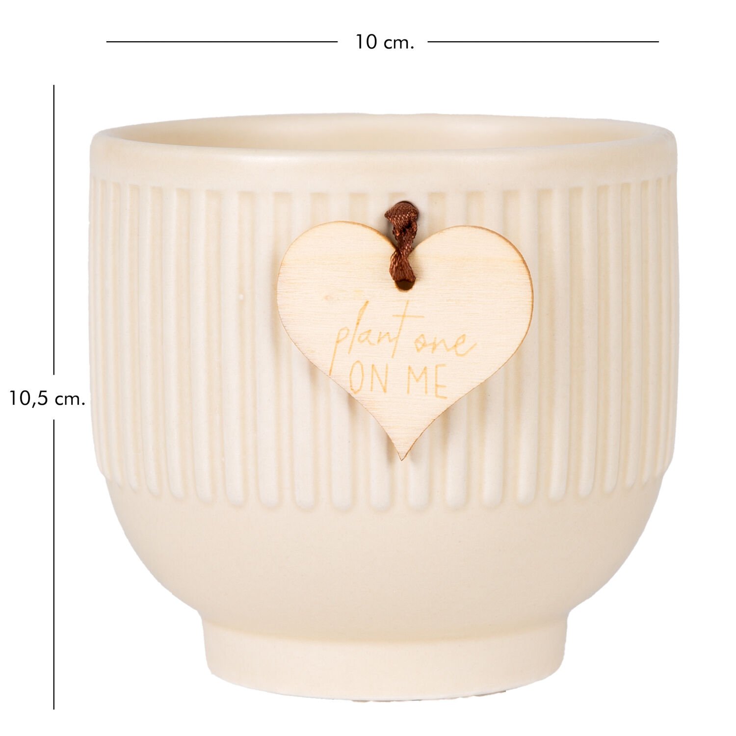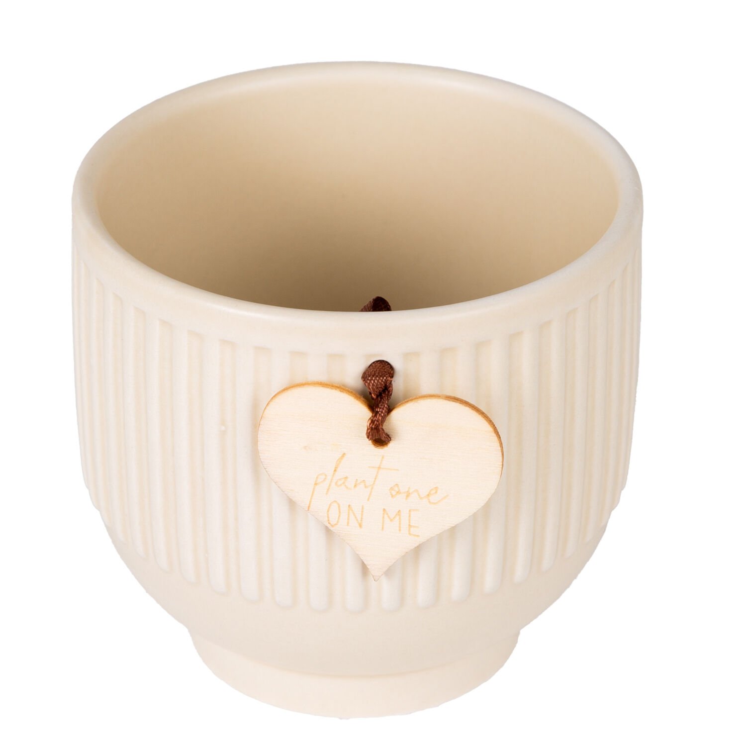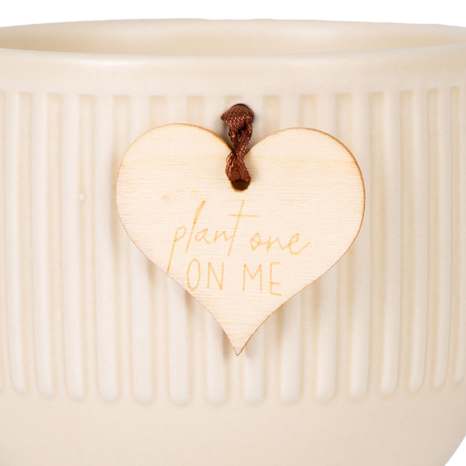 Modern tasarımlı seramik saksımız Dikey Kabartma Çizgili desenli , Üzerinde "Plant One On Me " yazılı Ahşap Figürlü şık tasarımı ile evlerinizde, balkonlarınızda ve bulunduğu mekanda şıklığınızı yansıtacaktır. 1.nci kalite seramikten üretilen seramik saksımız hafif , dayanaklı ve pürüzsüz yapısıyla içine koyacağınız kuru ve yapay çiçeklerinize, sukulent ve kaktüslerinizin güzelliğine güzellik katacaktır. Görsel estetiğe önem verenlerin tercihi olan Seramik Saksılarımız , yapay ağaç , çiçek ve bitkilerinizi dekorasyonlarda göz alıcı bir şekilde sergilemenizi sağlayacaktır. Seramik Saksılarımız ve Çiçekliklerimize tarzınıza uygun bitkiler , yapay çiçekler veya objeler koyarak dekoratif amaçlı da kullanabilirsiniz, hasar direnci yüksektir ve uzun ömürlüdür ayrıca rengi kolay solmaz.