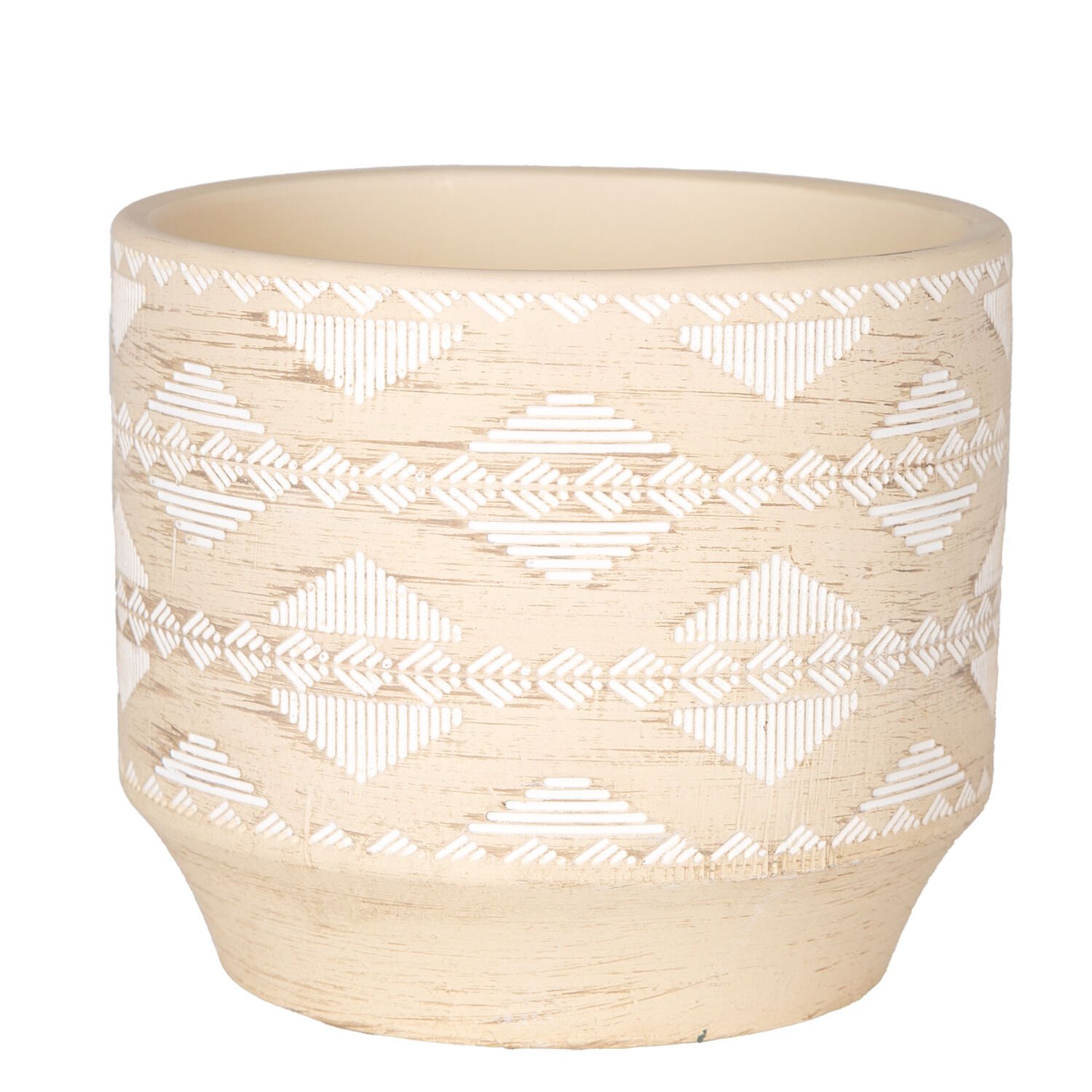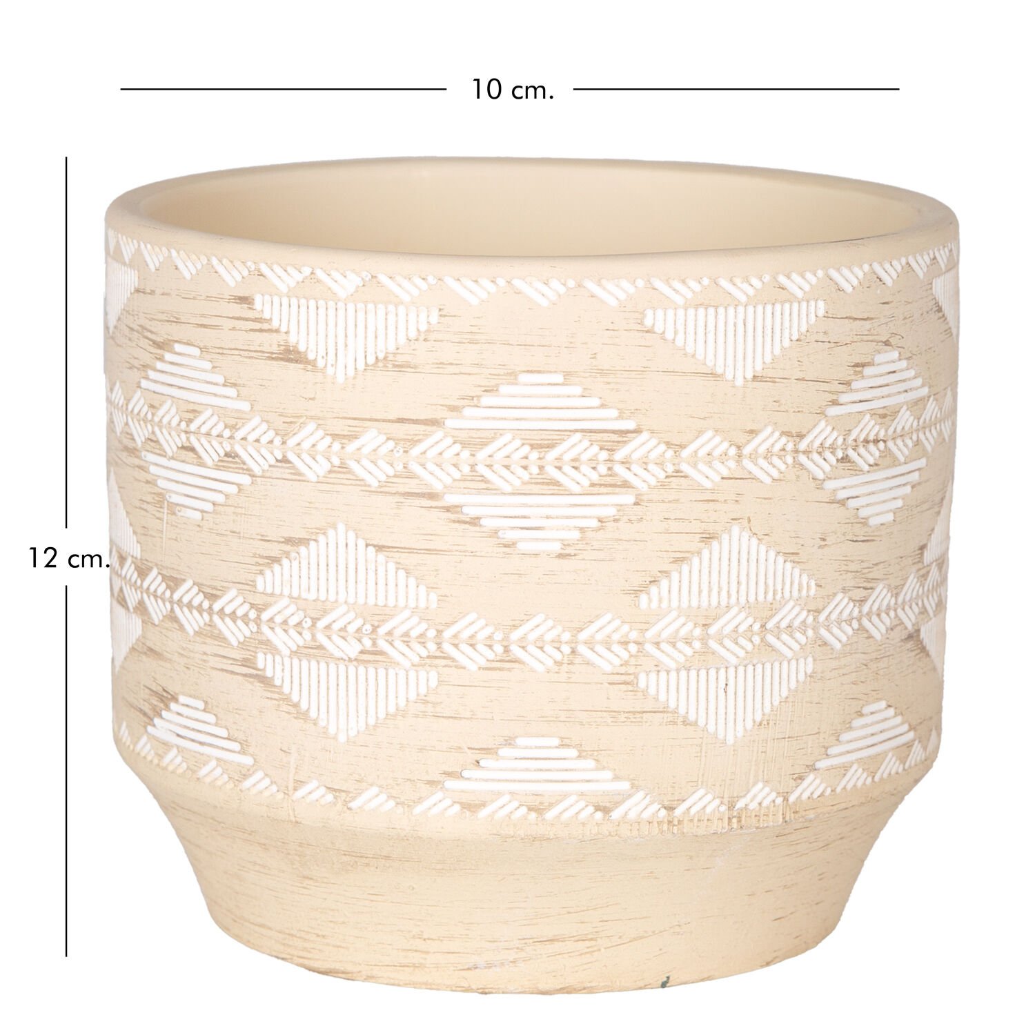 Seramik Saksı, Otantik Desenli, Bej-Beyaz - 12x10 cm