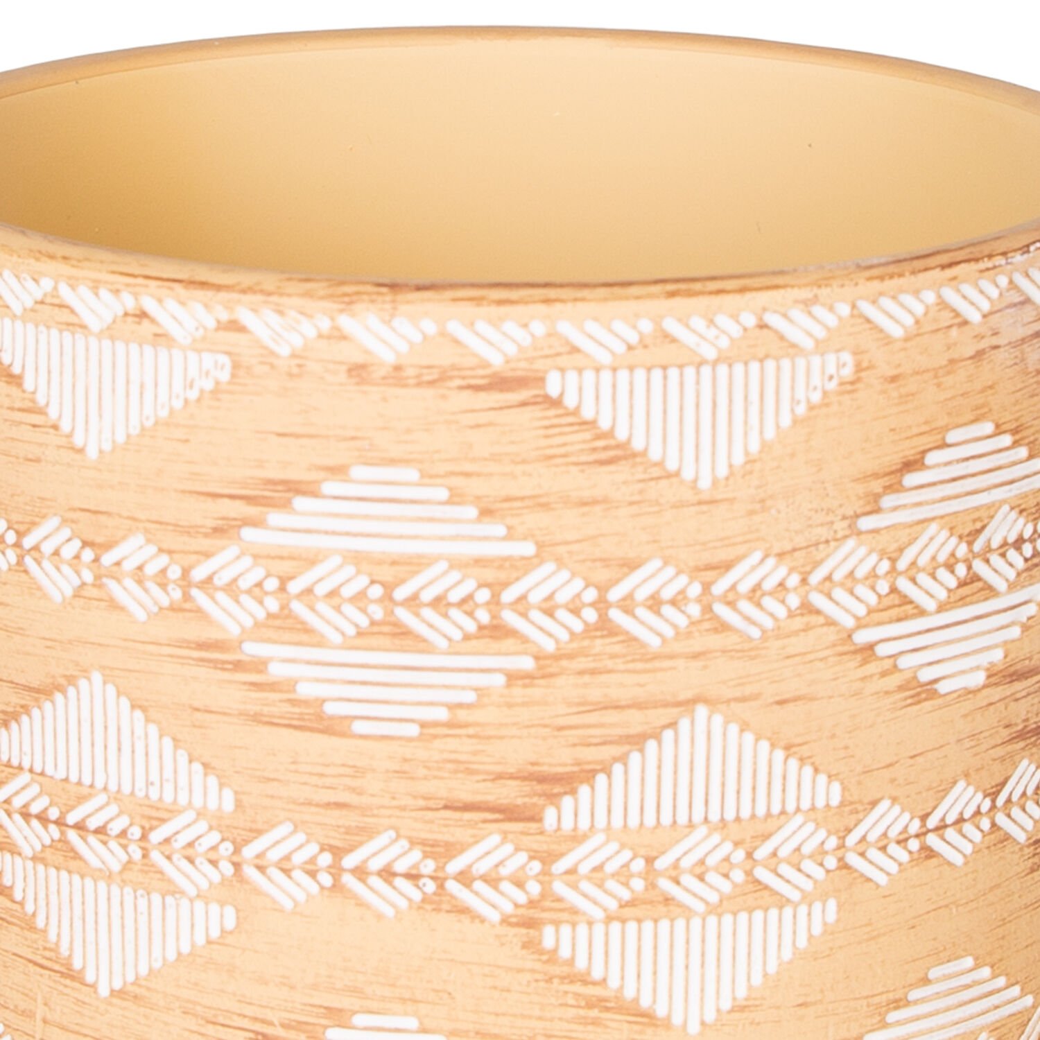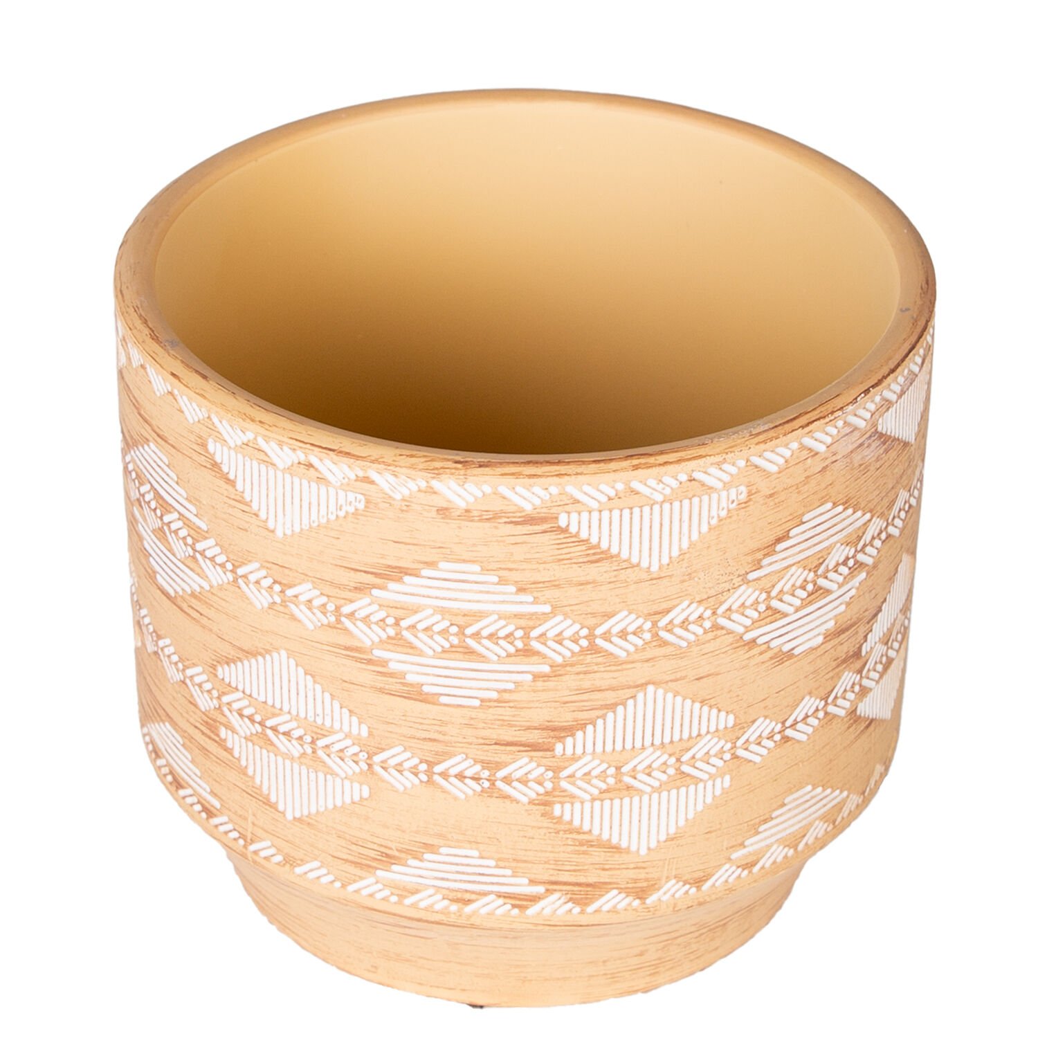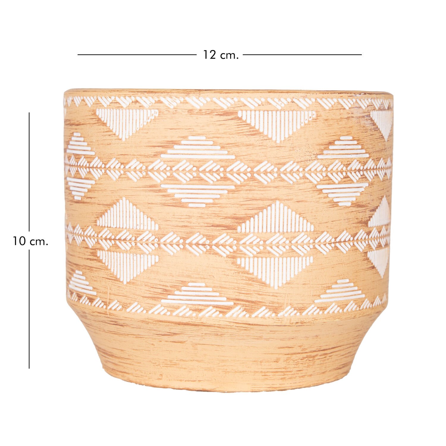 Seramik Saksı, Otantik Desenli, Krem-Beyaz - 12x10 cm