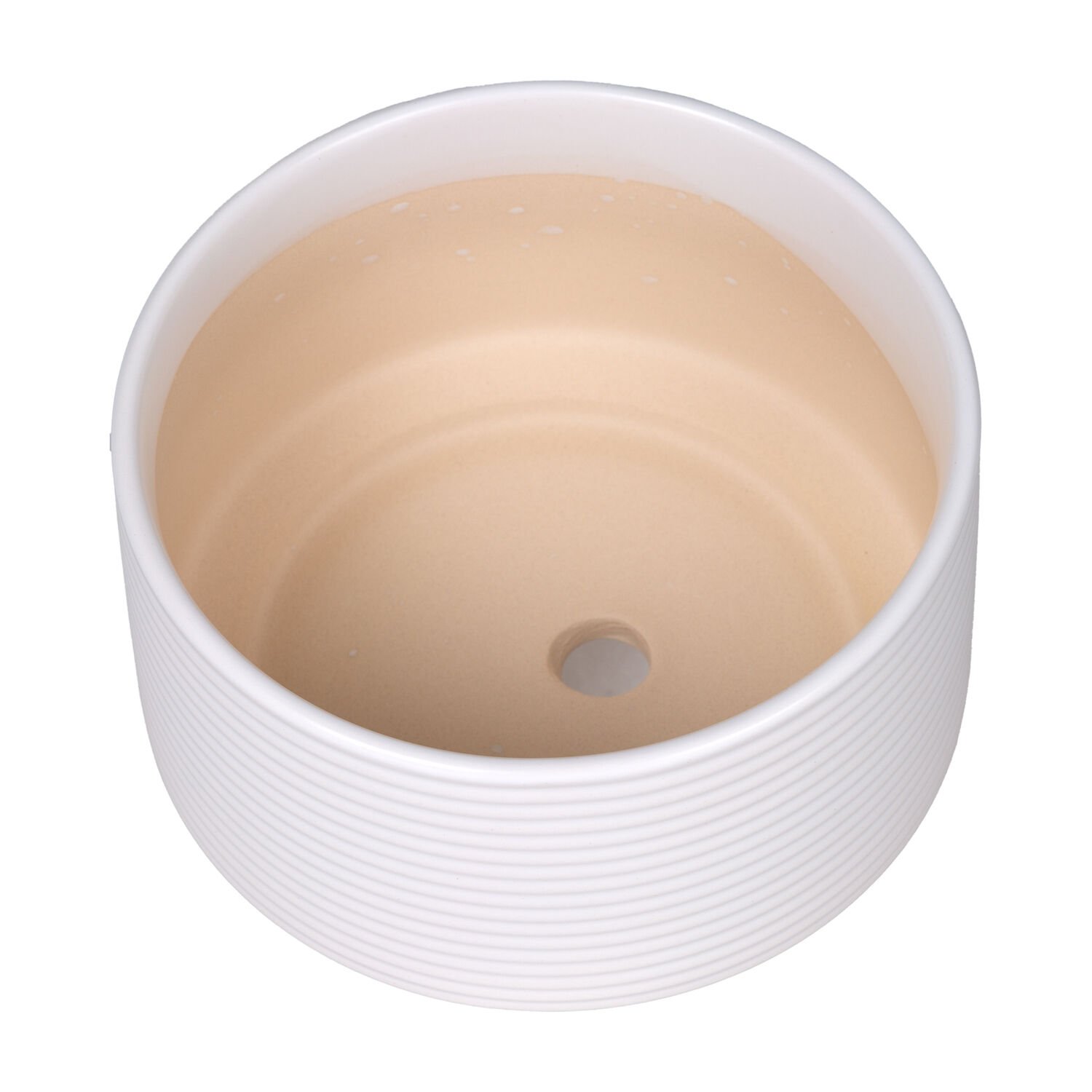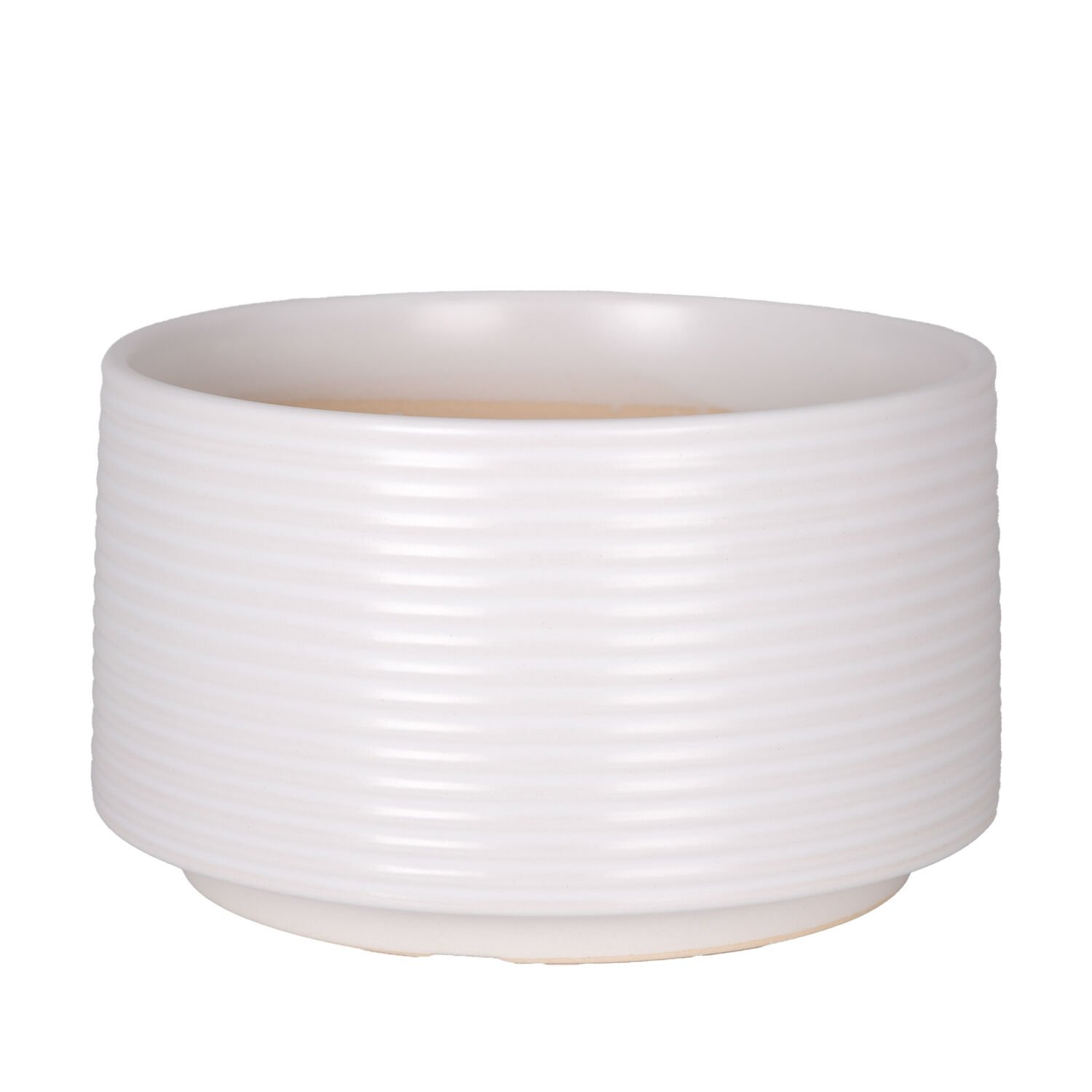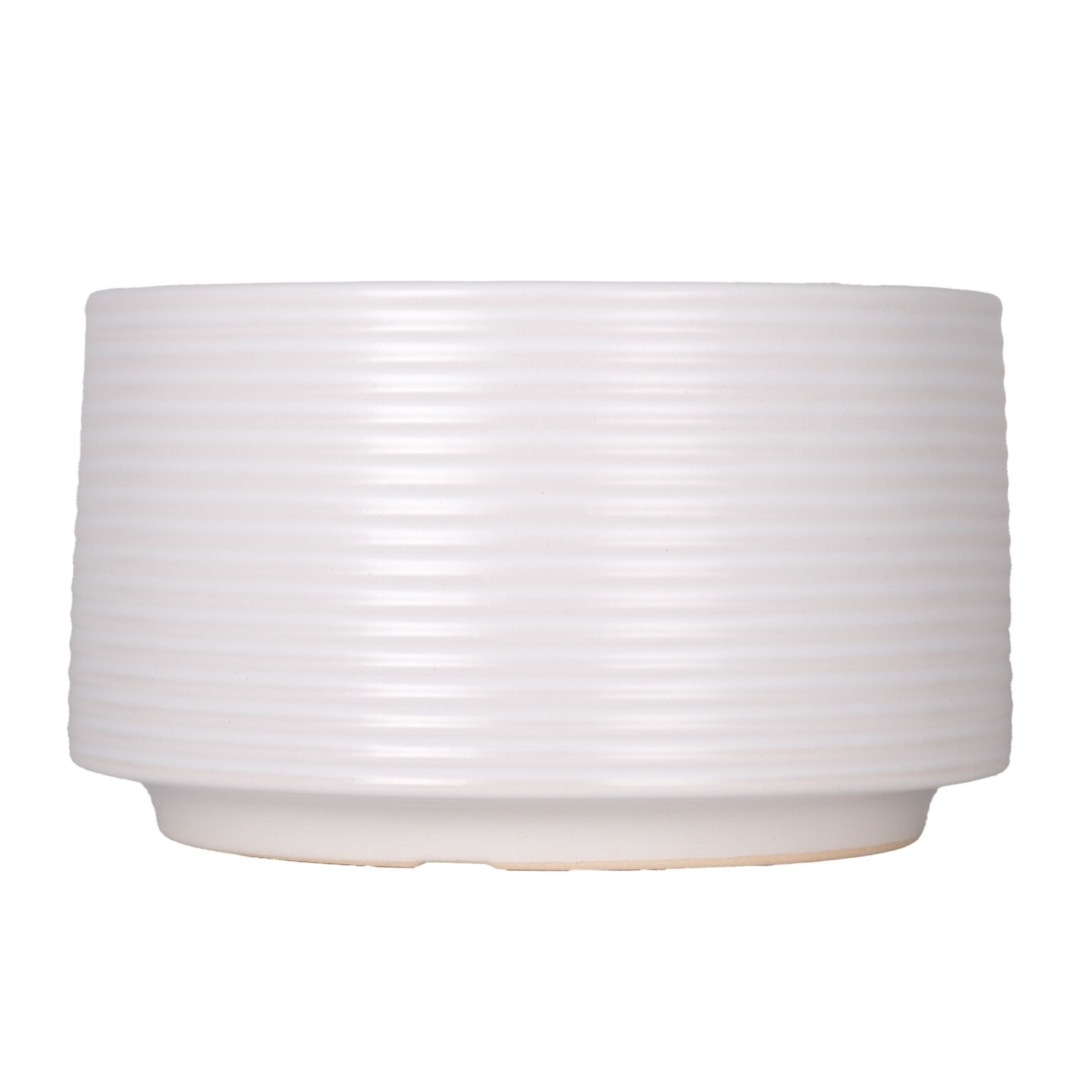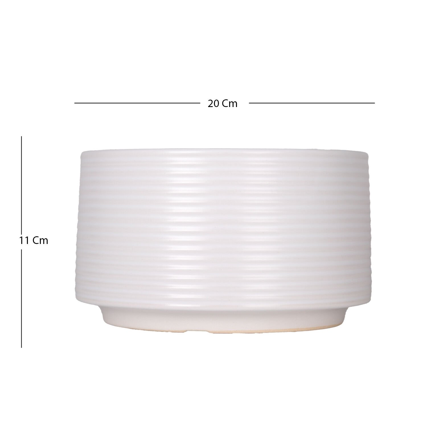 Seramik Saksı, Yatay Kabartma Çizgili, Beyaz - 20x11 cm