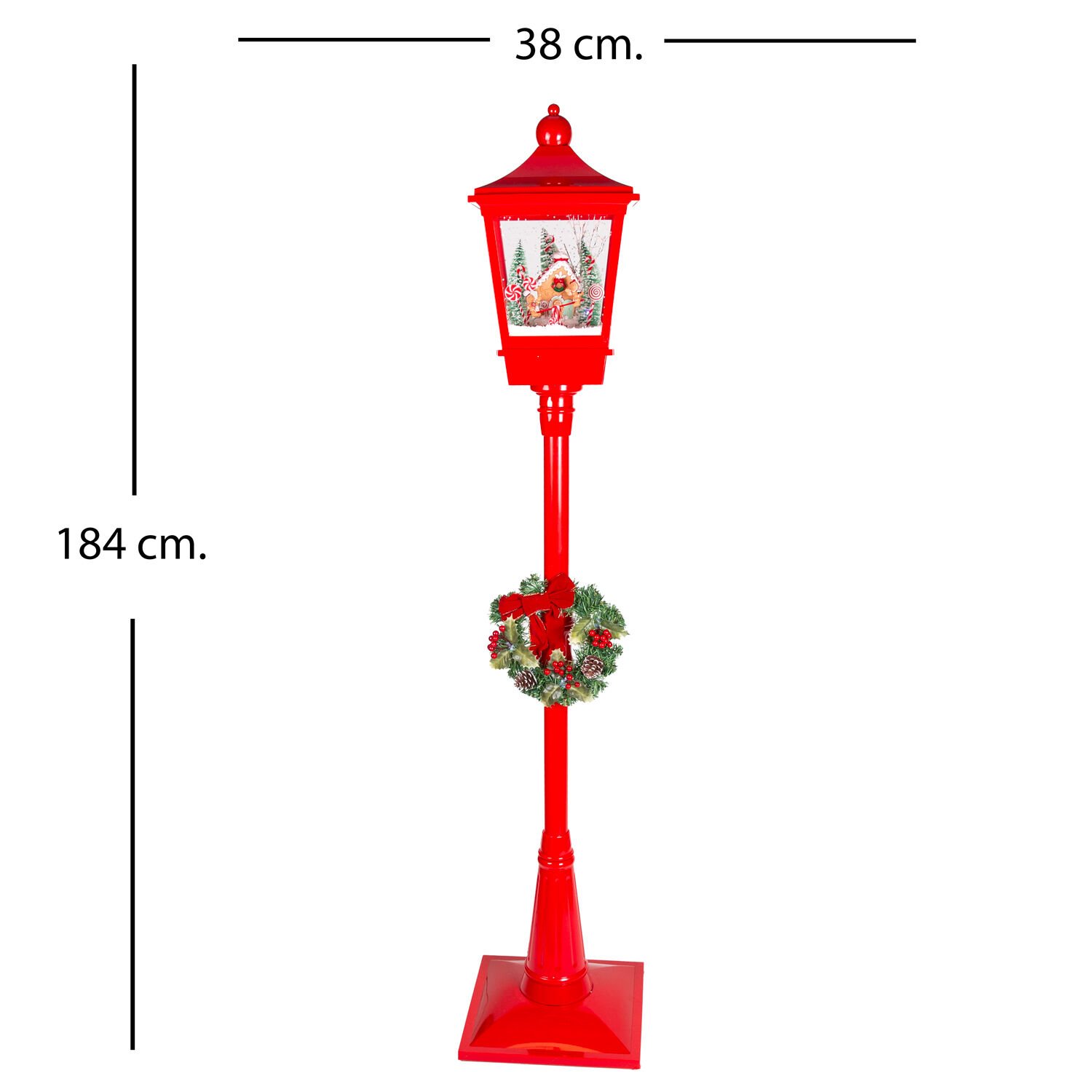 Sokak Lambası, Kırmızı - Kar Fıskiyeli, Işıklı, Müzikli, 184 cm