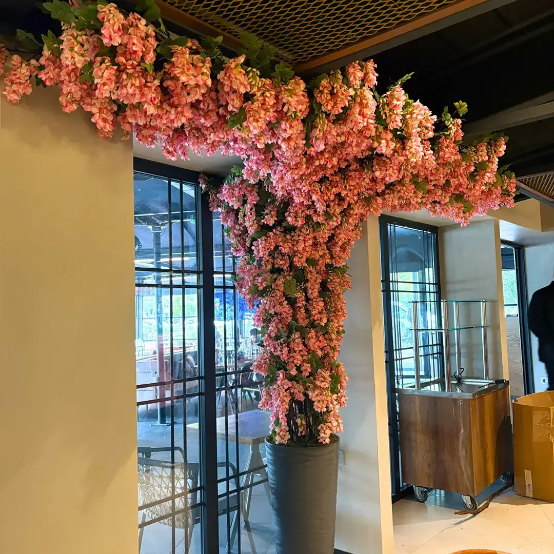 Tercih Sebebi: Kullandığımız birinci sınıf Visterya salkımları, gerçeğe en yakın dokusu ve canlı renkleriyle öne çıkar. Güneş ışığında solma yapmayan, toz tutmayan ve yıllarca ilk günkü formunu koruyan yapısı sayesinde, mekanlar için hem estetik hem de pratik bir çözüm sunar.