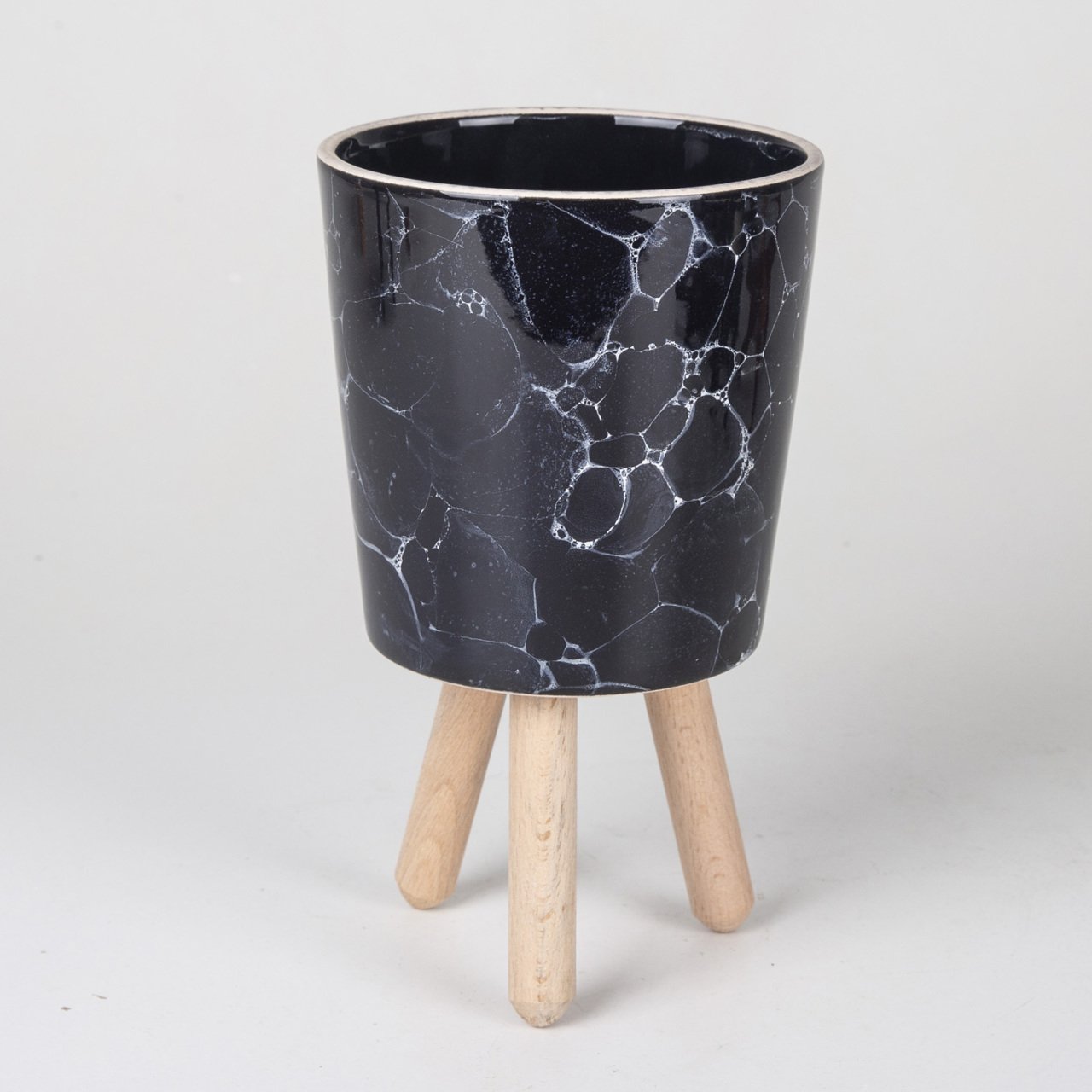 Veramaya Ayaklı Köpük Desen Orta Boy Siyah Seramik Saksı 13x22 Cm
