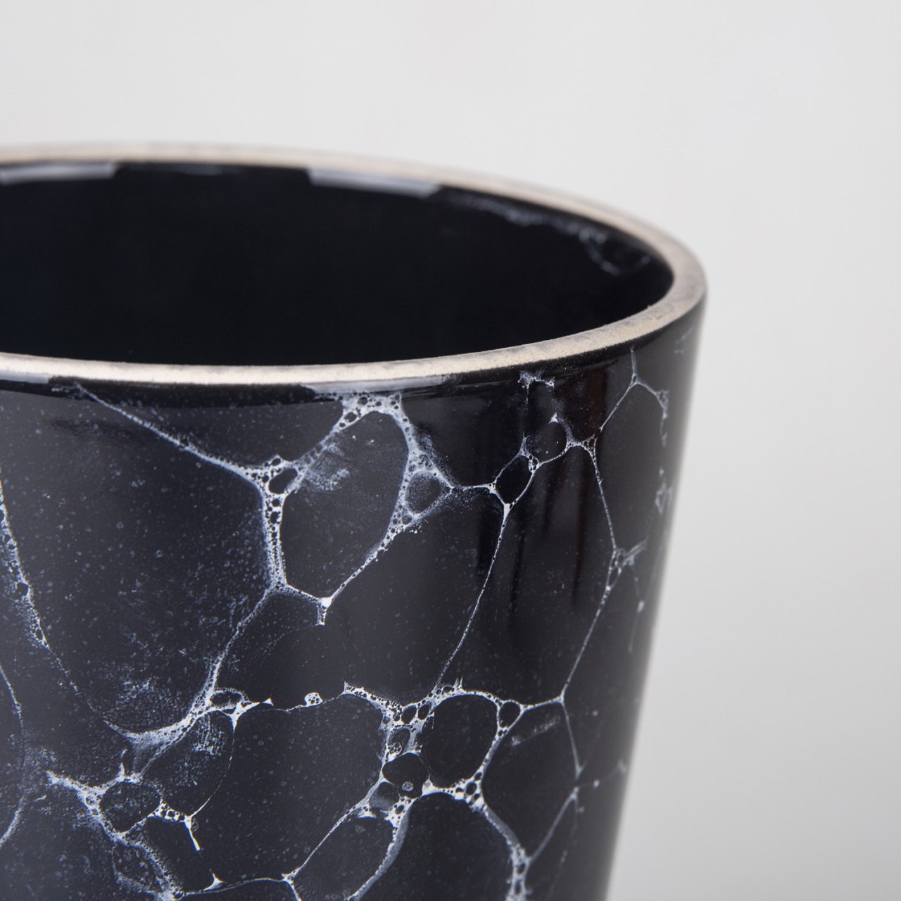 VeraMaya Ayaklı Köpük Desen Orta Boy Siyah Seramik Saksı 13x22 Cm