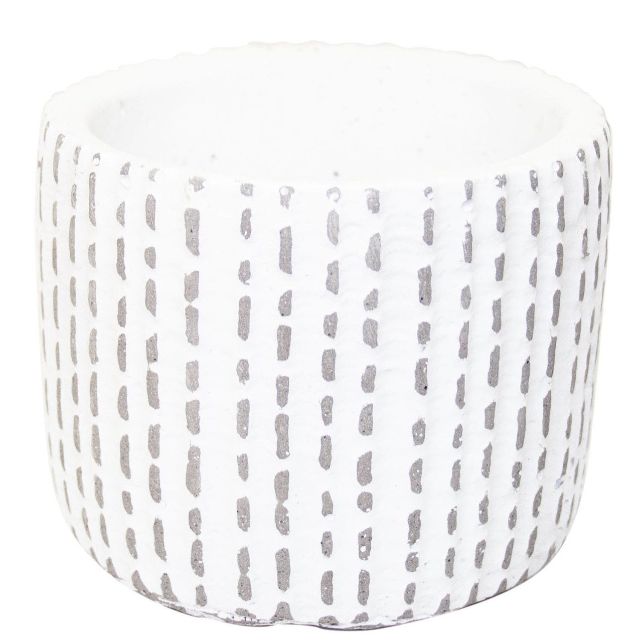 VeraMaya Çizgili Eskitme Beton Saksı Beyaz 10x12,5 Cm