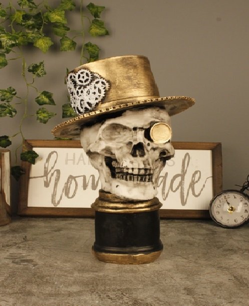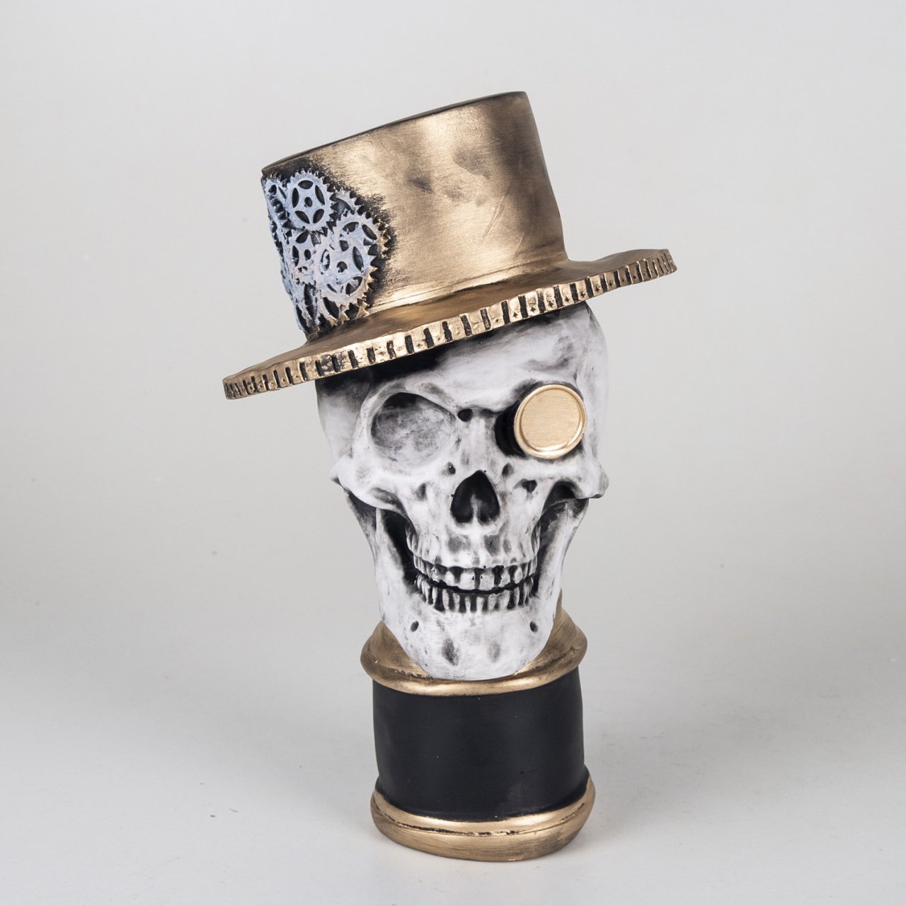 VeraMaya Şapkalı Kurukafa Biblo 34x19 Cm