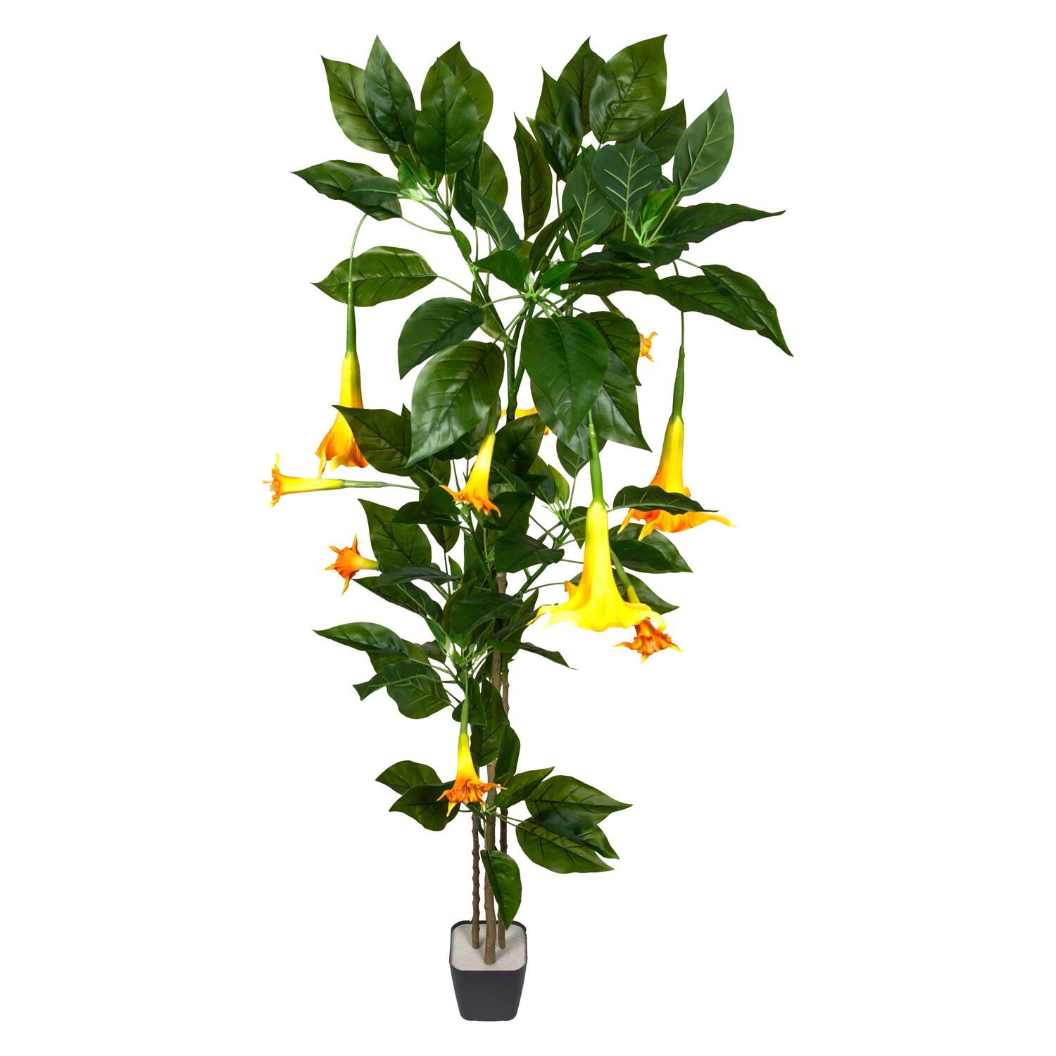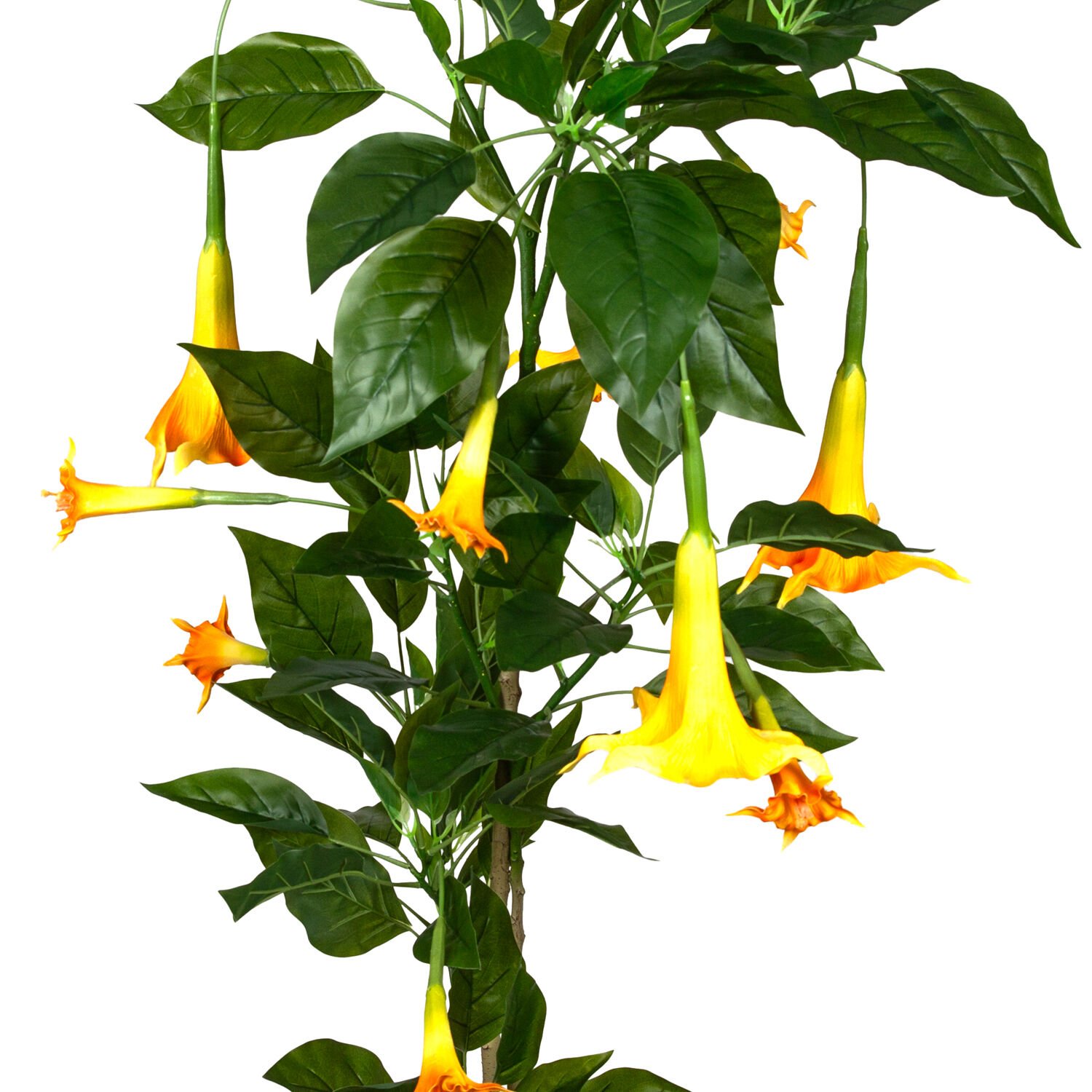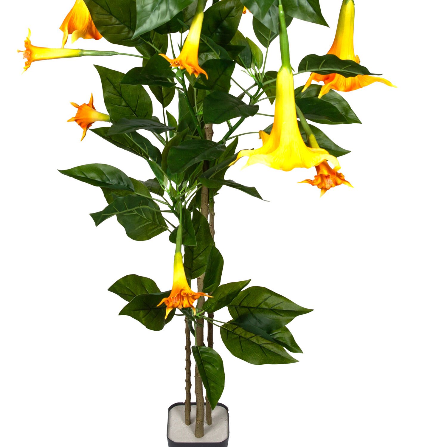 Yapay Ağaç, Datula-Boru Çiçeği, Gerçek Dokulu, Yeşil-Turuncu - 104 Yaprak, 10 Çiçekli, 160 cm