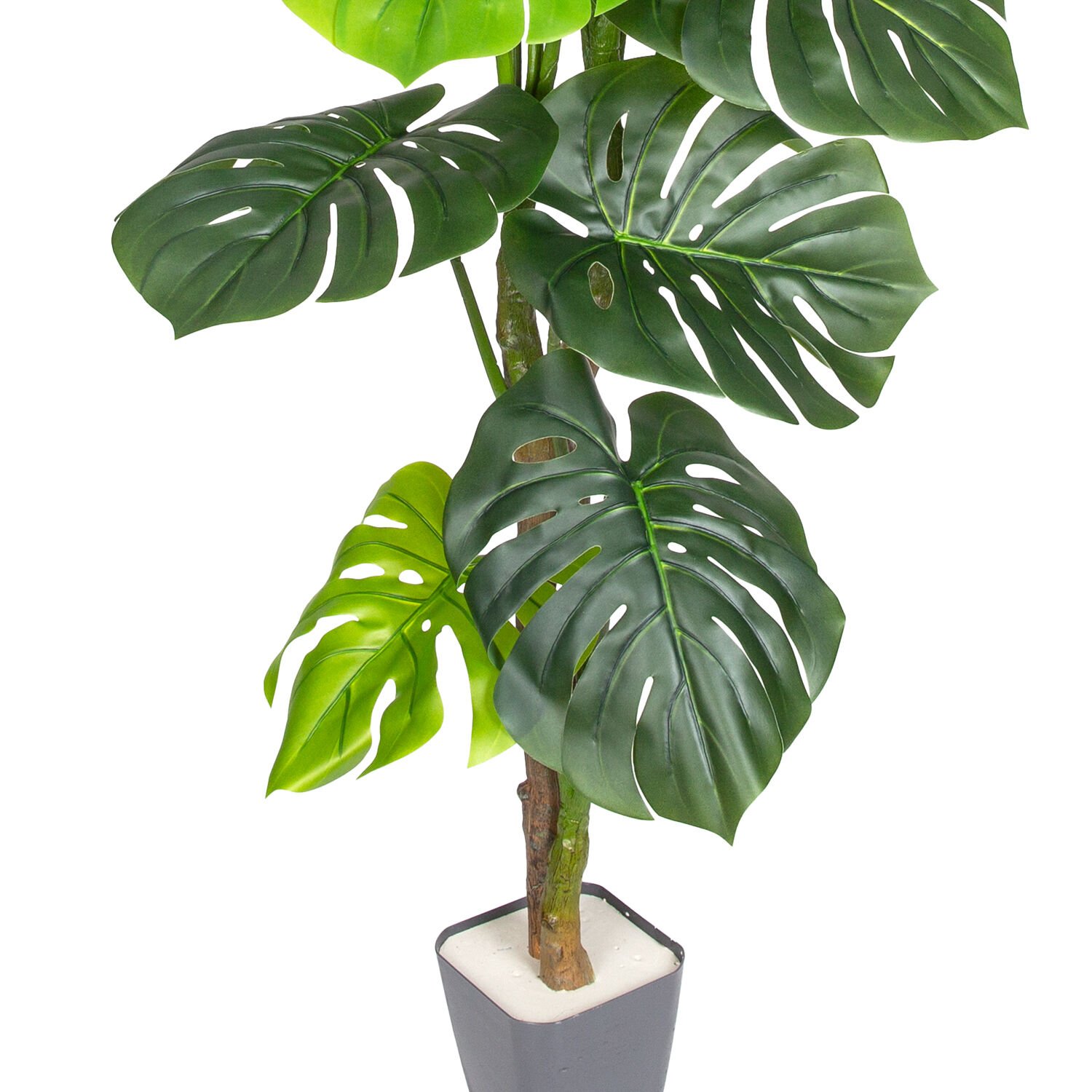 Mağaza , cafe , ev ve balkonlarınızda kullanabileceğiniz bakım gerektirmeyen , diğer yapay bitki ve çiçek ürünlerimizle aranjman oluşturabileceğiniz , her zaman yeşil kalmasıyla dikkat çeken dekorasyonlarda iç mekan süslemeleri için kullanılabilecek doğal görünümlü dekoratif Gerçek Dokulu Yapay Ağaç Monstera - Deve Tabanı Ağacı .