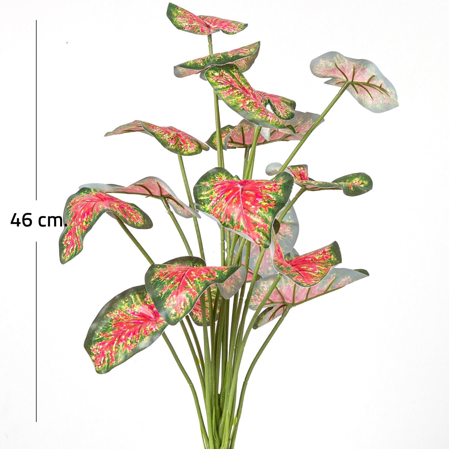 Yapay Bitki, Caladium-Kaladyum Demet, Gerçek Dokulu - 18 Yaprak, 46 cm