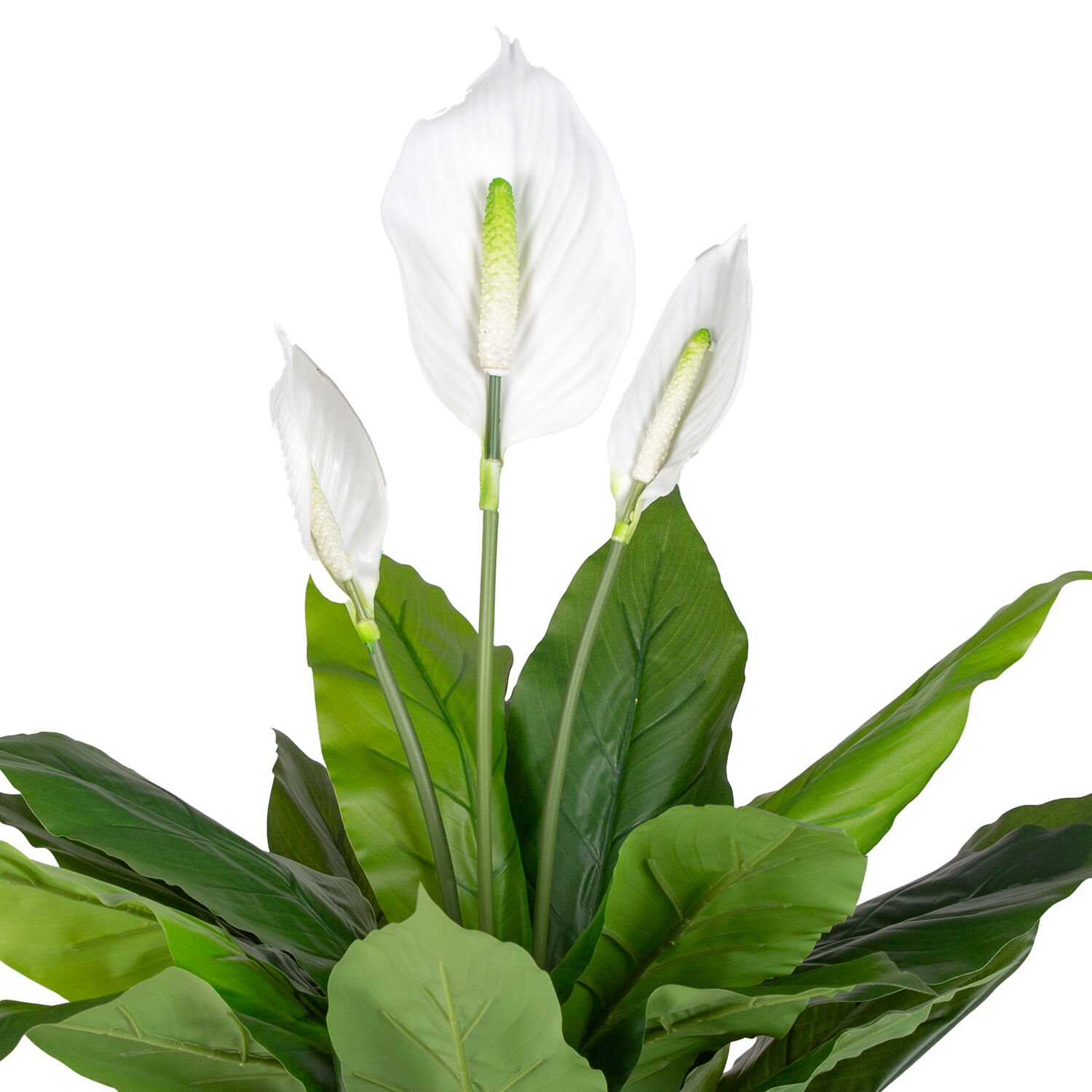 Yapay Bitki, Spathiphyllum-Yelken Çiçeği, Gerçek Dokulu, Yeşil-Beyaz - 100 cm