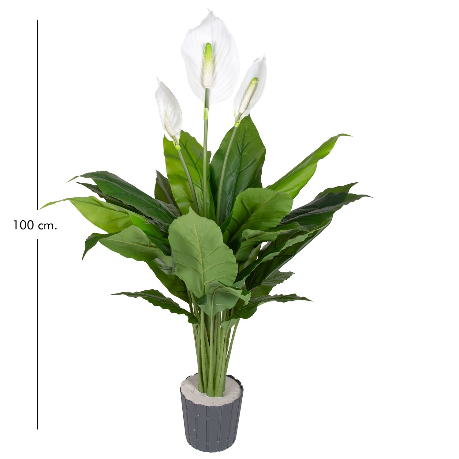 Yapay Bitki Spathiphyllum-Yelken Çiçeği Gerçek Dokulu Yeşil-Beyaz 100 Cm.