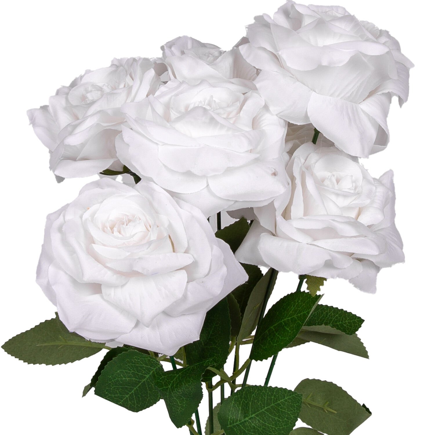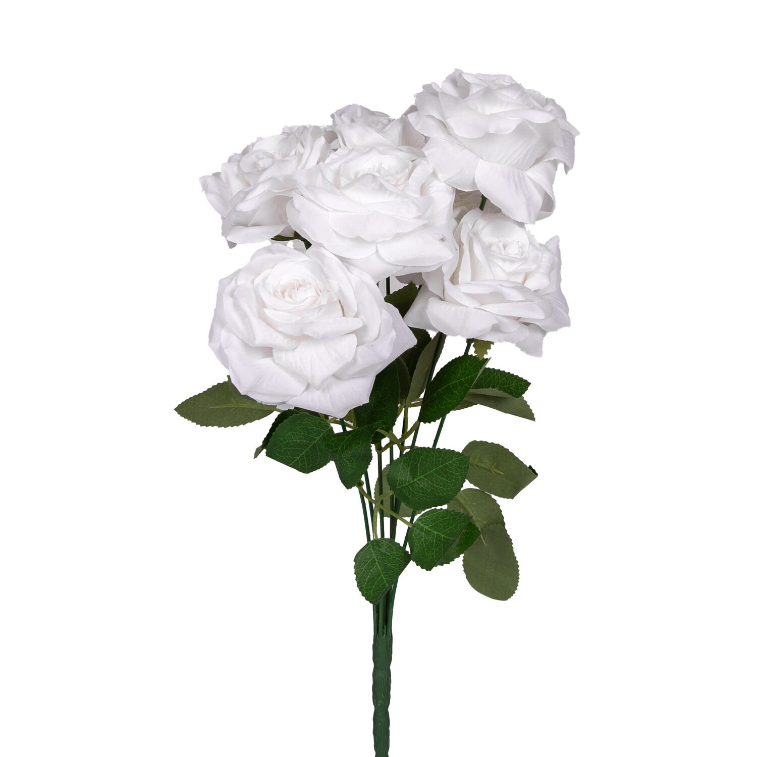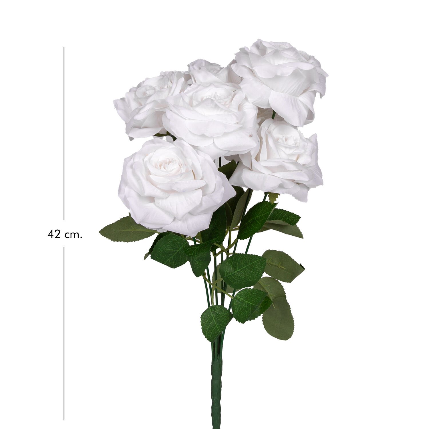 Yapay Çiçek, Gül Buketi, Beyaz - 7 Çiçekli, 42 cm