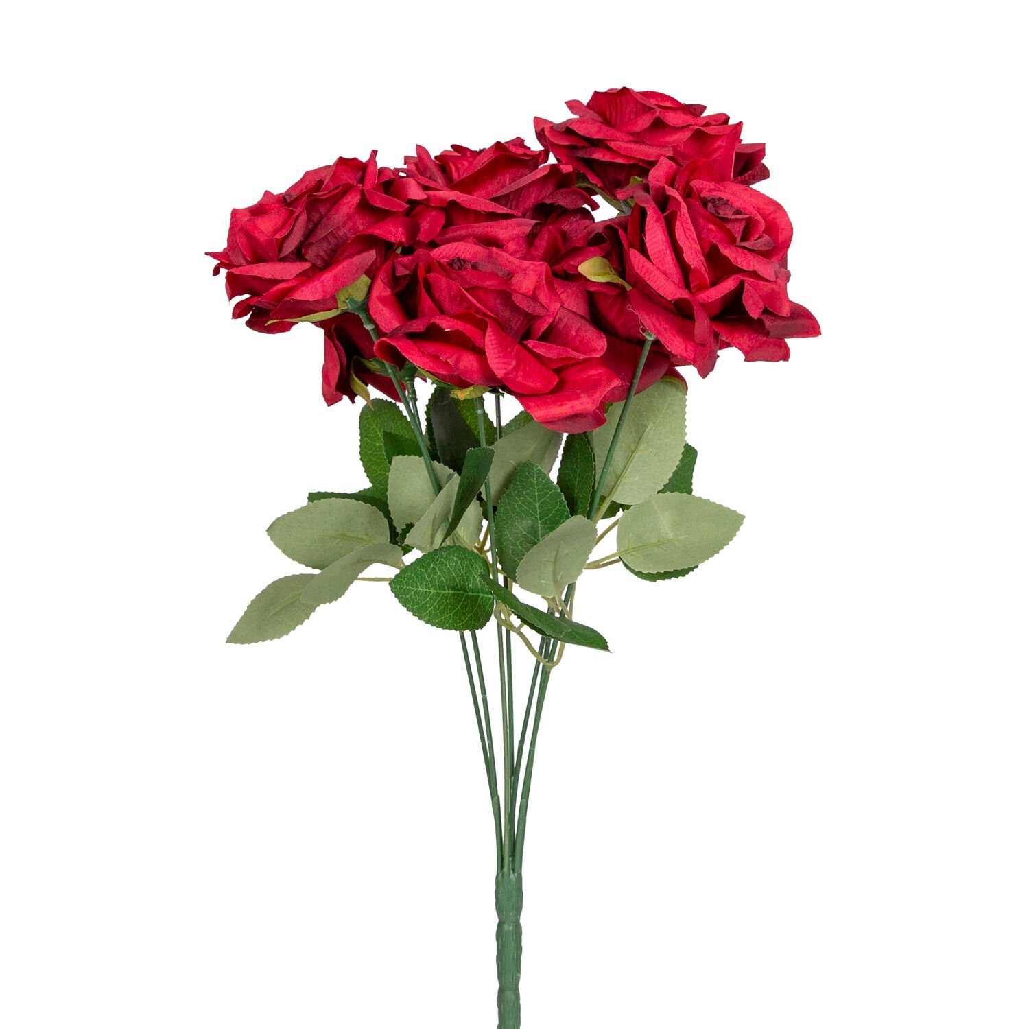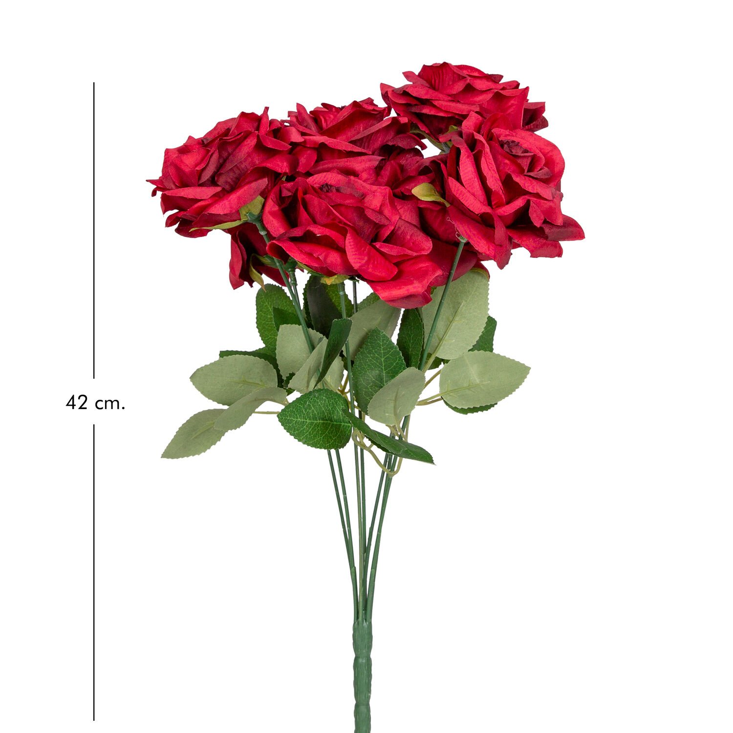Yapay Çiçek, Gül Buketi, Bordo - 7 Çiçekli, 42 cm