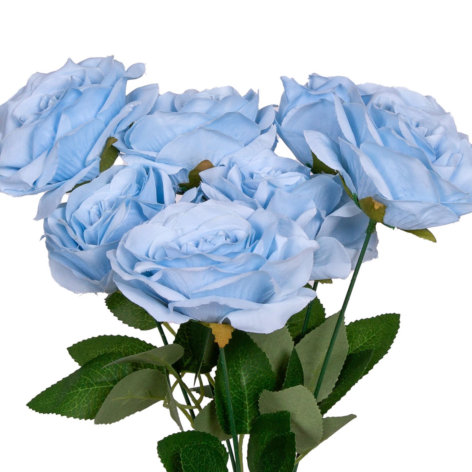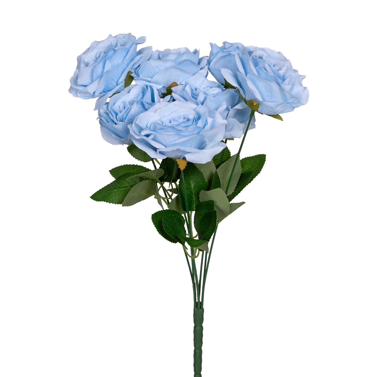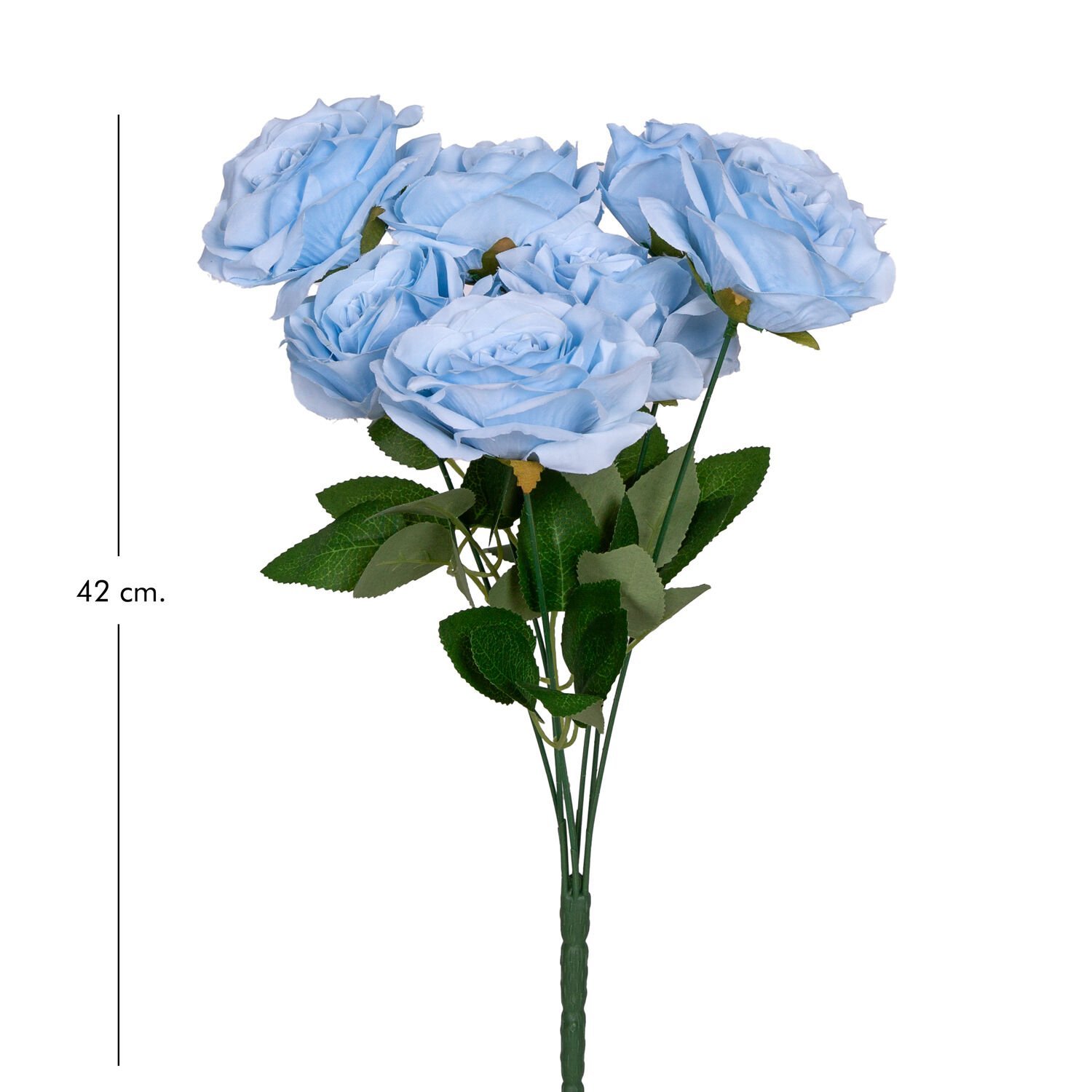 Yapay Çiçek, Gül Buketi, Mavi - 7 Çiçekli, 42 cm