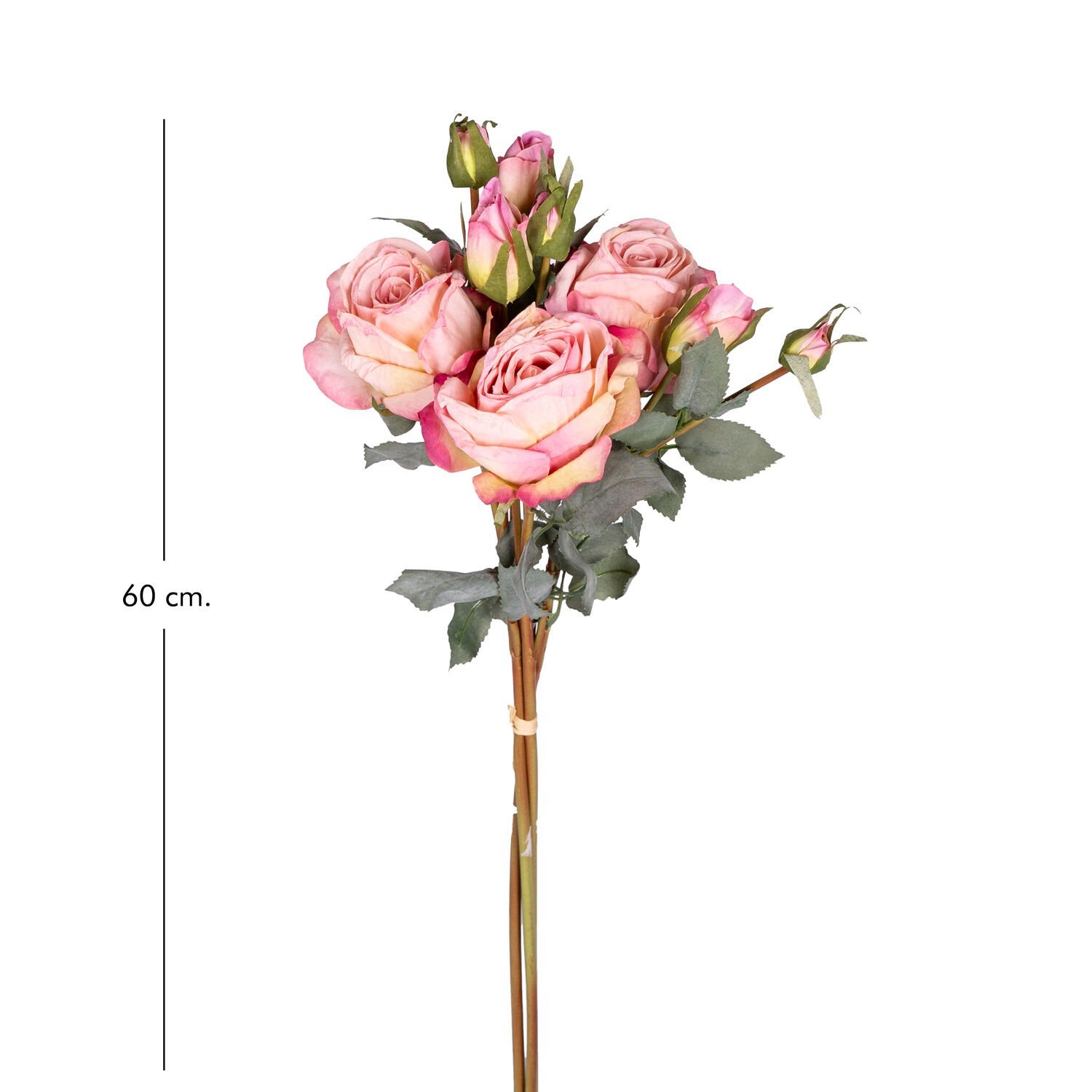 Yapay Çiçek, Gül Demeti, 3 Dallı, Açık Pembe - 60 cm