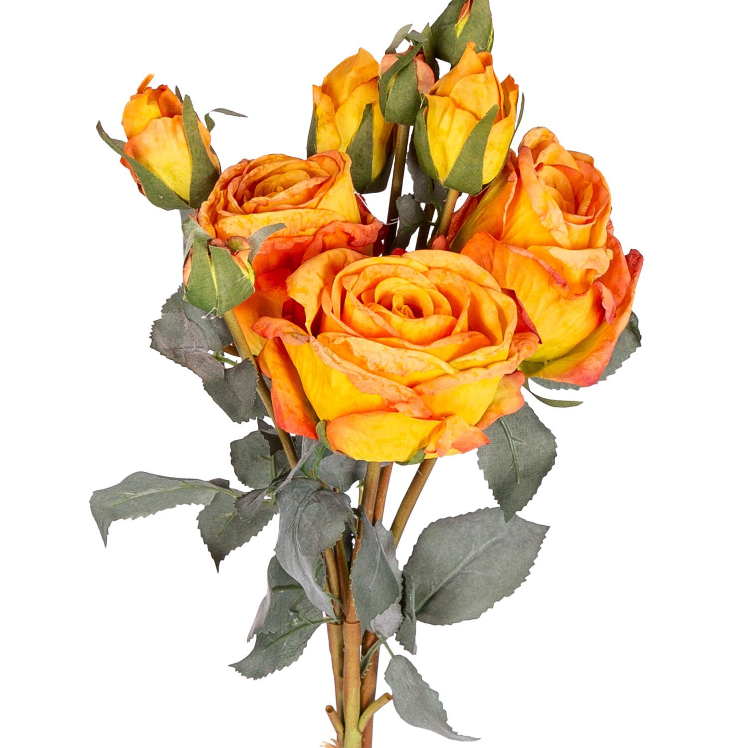 Yapay Çiçek, Gül Demeti, 3 Dallı, Turuncu - 60 cm