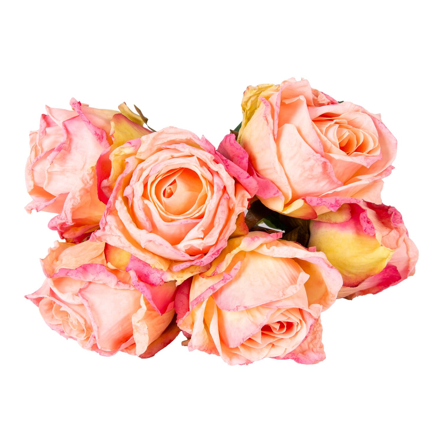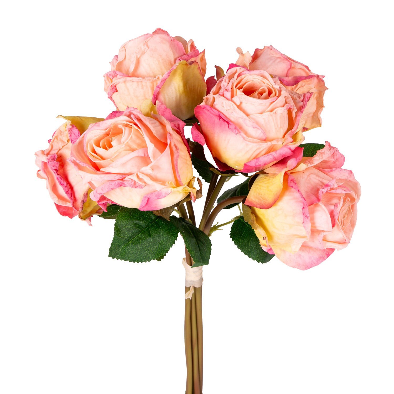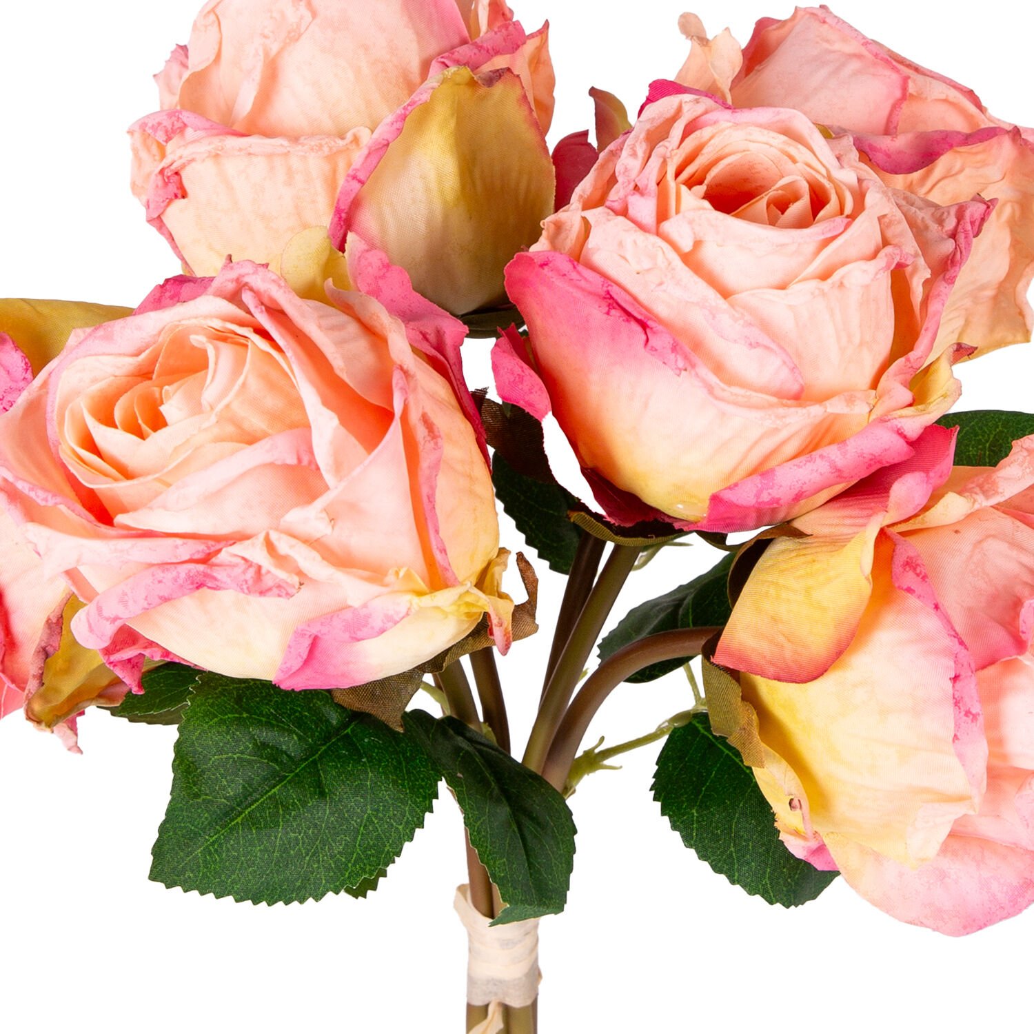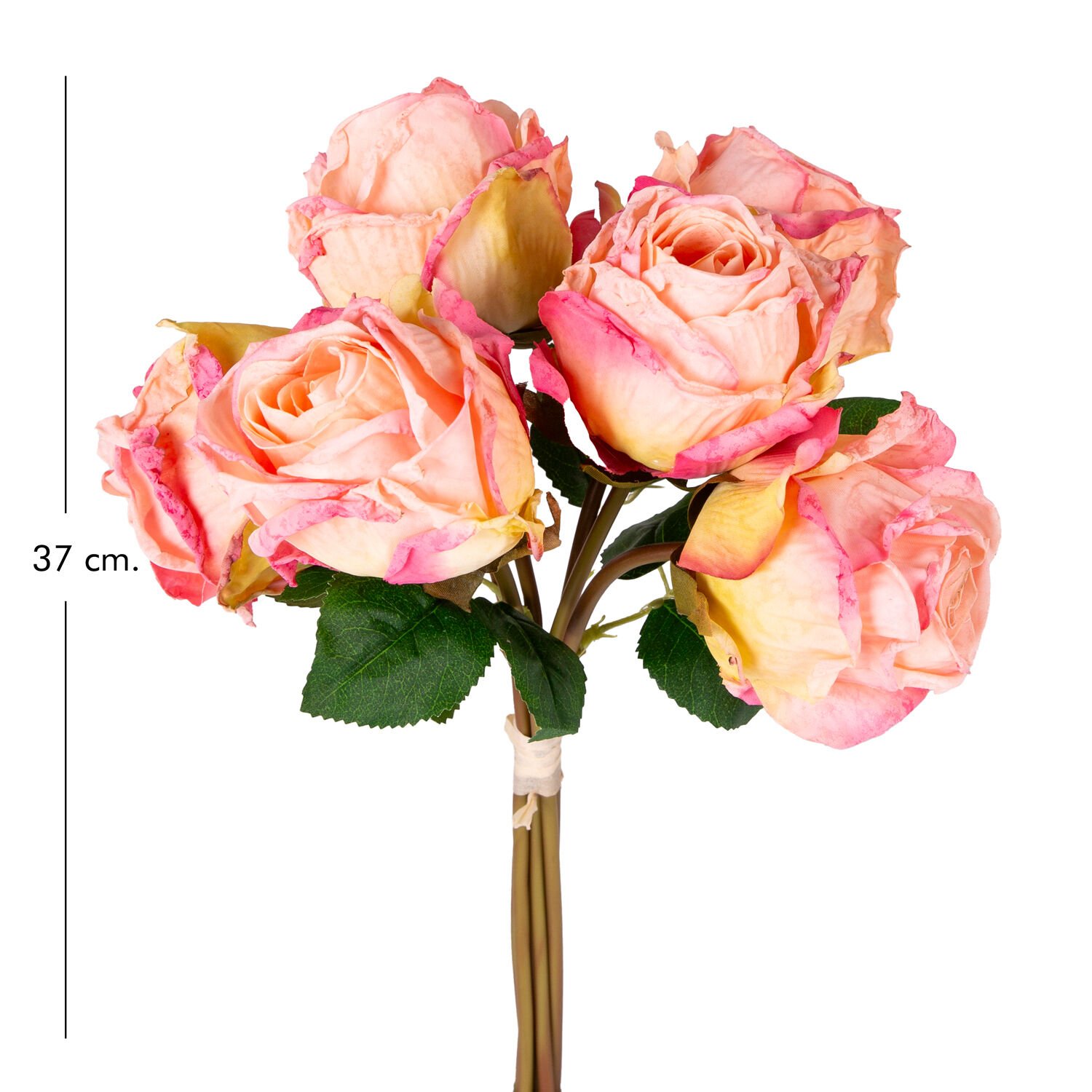 Yapay Çiçek, Gül Demeti, Fuşya-Sarı - 6'lı Demet, 37 cm