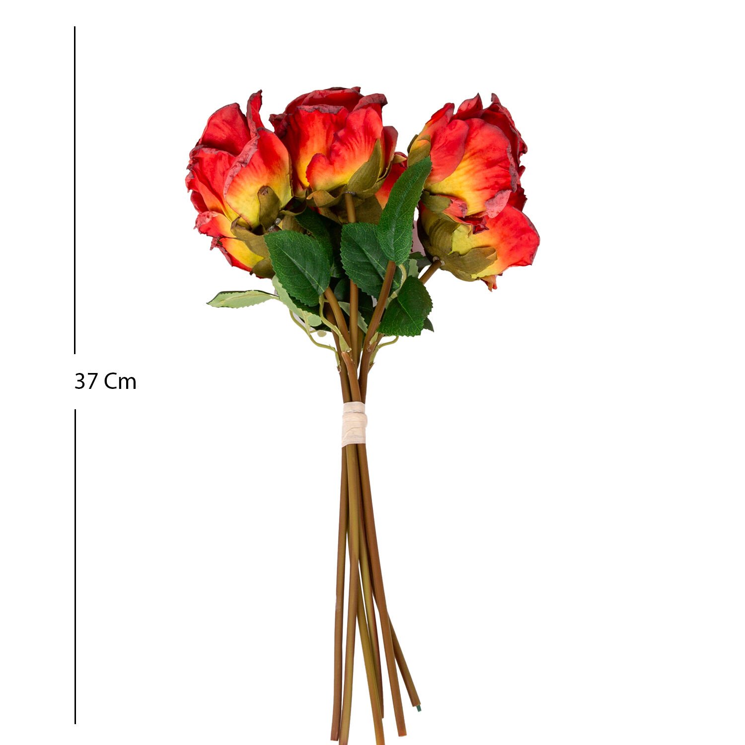 Yapay Çiçek, Gül Demeti, Kırmızı - 6'lı Demet, 37 cm