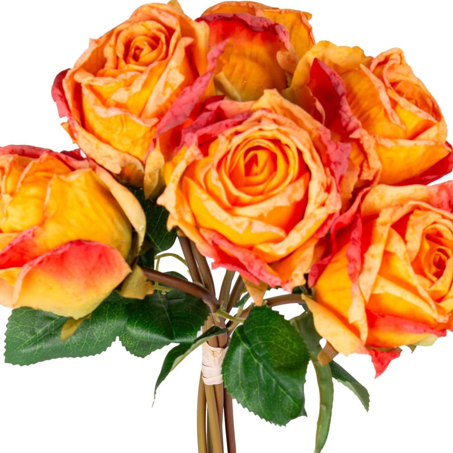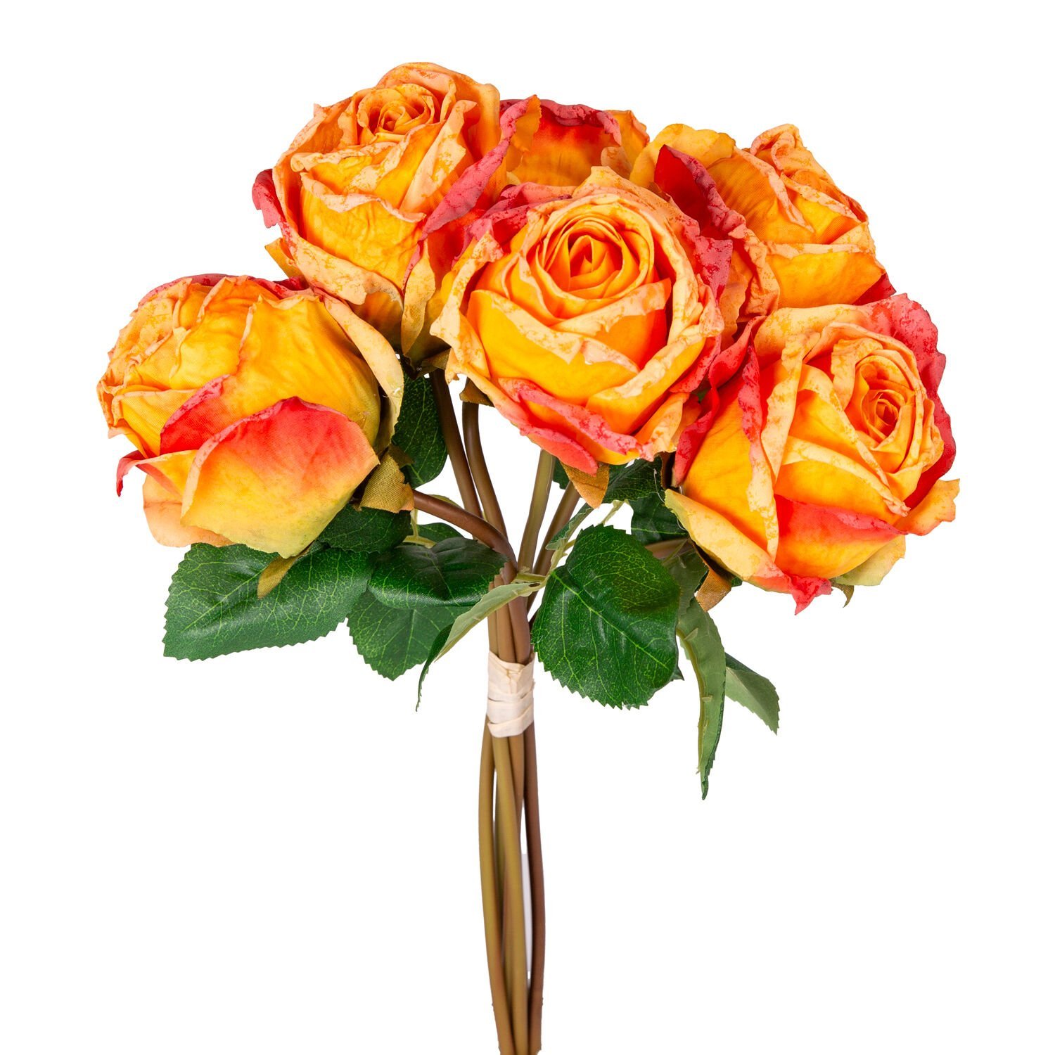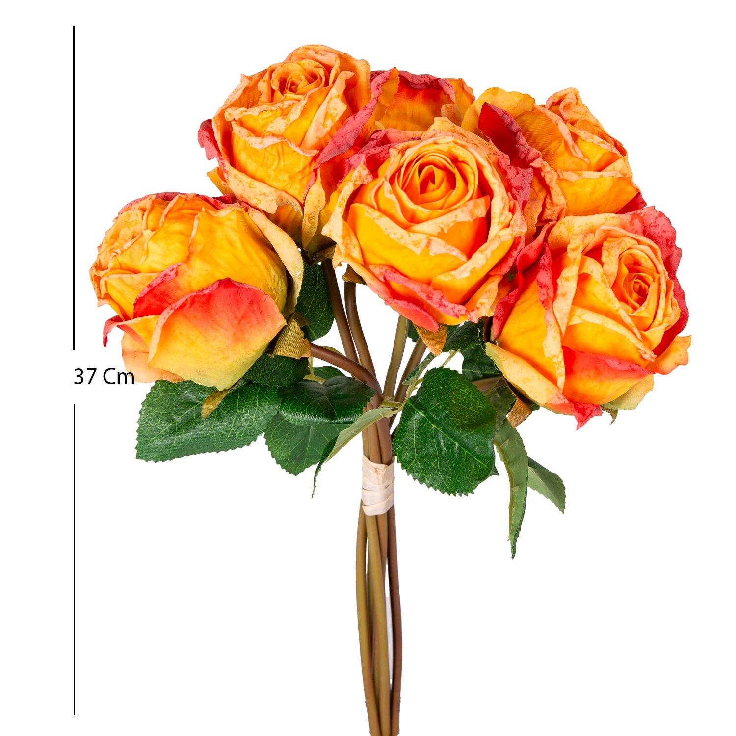 Yapay Çiçek, Gül Demeti, Sarı-Kırmızı - 6'lı Demet, 37 cm