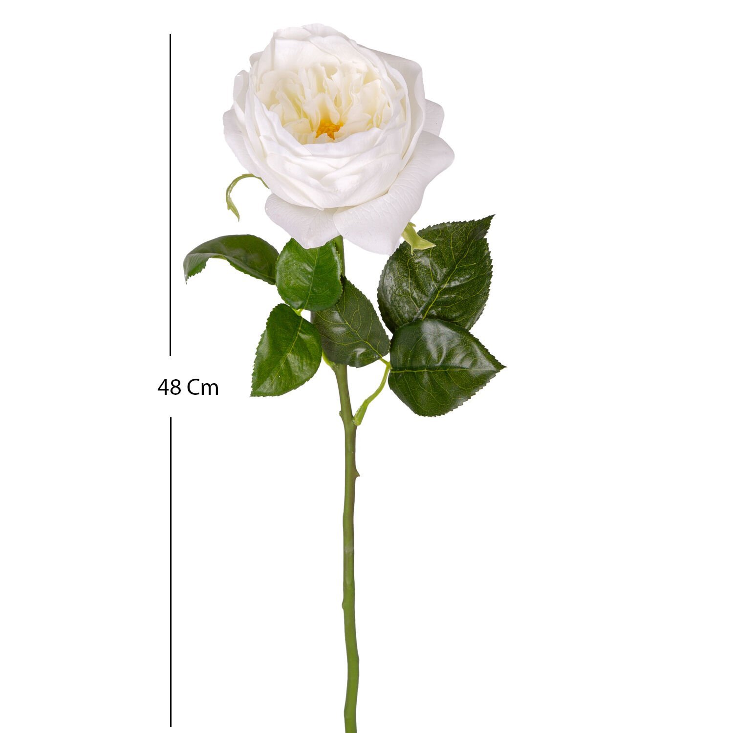 Yapay Çiçek, Gül, Islak Dokulu, Beyaz - 48 cm