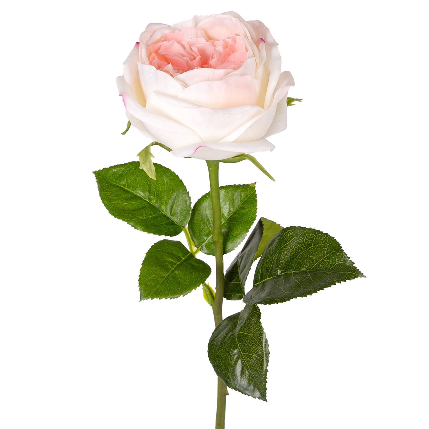 Yapay Çiçek, Gül, Islak Dokulu, Beyaz-Pembe - 48 cm