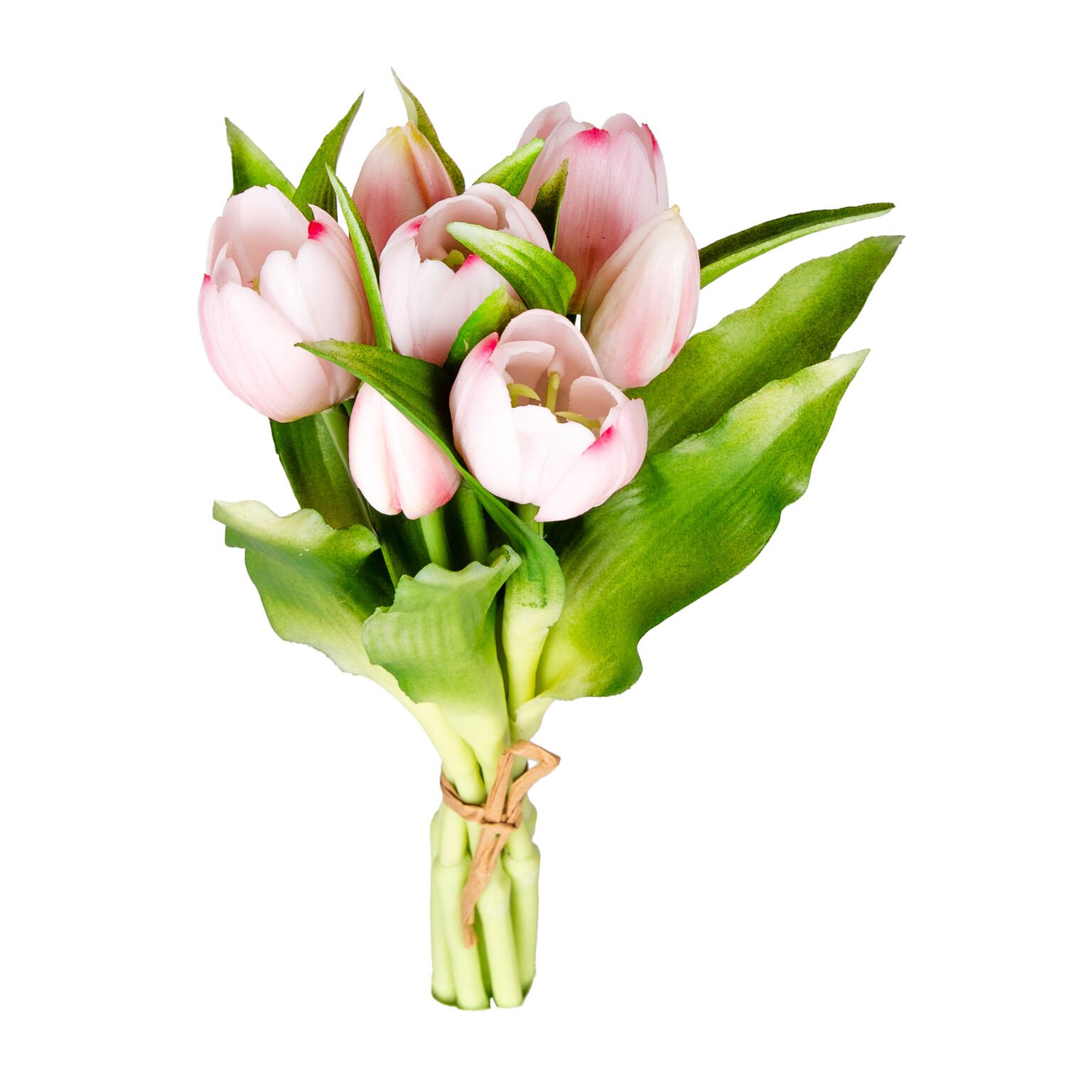 Yapay Çiçek, Lale Demet, Islak Dokulu, Pembe - 26 cm