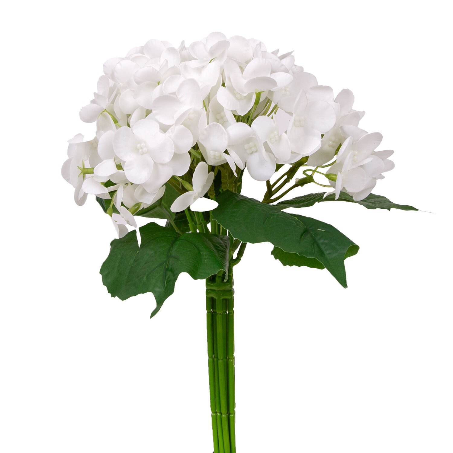 Yapay Çiçek, Ortanca Buket, Islak Dokulu, Beyaz - 26 cm