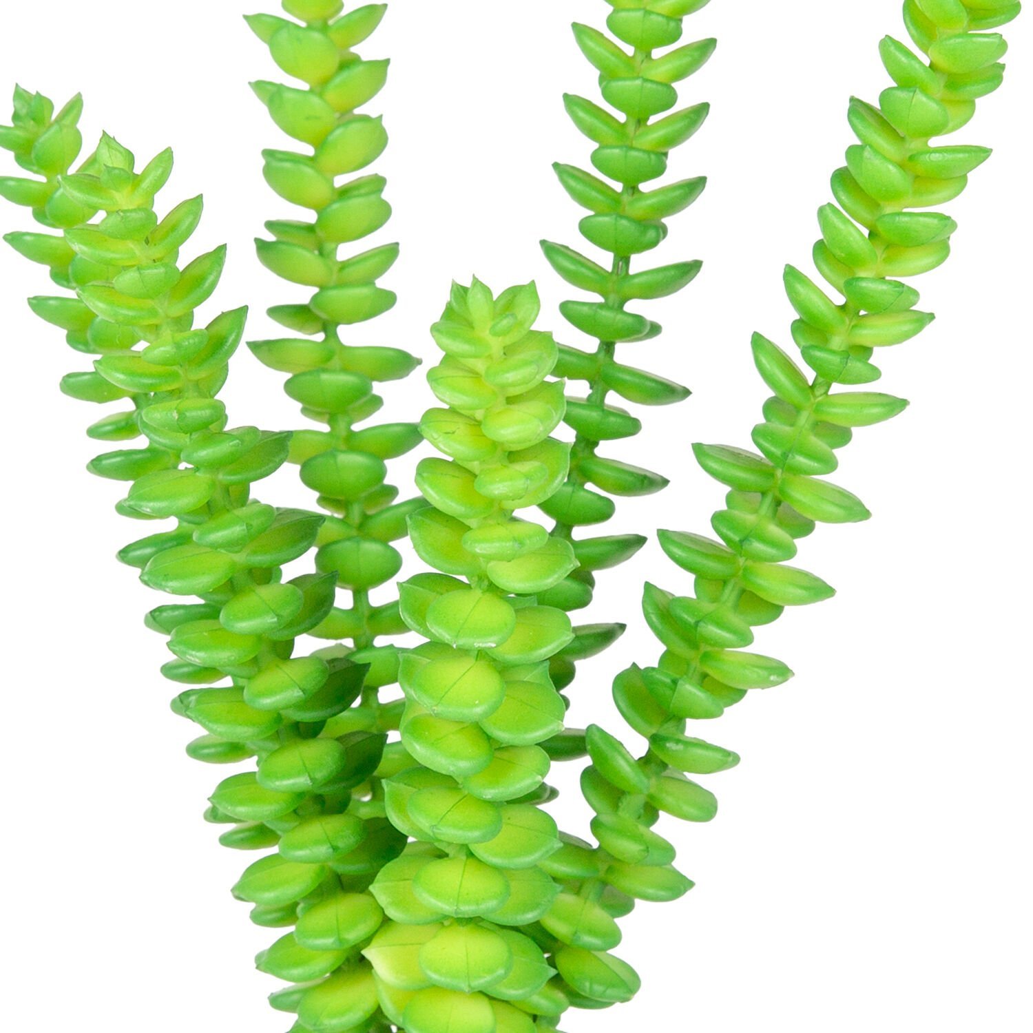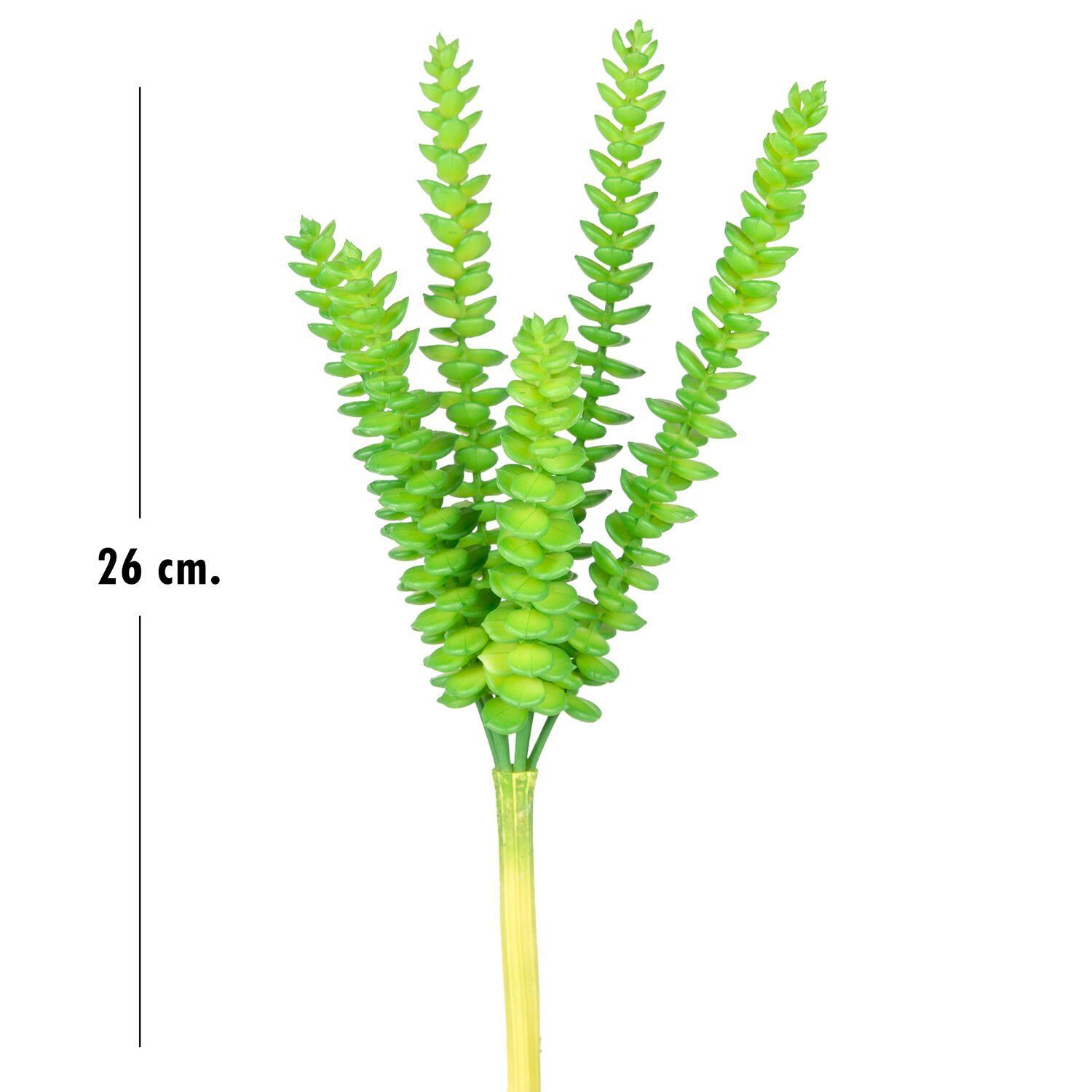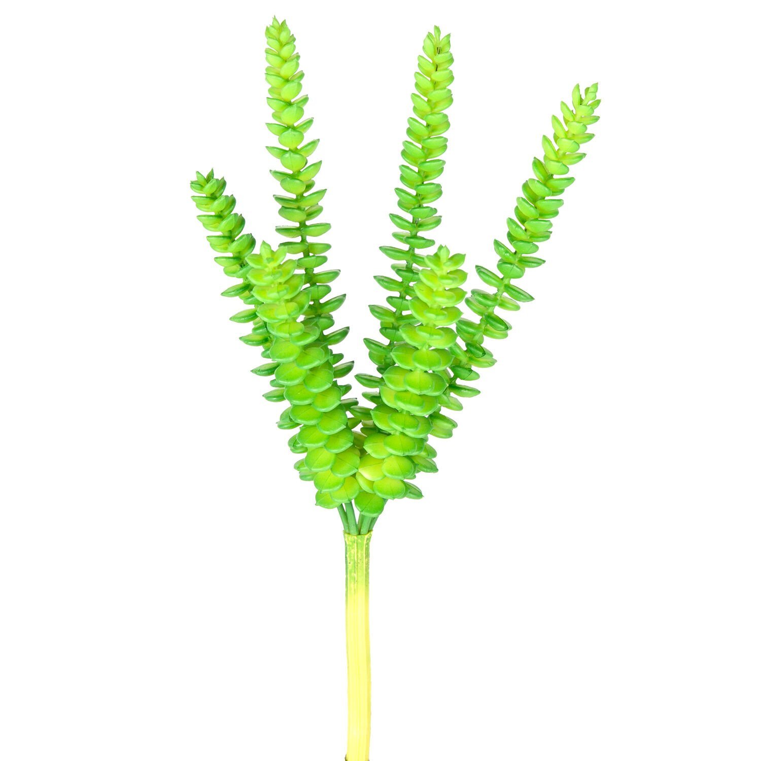 Mağaza , cafe , ev ve balkonlarınızda kullanabileceğiniz bakım gerektirmeyen , diğer yapay bitki ve çiçek ürünlerimizle aranjman oluşturabileceğiniz , her zaman yeşil kalmasıyla dikkat çeken dekorasyonlarda her türlü mekan süslemeleri için kullanılabilecek doğal görünümlü dekoratif gövdesinden 6 sürgün dal çıkan yapay Sukulent bitki. Doğanın güzelliğini yanıbaşında isteyenler için mükemmel bir seçim . Ürünümüz kaliteli yapay dayanımlı plastik malzemeden üretilmiştir. Ürünümüzü Mağazamızdan alacağınız beton ve plastik saksılara koyarak vitrin , balkon veya dilediğiniz mekanda kullanıp dekorasyonlarınıza şıklık ve estetik katabilirsiniz .